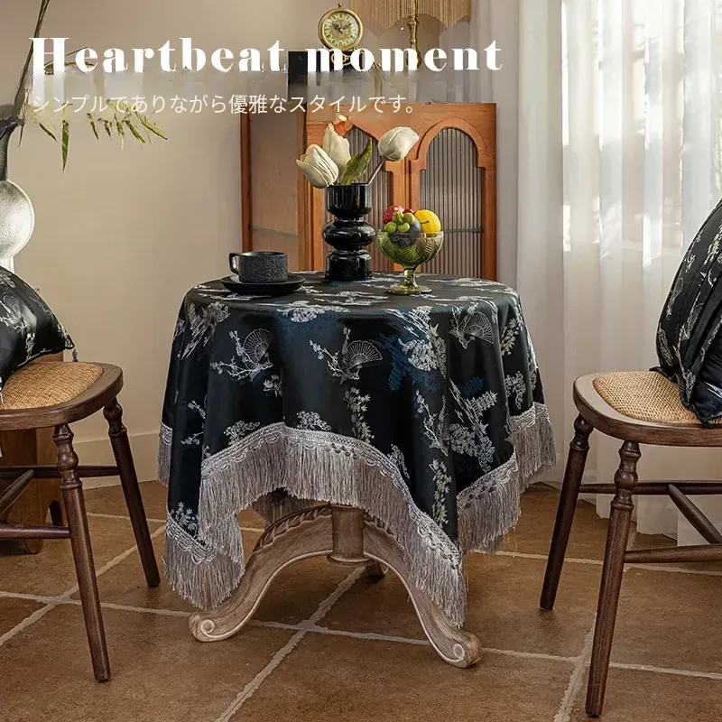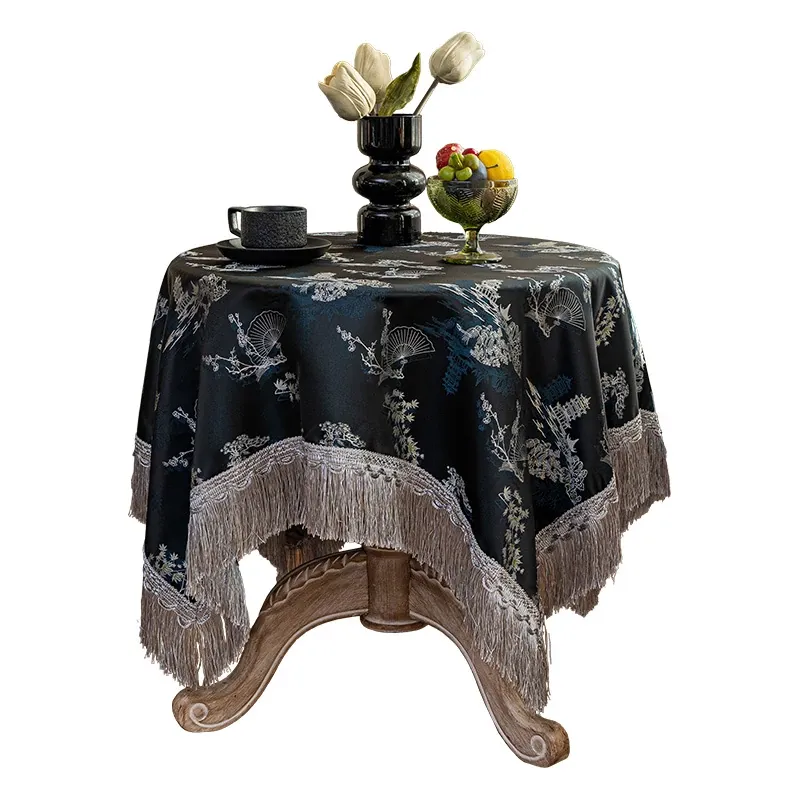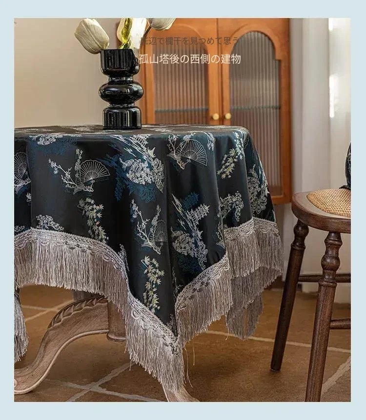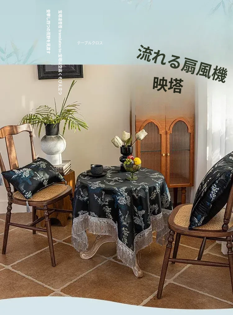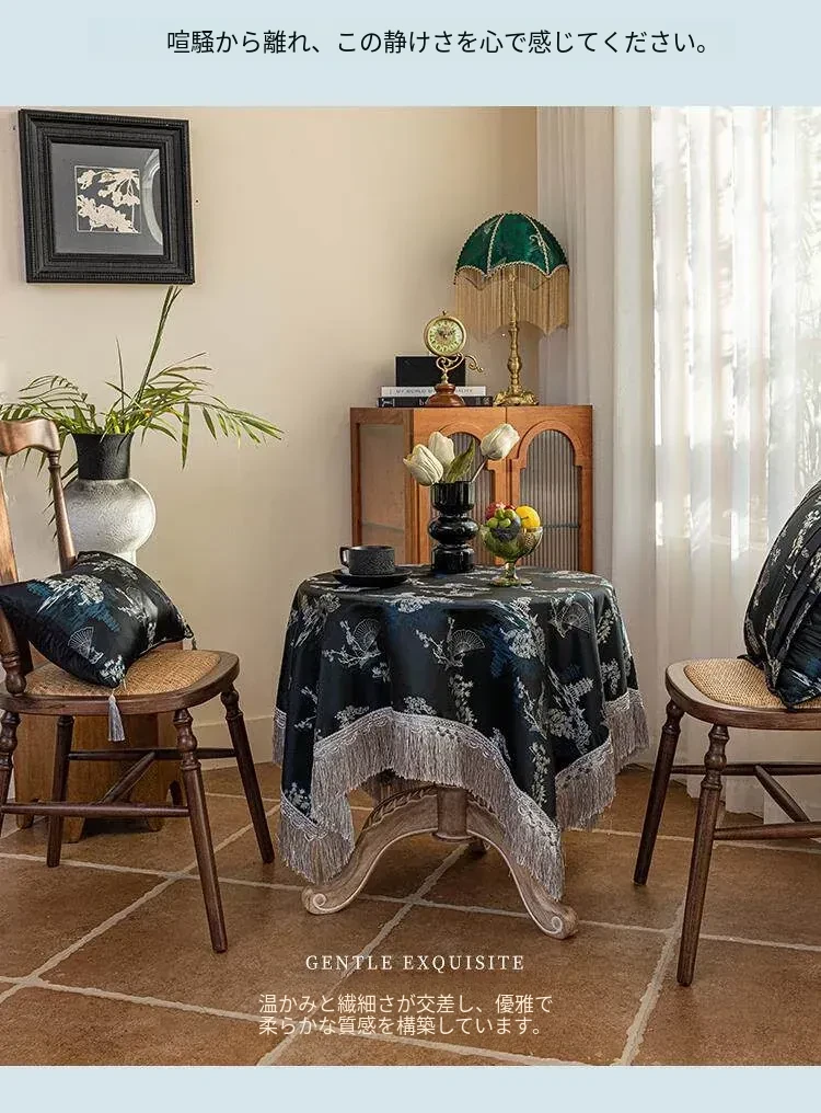 新中式デザインの黒いテーブルクロス - 高級感溢れるレース付き、アンティークな雰囲気を演出するカフェテーブル布。美しい食卓を彩り、特別なひとときを演出します!