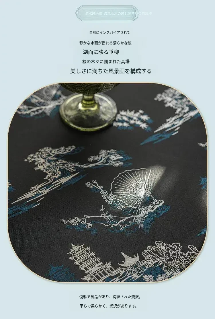 流水映塔扇流苏桌布