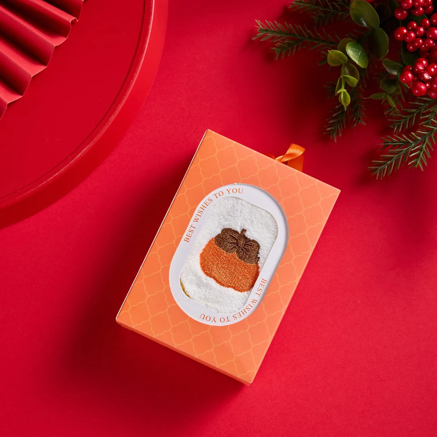 暖かい柿軽ふわコーラルフリース刺繍ハンドタオル(30*30cm)