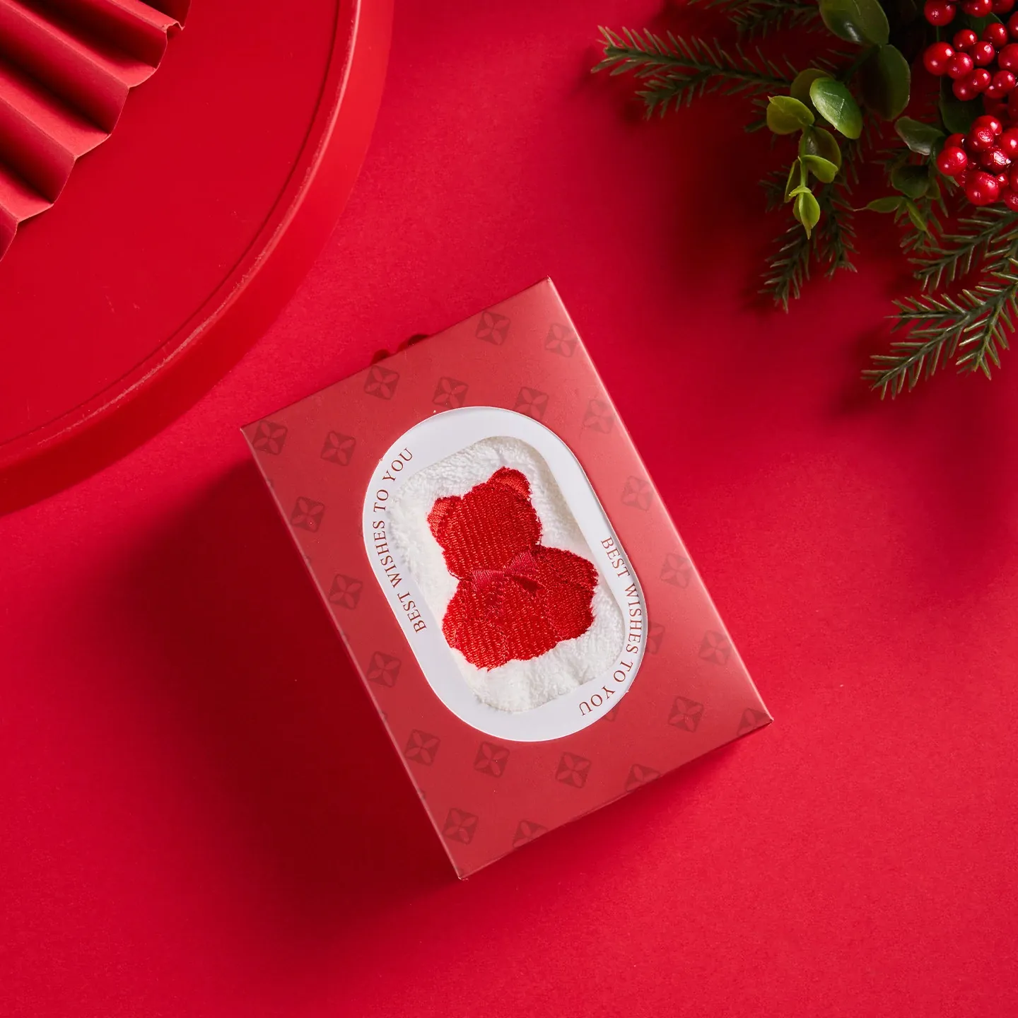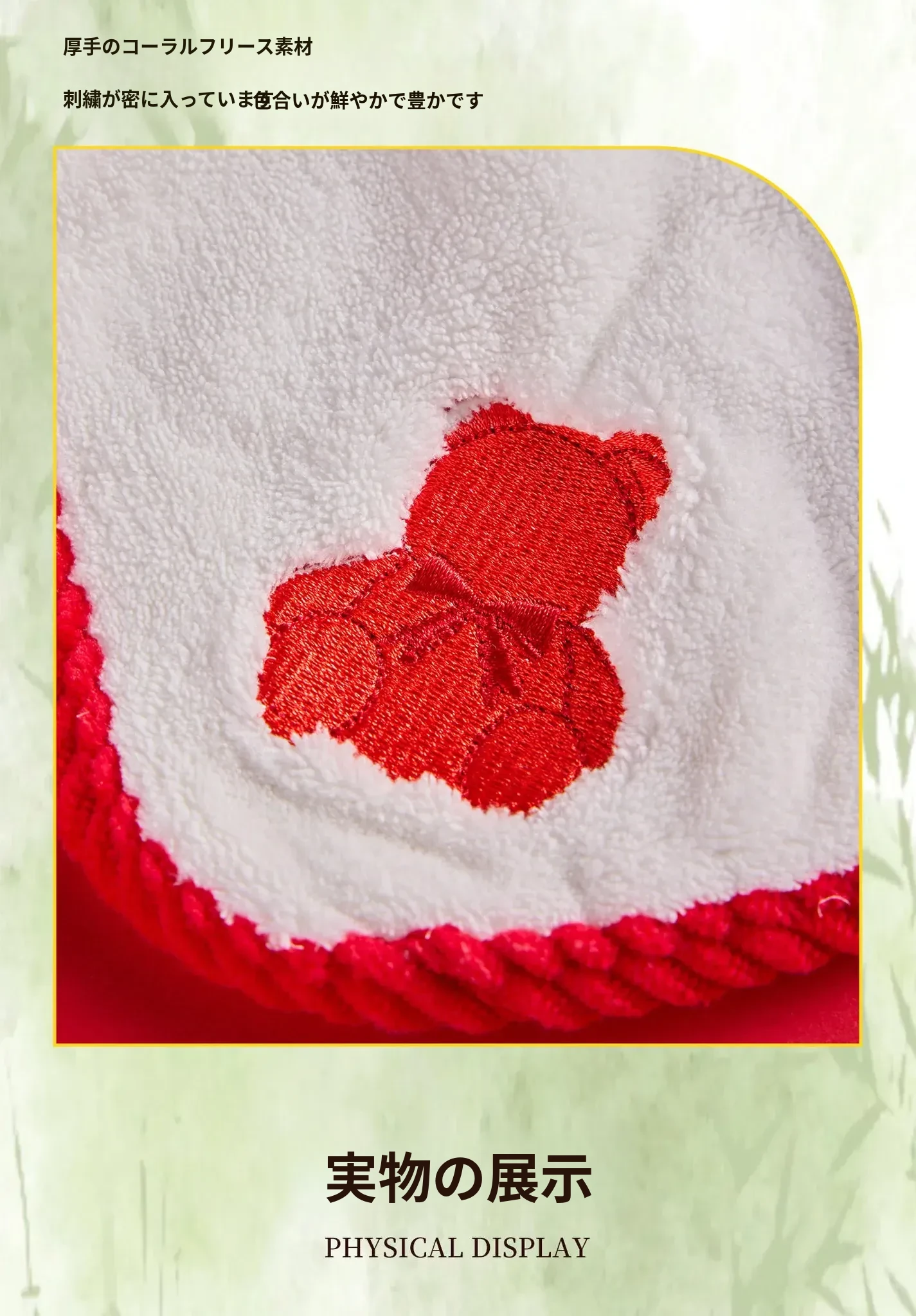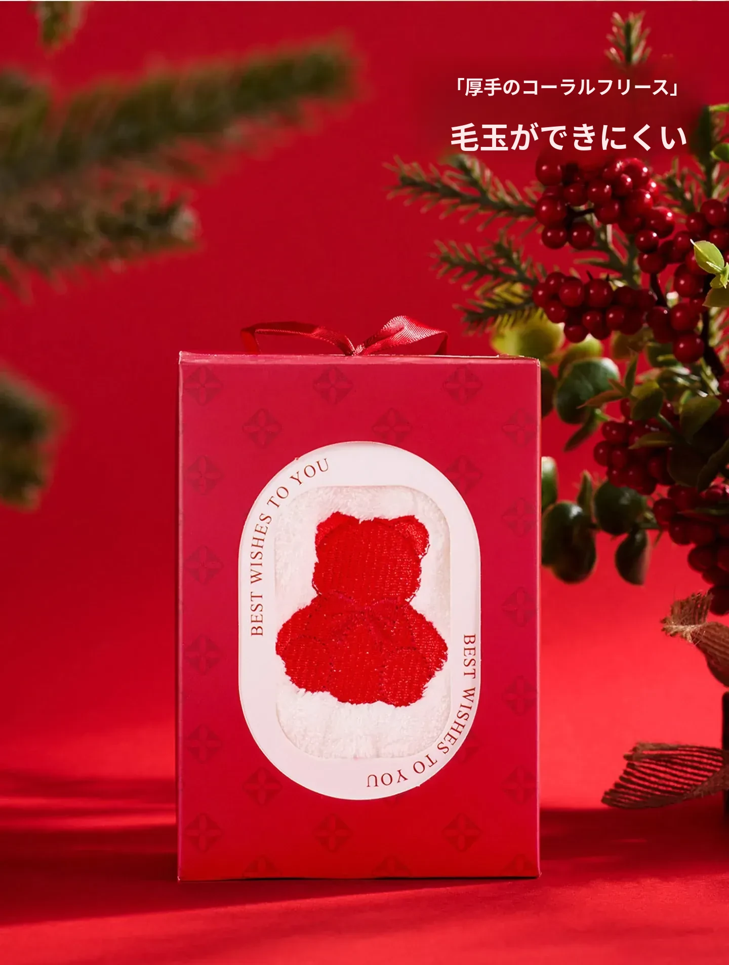赤ふわ熊コーラルフリース刺繍ハンドタオル(30*30cm)