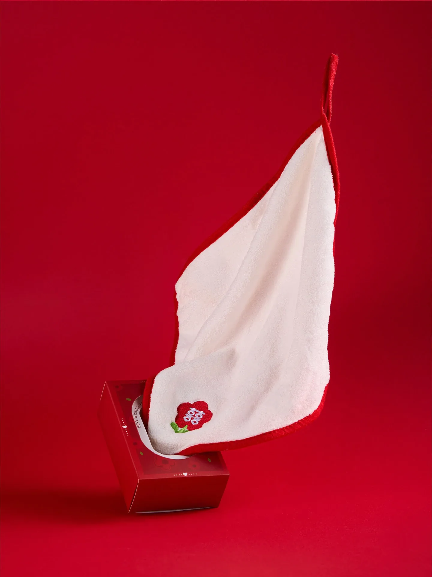 青い箱の香りコーラルフリース刺繍ハンドタオル(30*30cm)