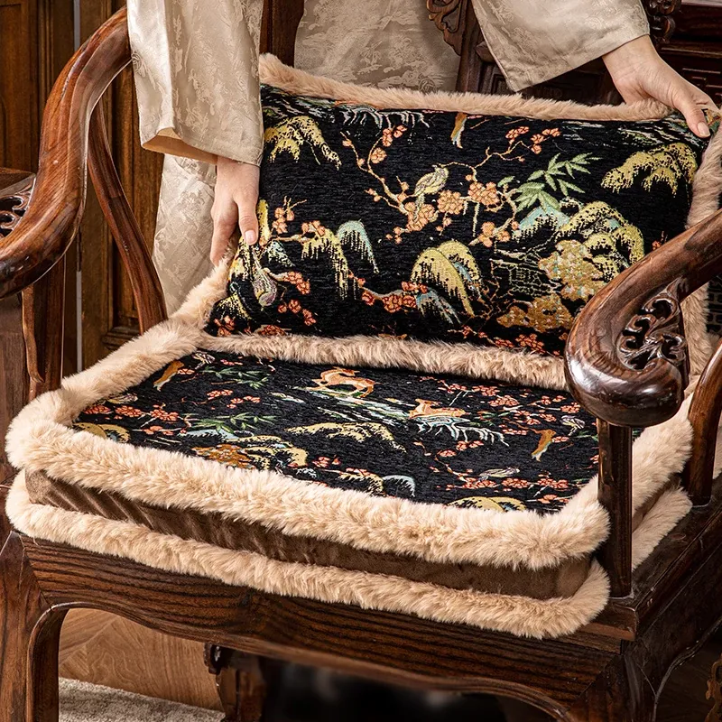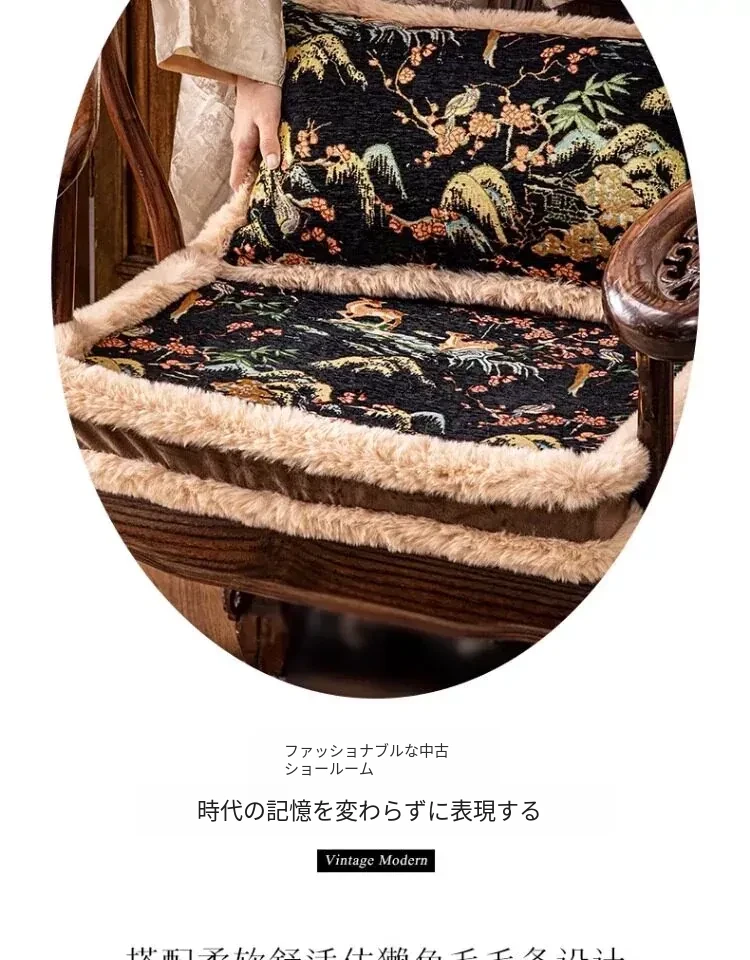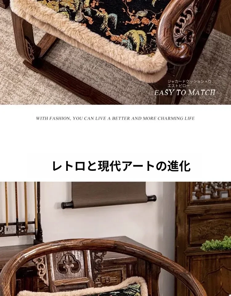 新中式高級感溢れる実木太師椅子用クッション - 中国風デザインのレトロで軽やかな防滑座布団で、快適な座り心地を実現!