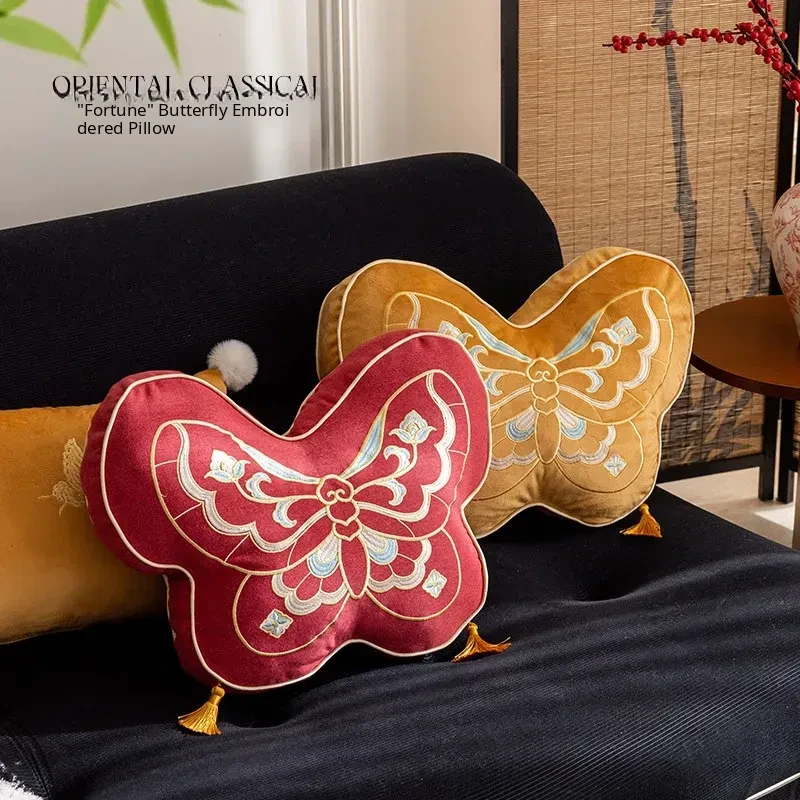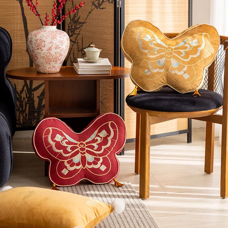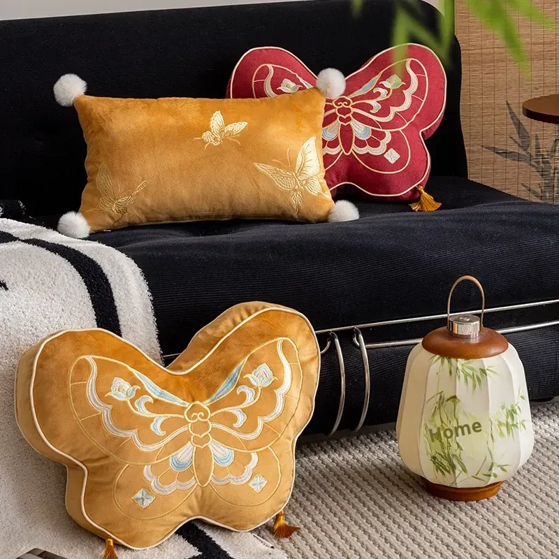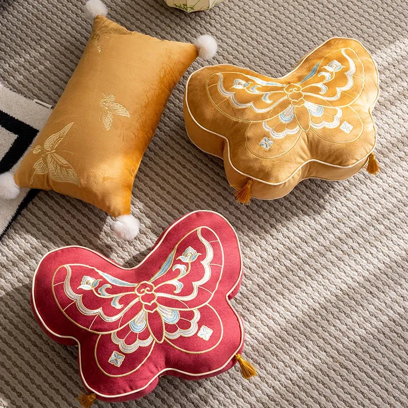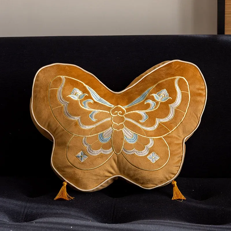 Elegant New Chinese Style Butterfly-Shaped Throw Pillow | Luxurious Sofa Cushion for Living Room, Window Seat, and Bedside | Perfect for Showrooms and Chic Decor
