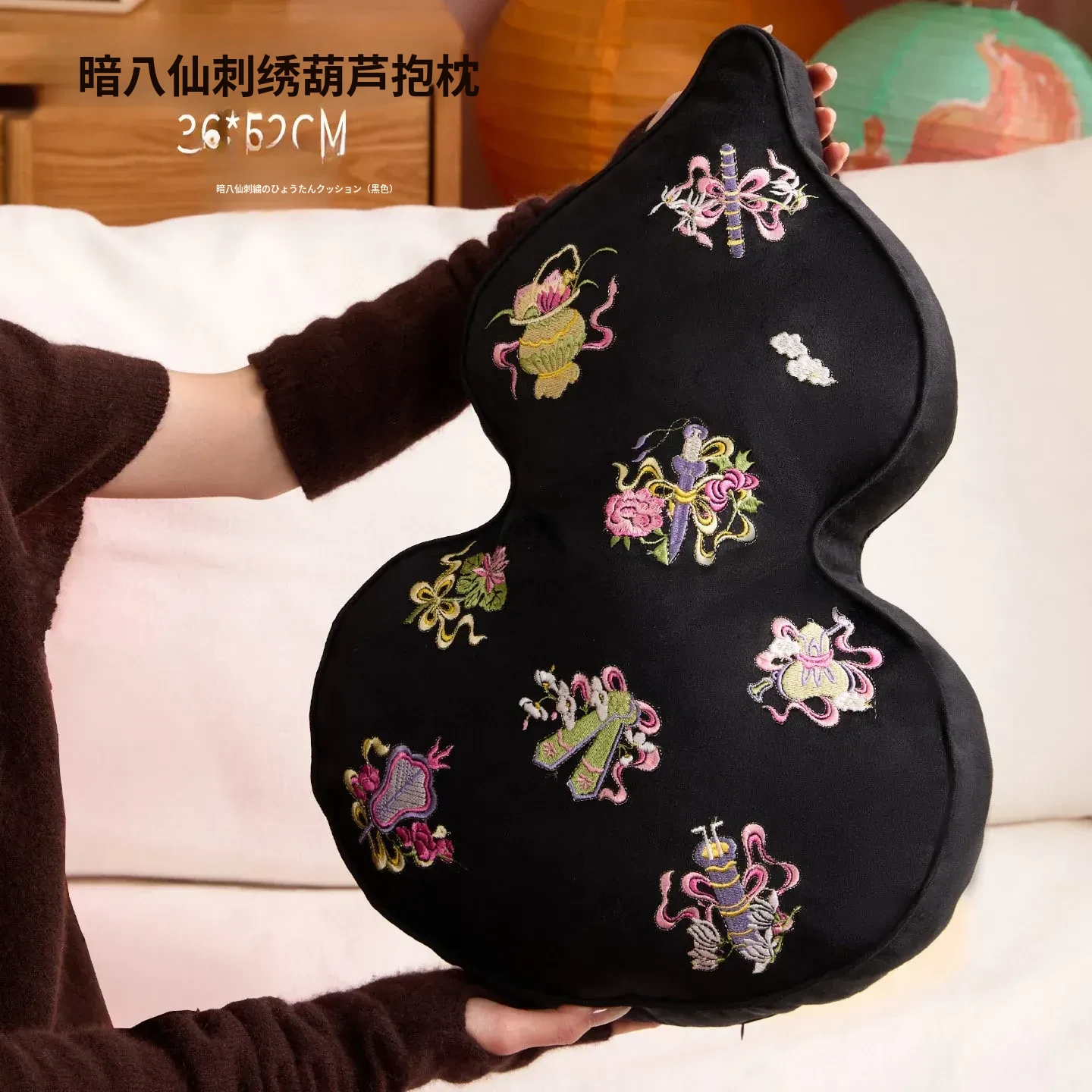 暗八仙刺繍のひょうたんクッション - ブラック 35*50cm