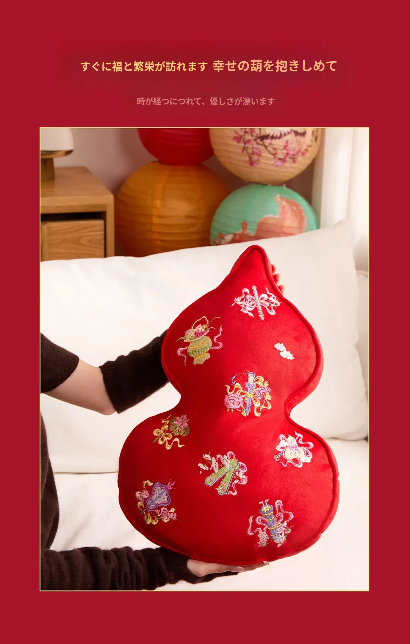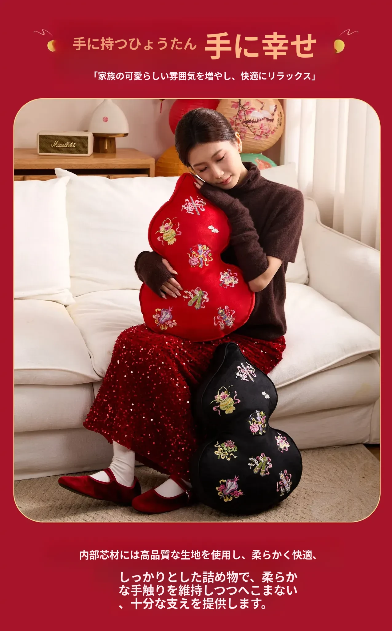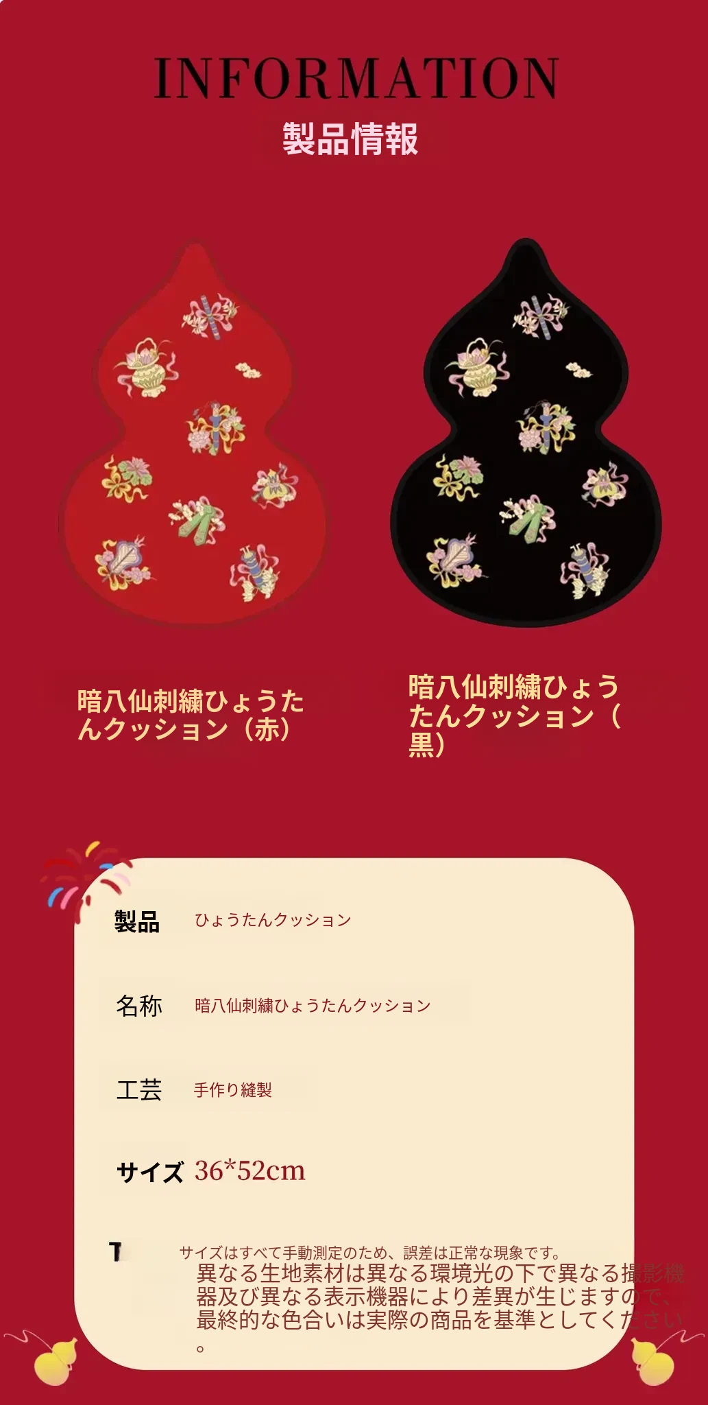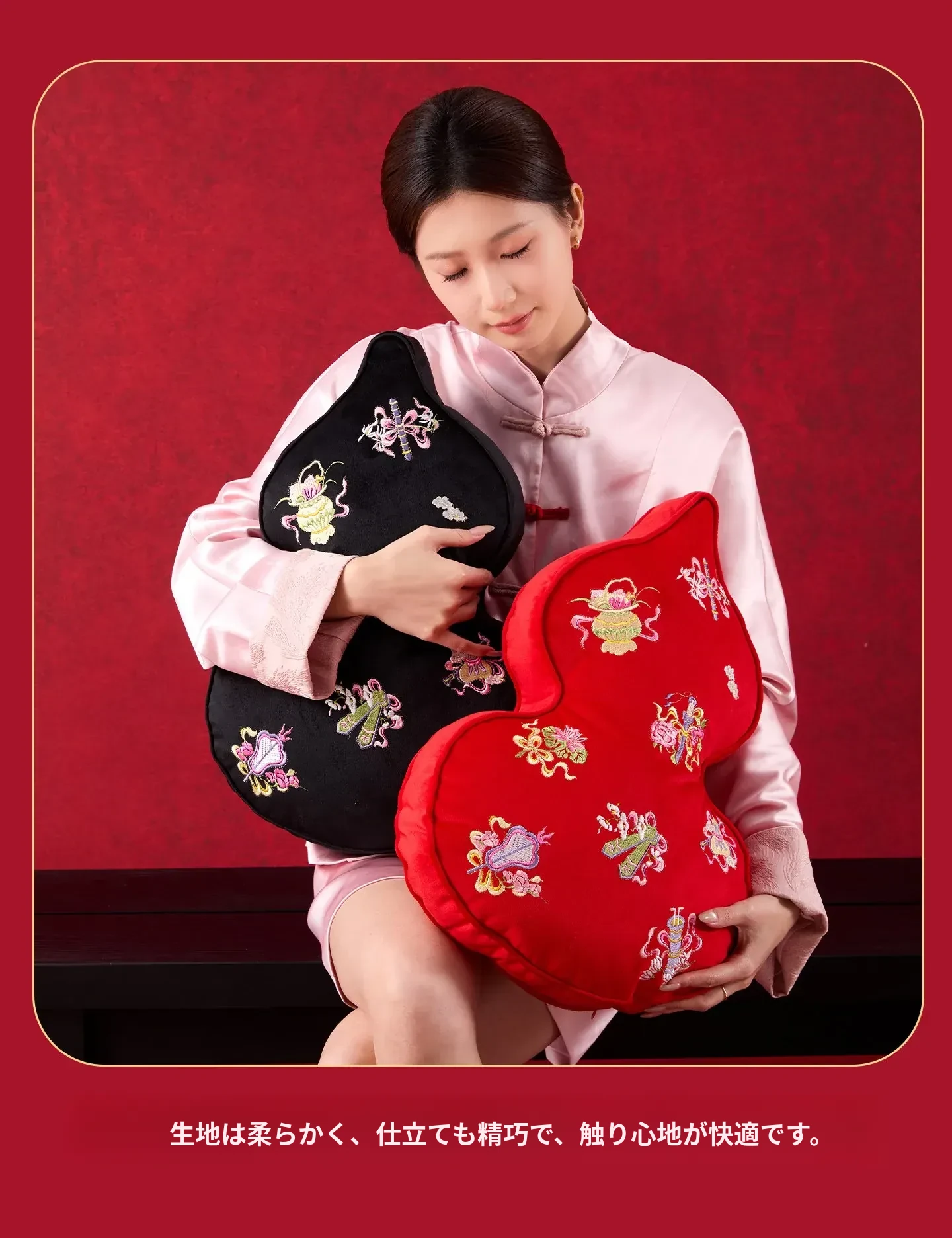 暗八仙刺繍のひょうたんクッション - レッド 35*50cm