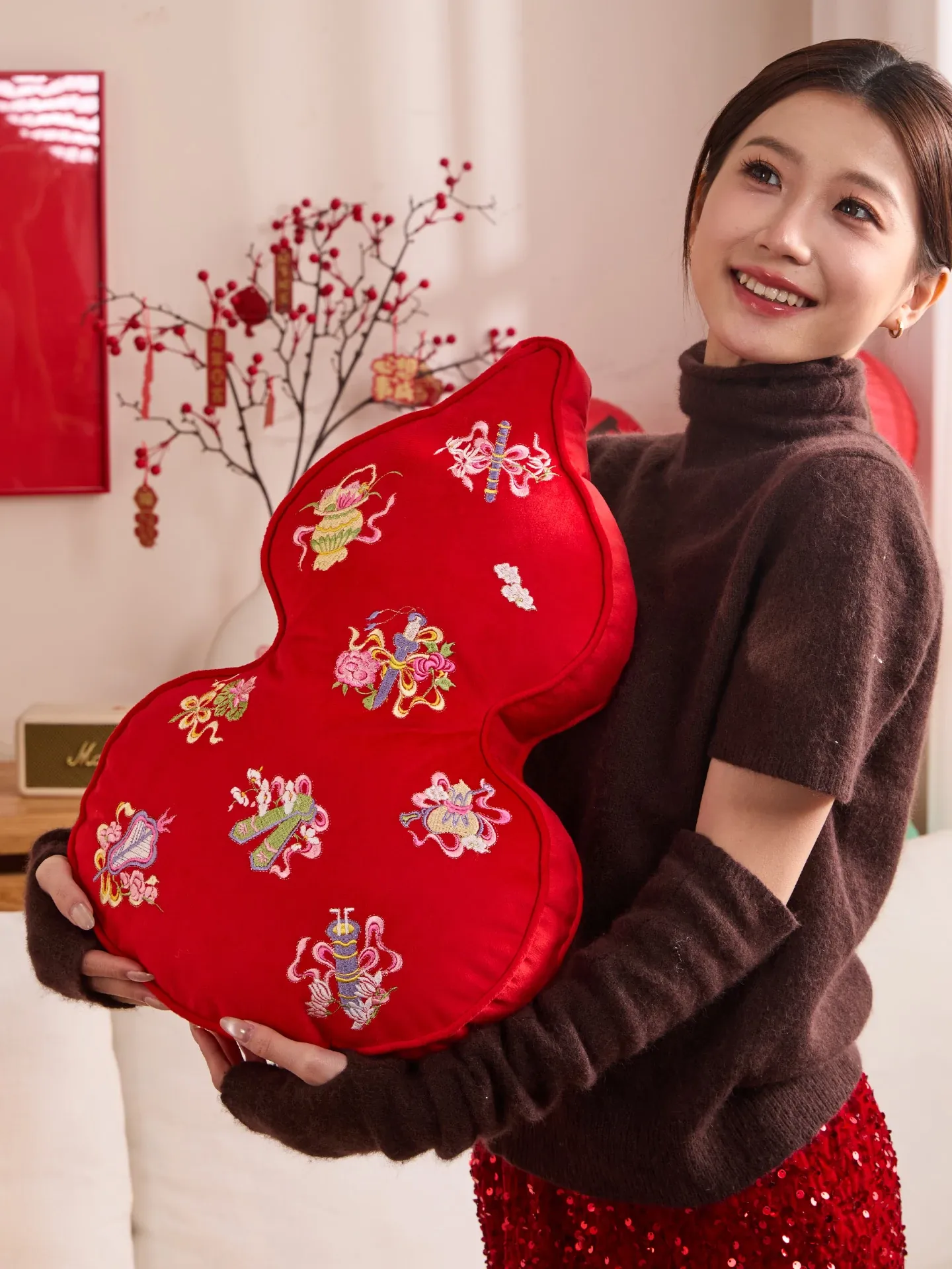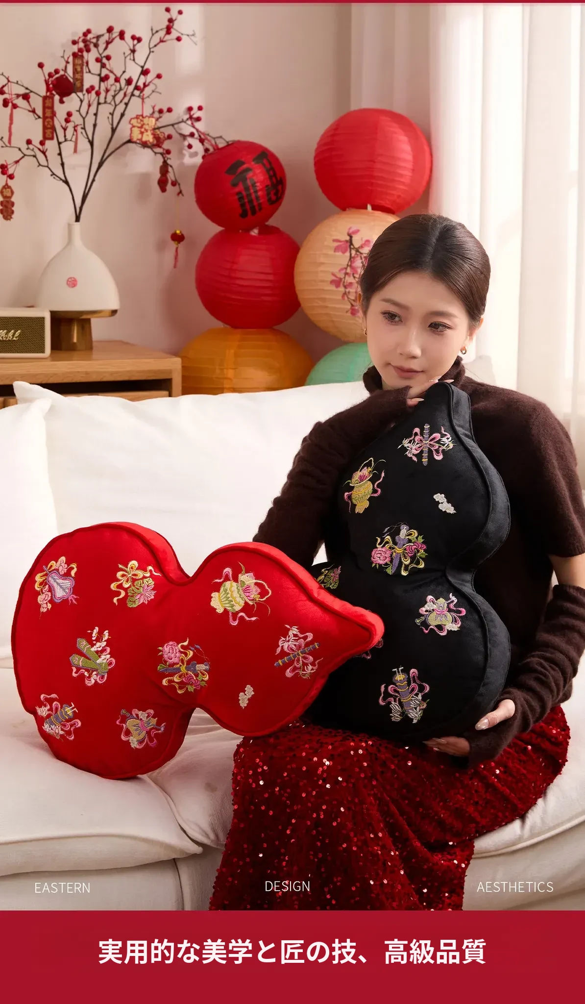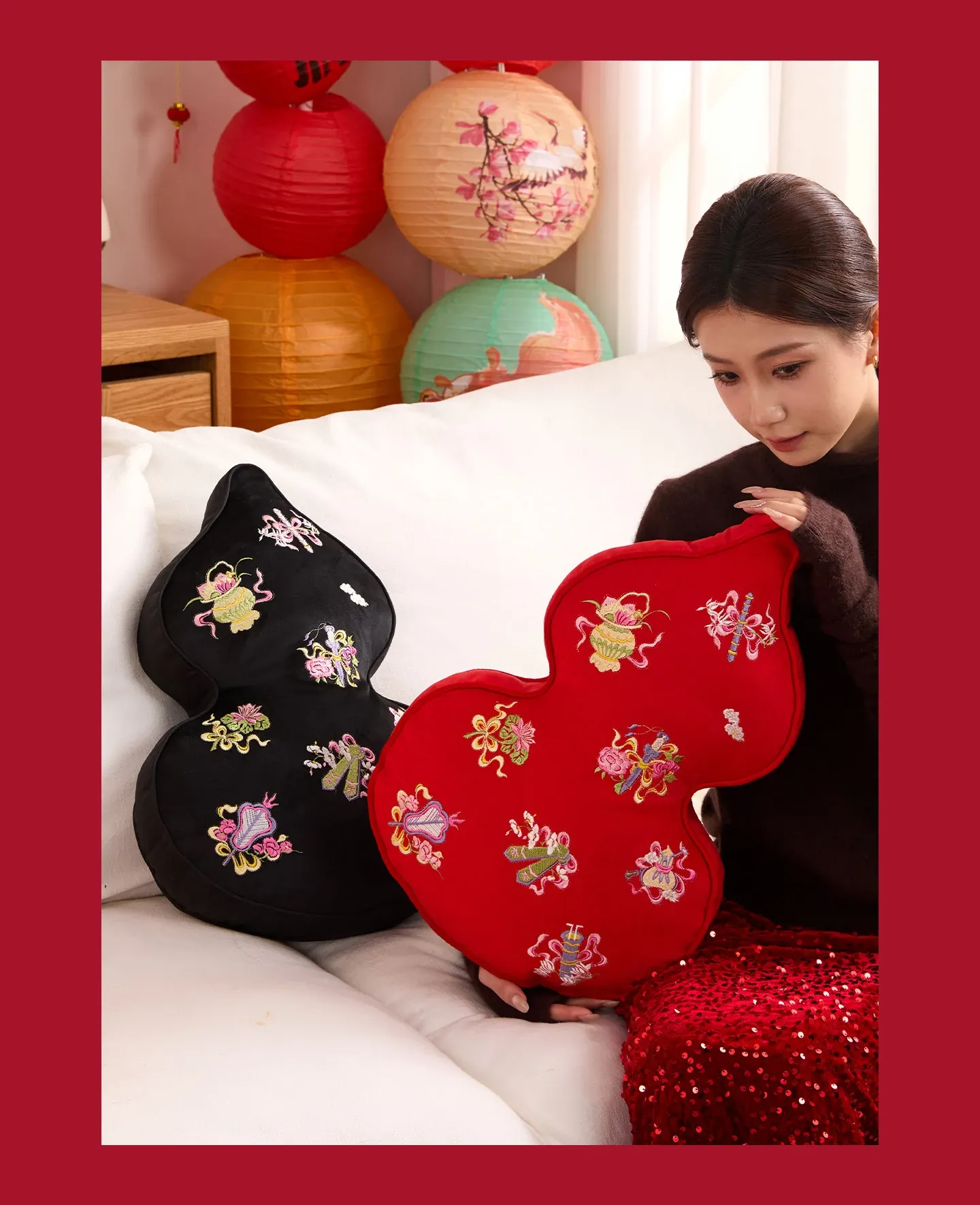 暗八仙刺繍のひょうたんクッション - レッド 35*50cm