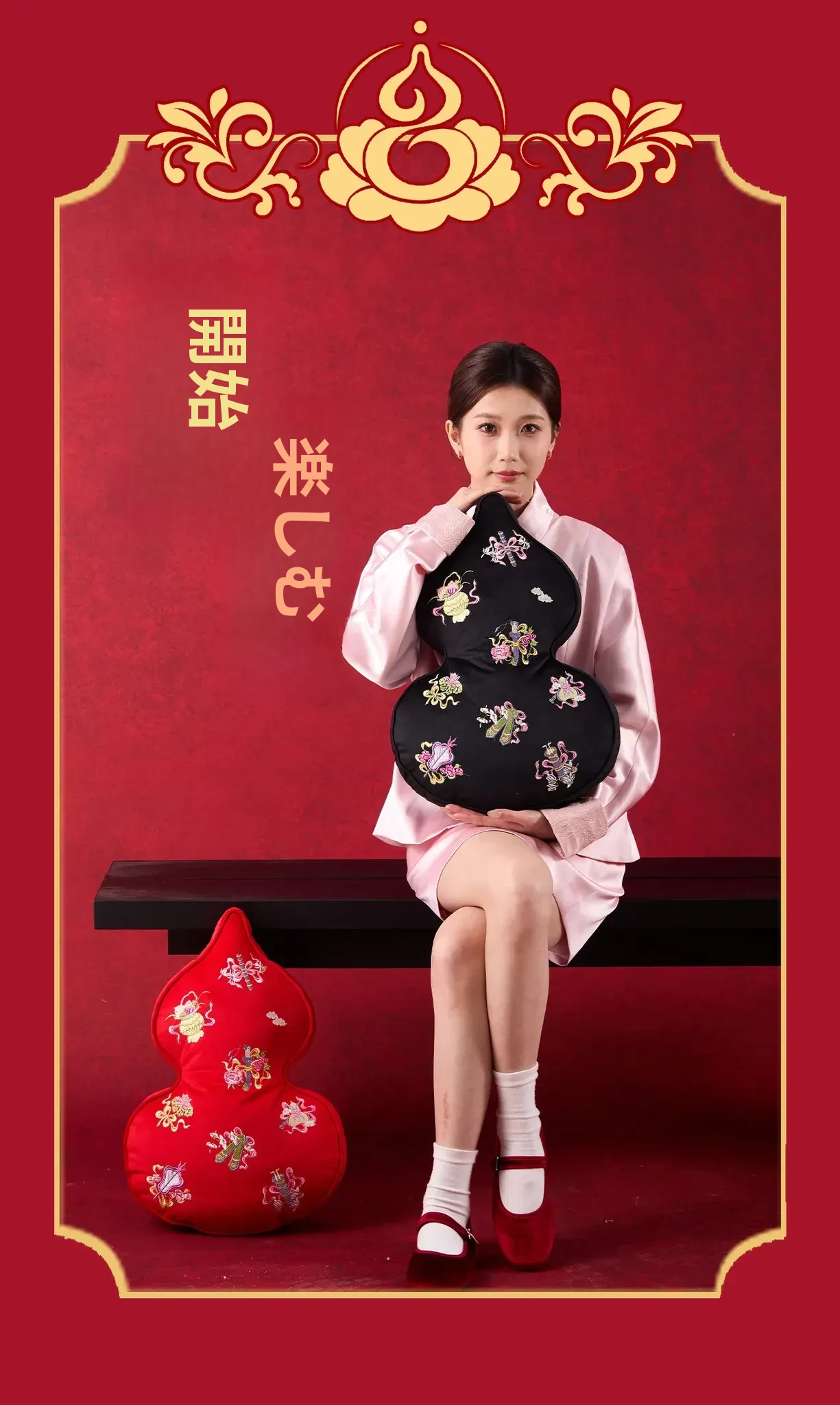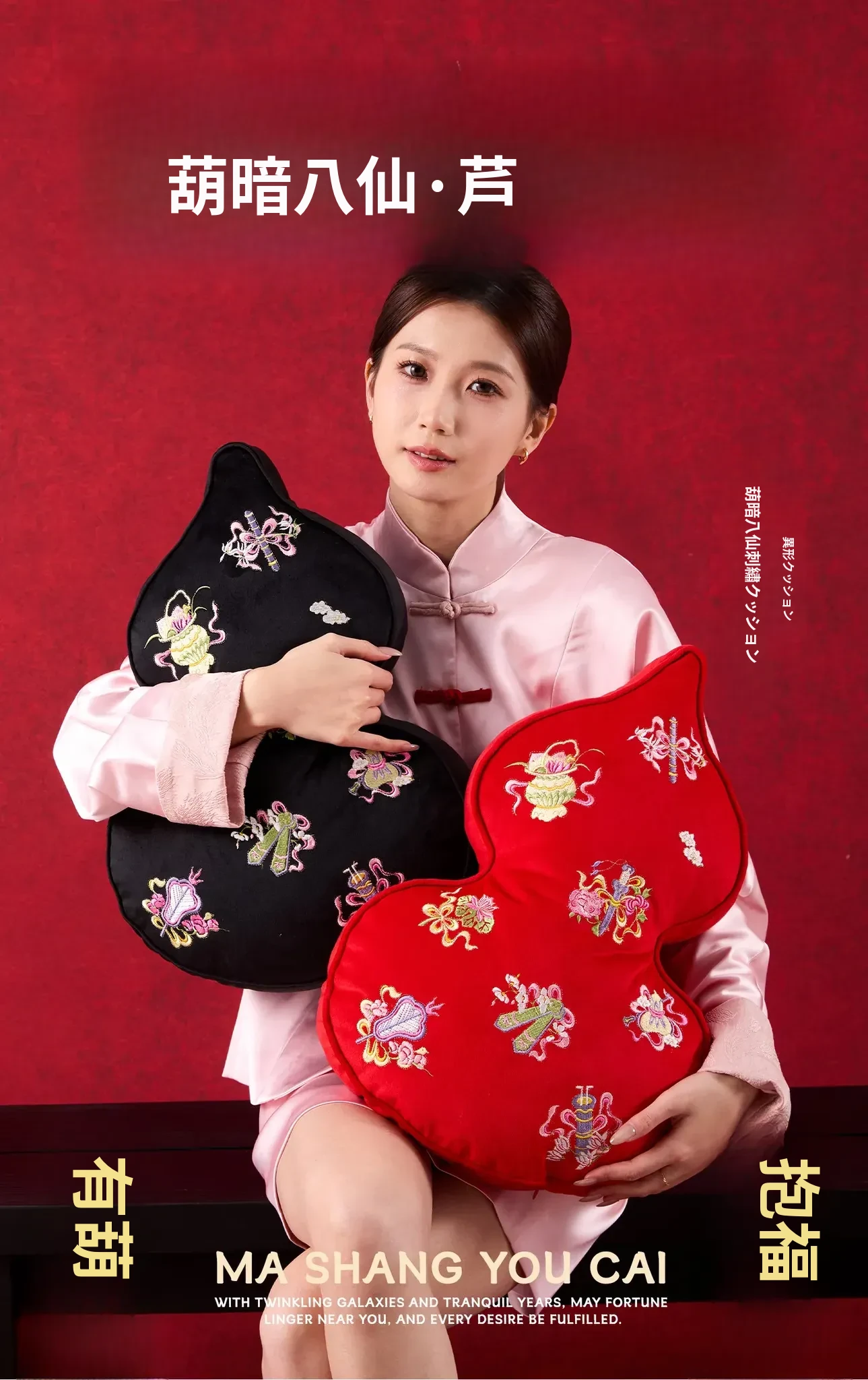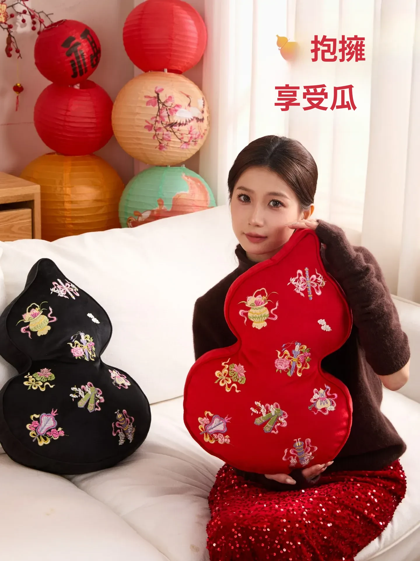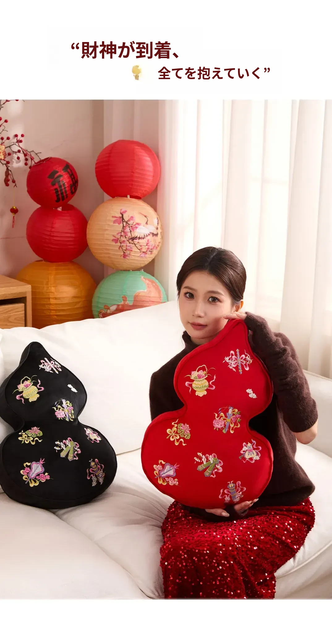 暗八仙刺繍のひょうたんクッション - レッド 35*50cm
