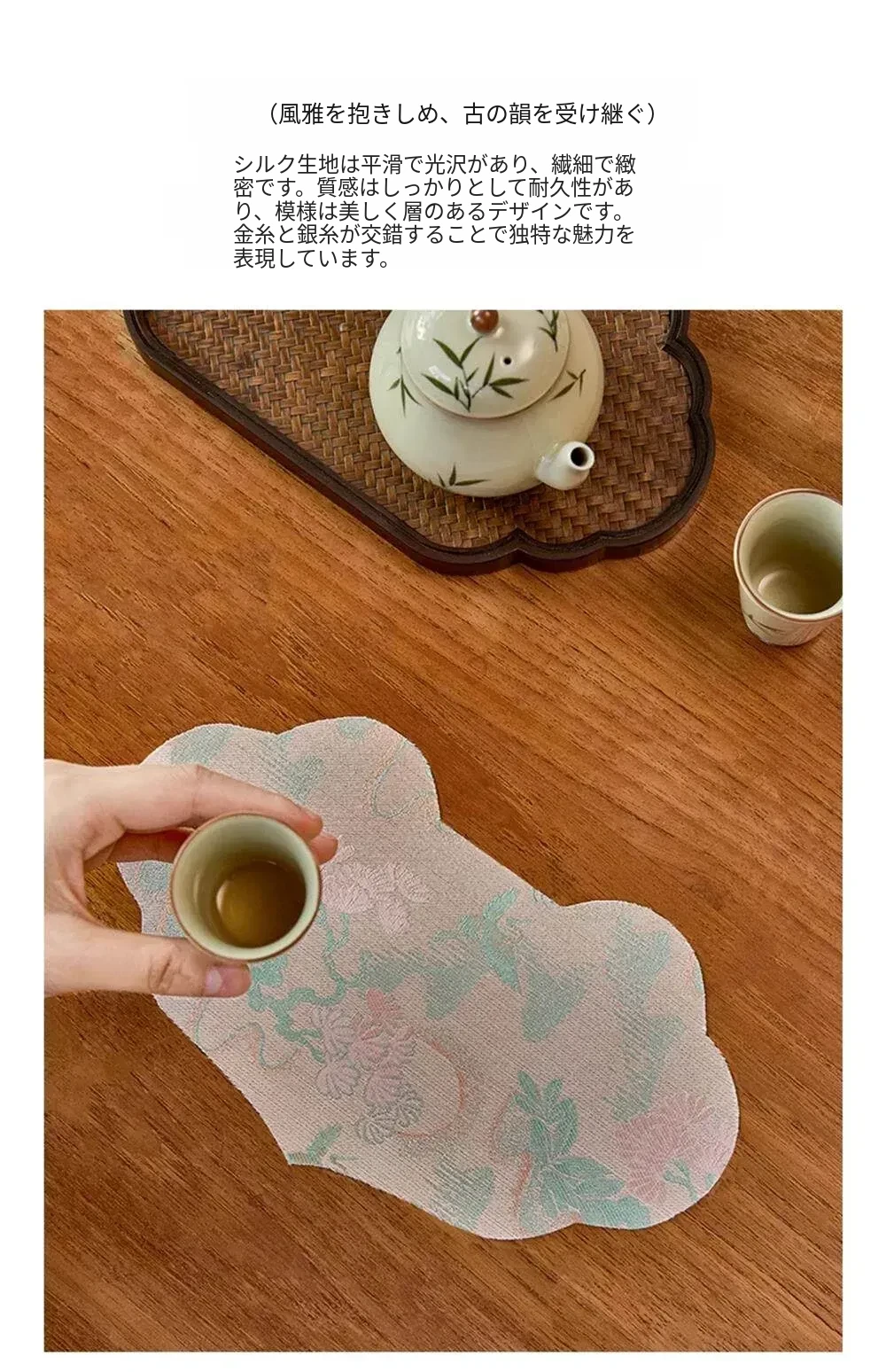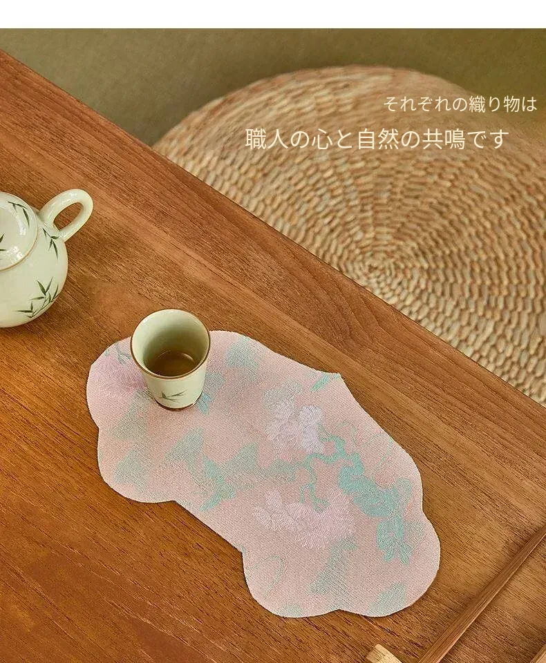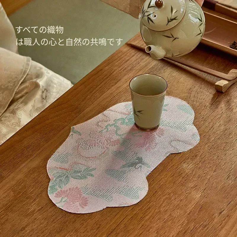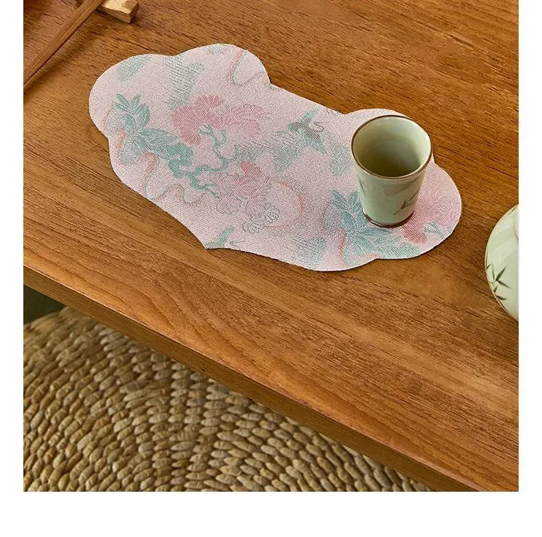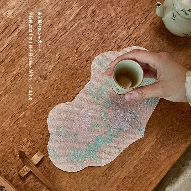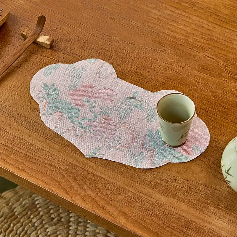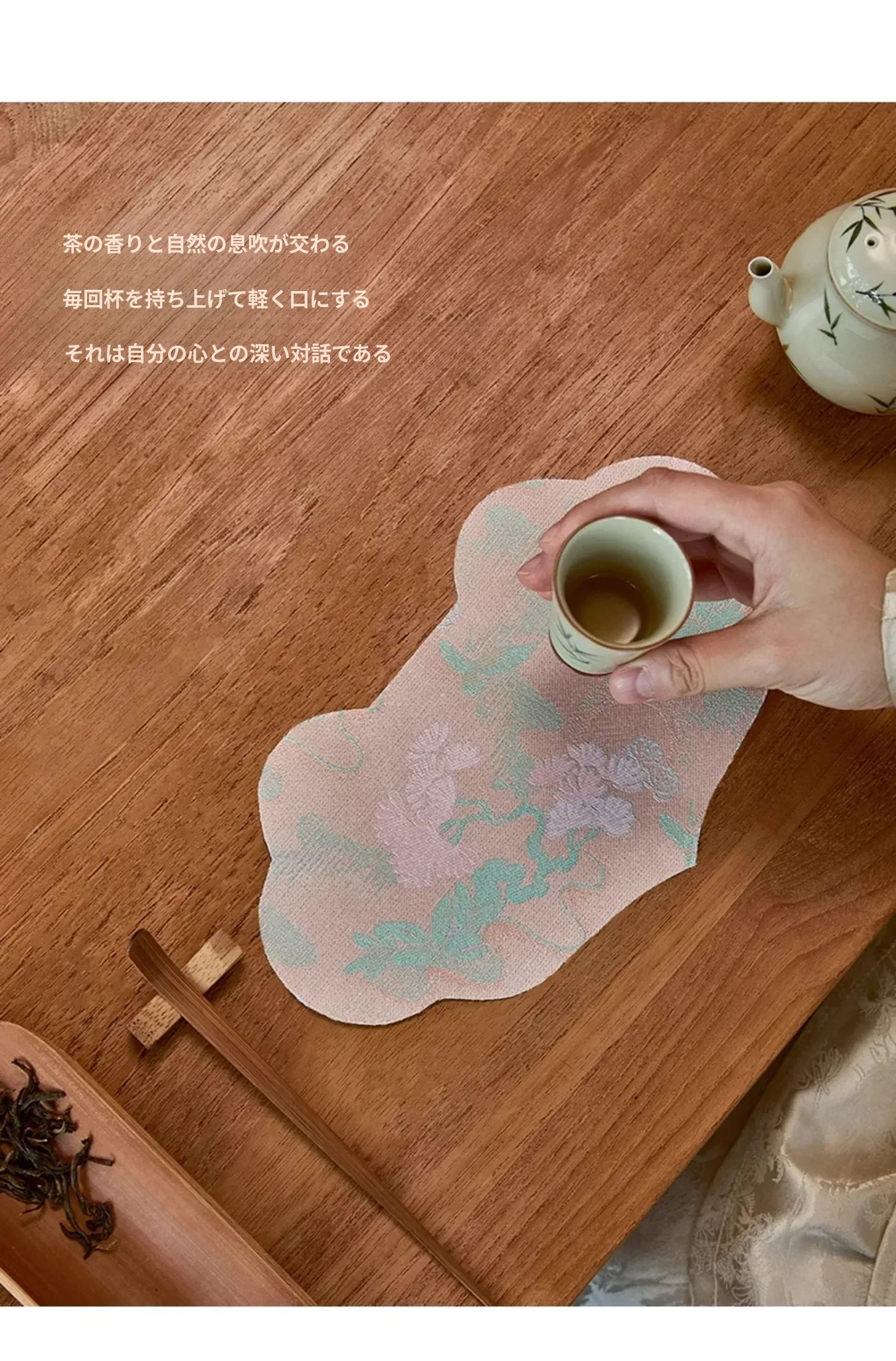 新中式禅スタイルの防水ティーセッティングマット - コンパクトサイズのピンク色、茶道にぴったりなティーカップマット!あなたの茶席を一層美しく演出します。