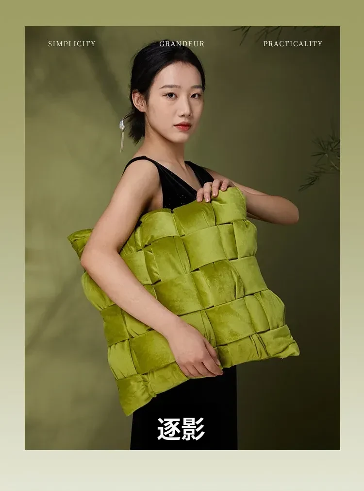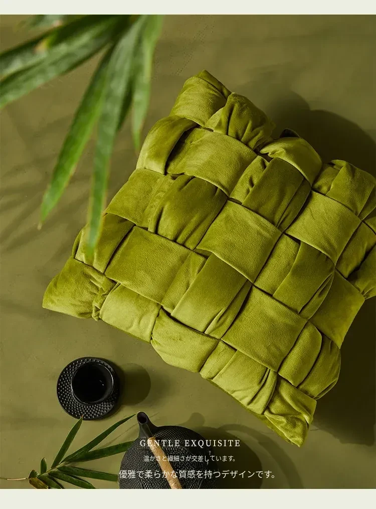 欧州風アートソファークッション|ラグジュアリーな感覚を引き立てる創造的なデザイン|中身なしのミニマルスタイル|グリーンの背当てクッションでおしゃれな空間を演出!