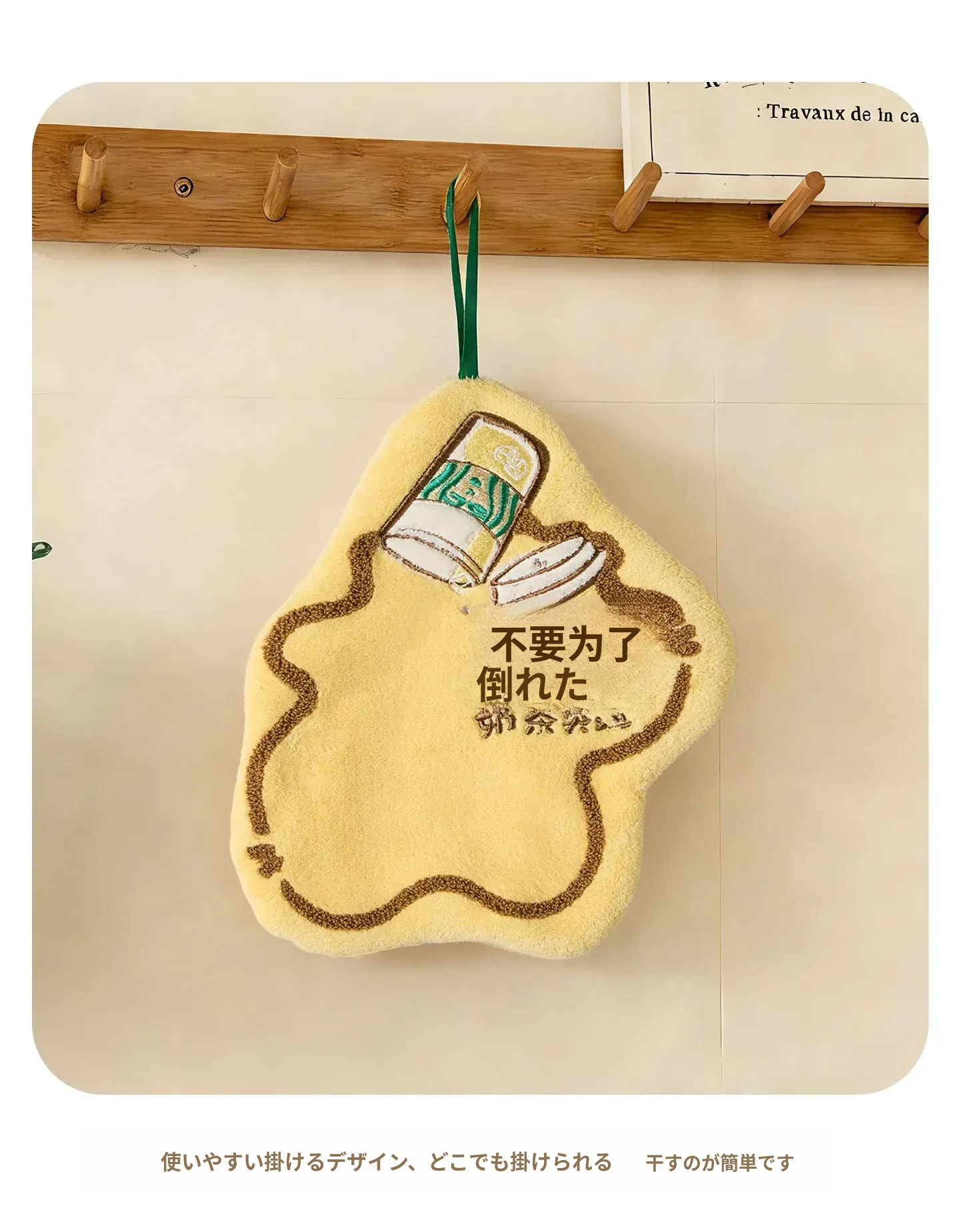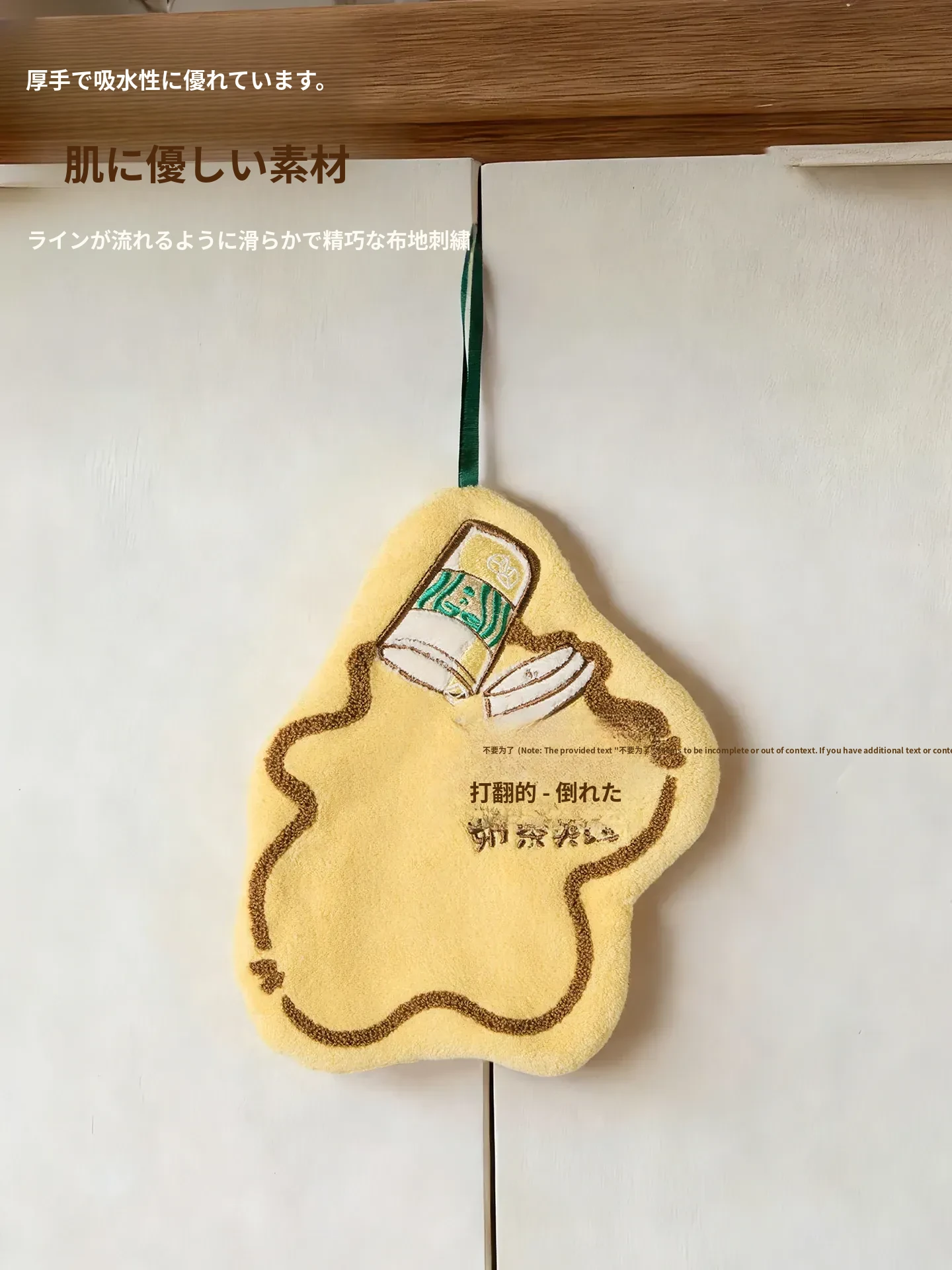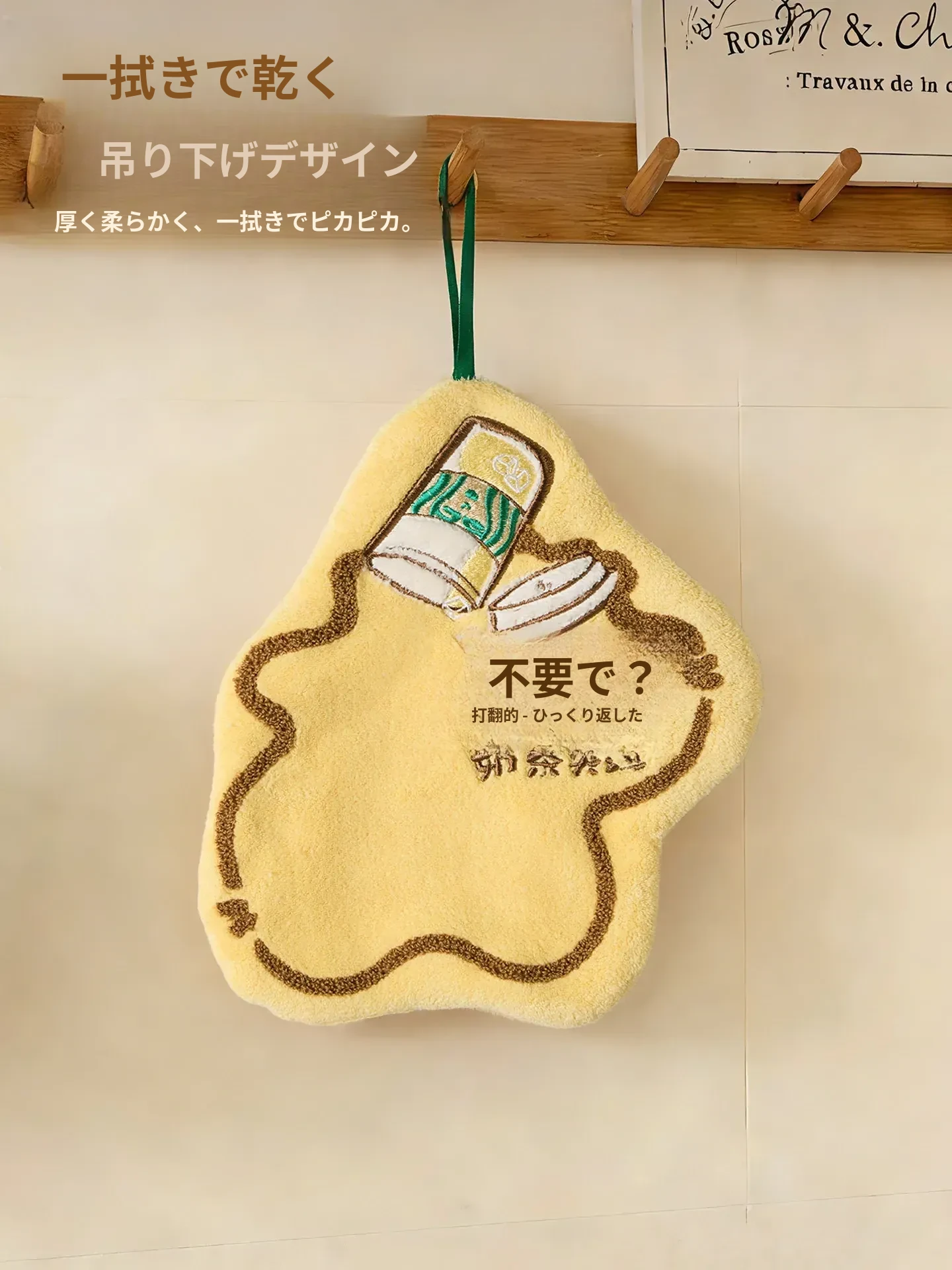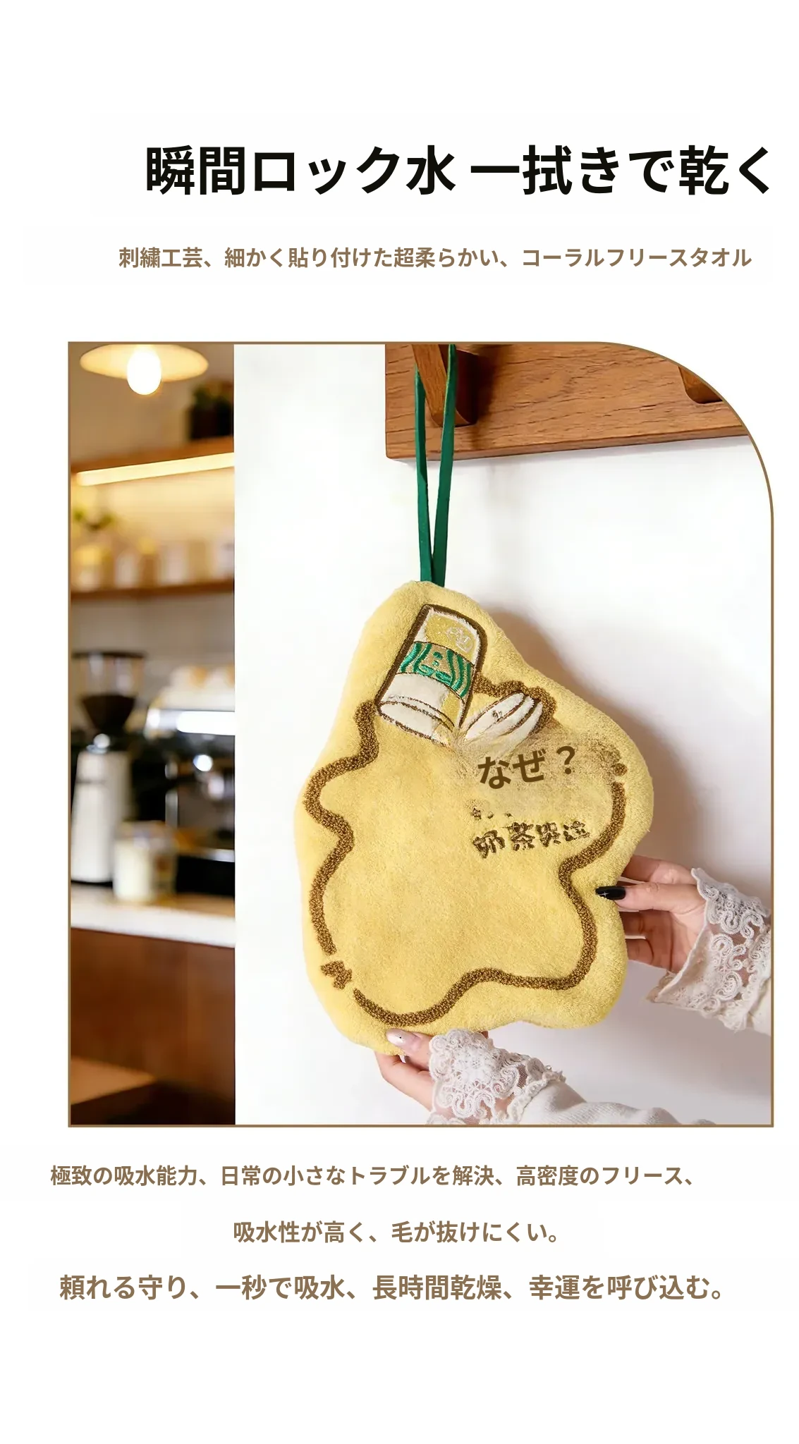 超吸水・厚手・大判!可愛いカートゥーンデザインのキッチン用ハンドタオル。便利な掛け式で、あなたの料理をもっと楽しく!おしゃれで実用的な小さなタオルです。