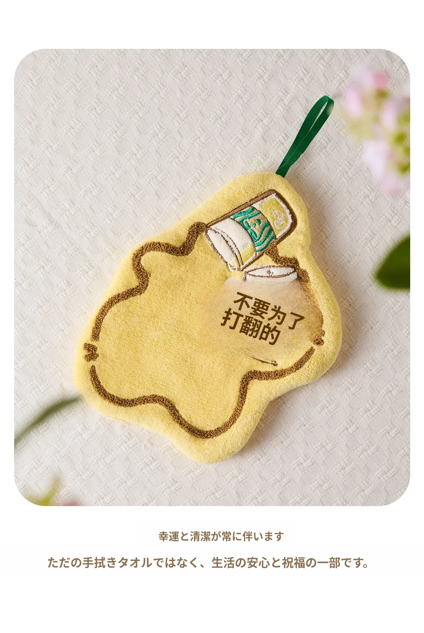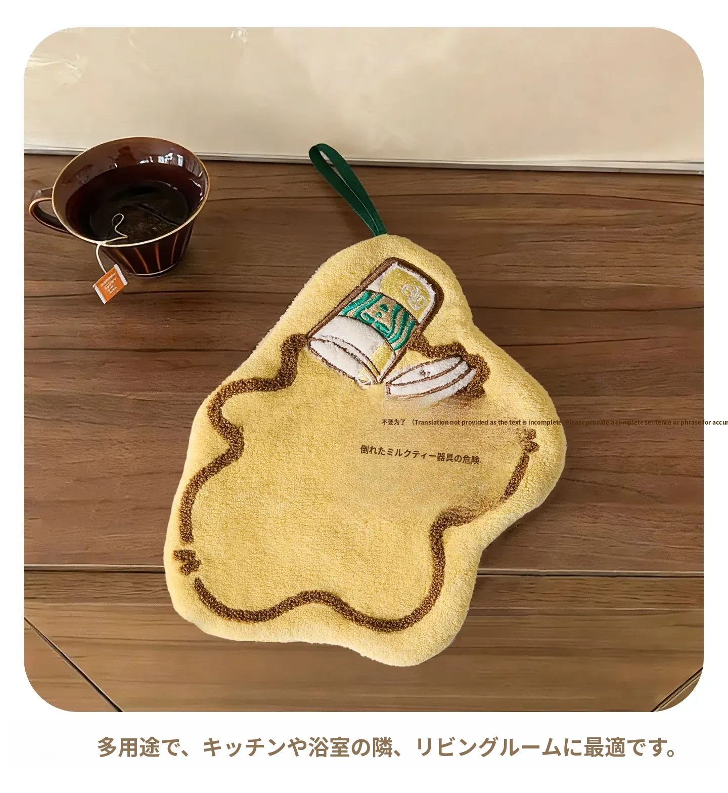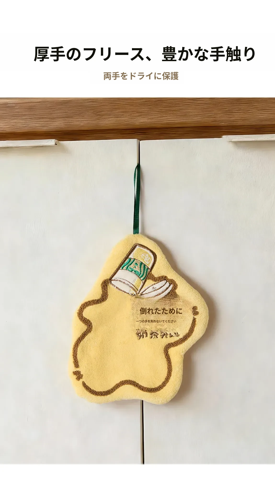 超吸水・厚手・大判!可愛いカートゥーンデザインのキッチン用ハンドタオル。便利な掛け式で、あなたの料理をもっと楽しく!おしゃれで実用的な小さなタオルです。