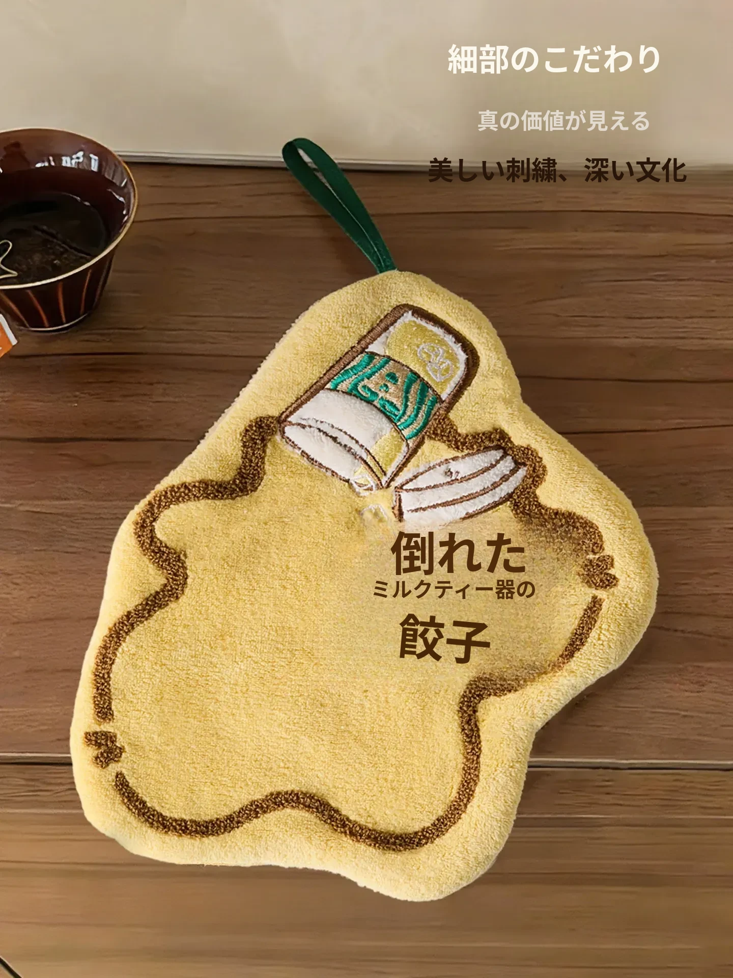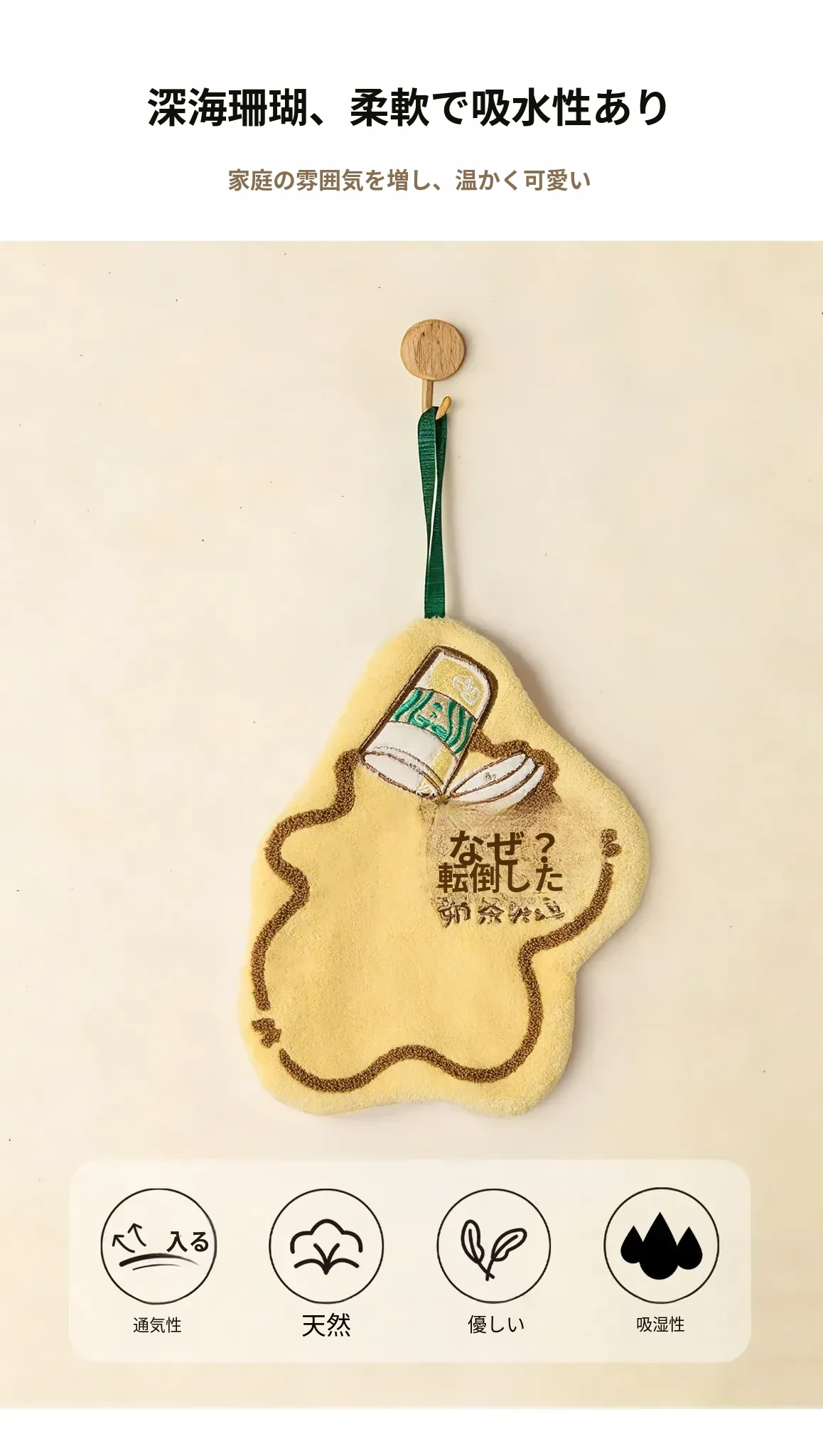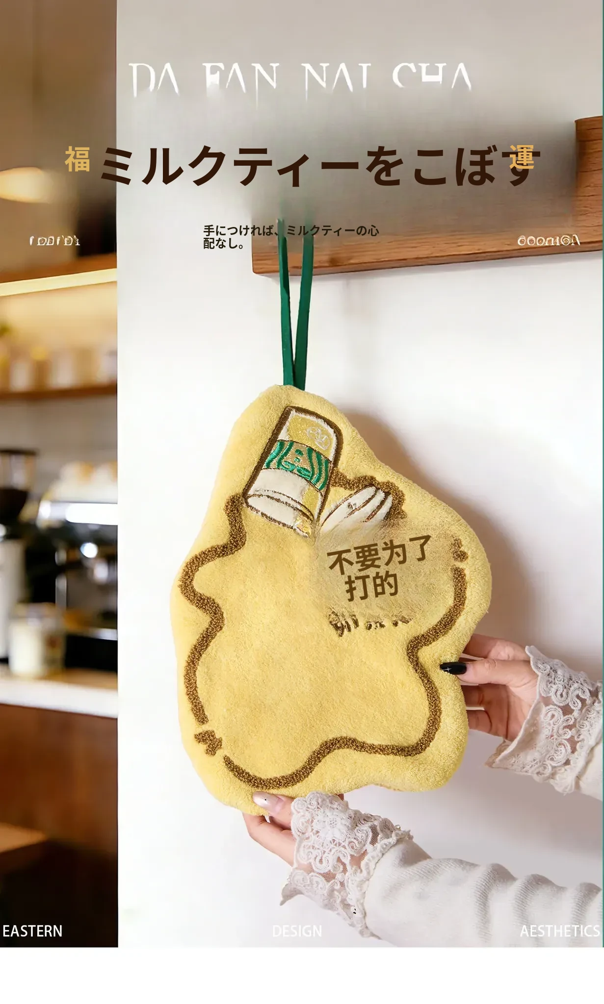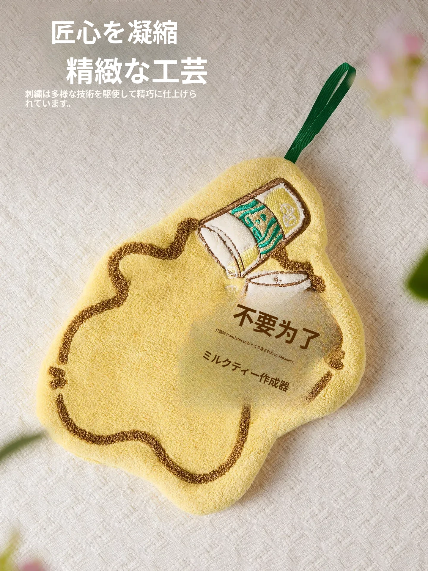 超吸水・厚手・大判!可愛いカートゥーンデザインのキッチン用ハンドタオル。便利な掛け式で、あなたの料理をもっと楽しく!おしゃれで実用的な小さなタオルです。