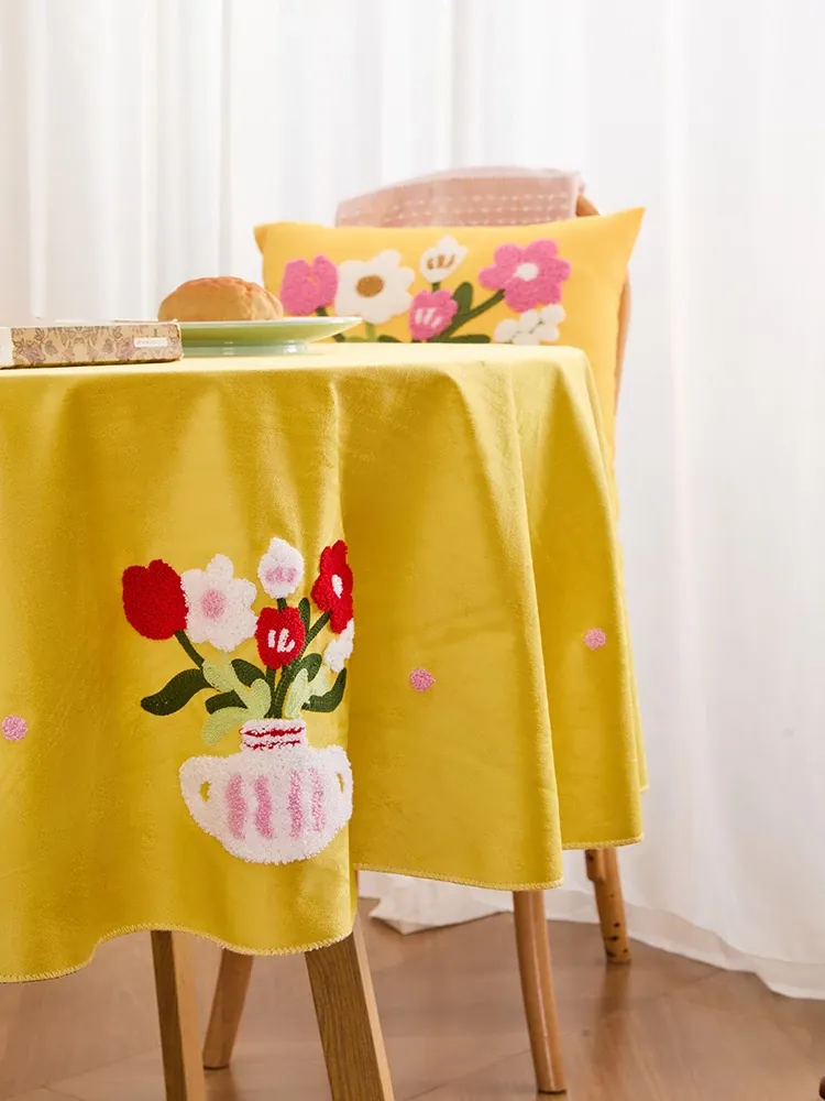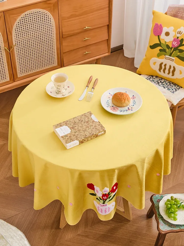 静物花瓶刺繍テーブルクロス-丸型