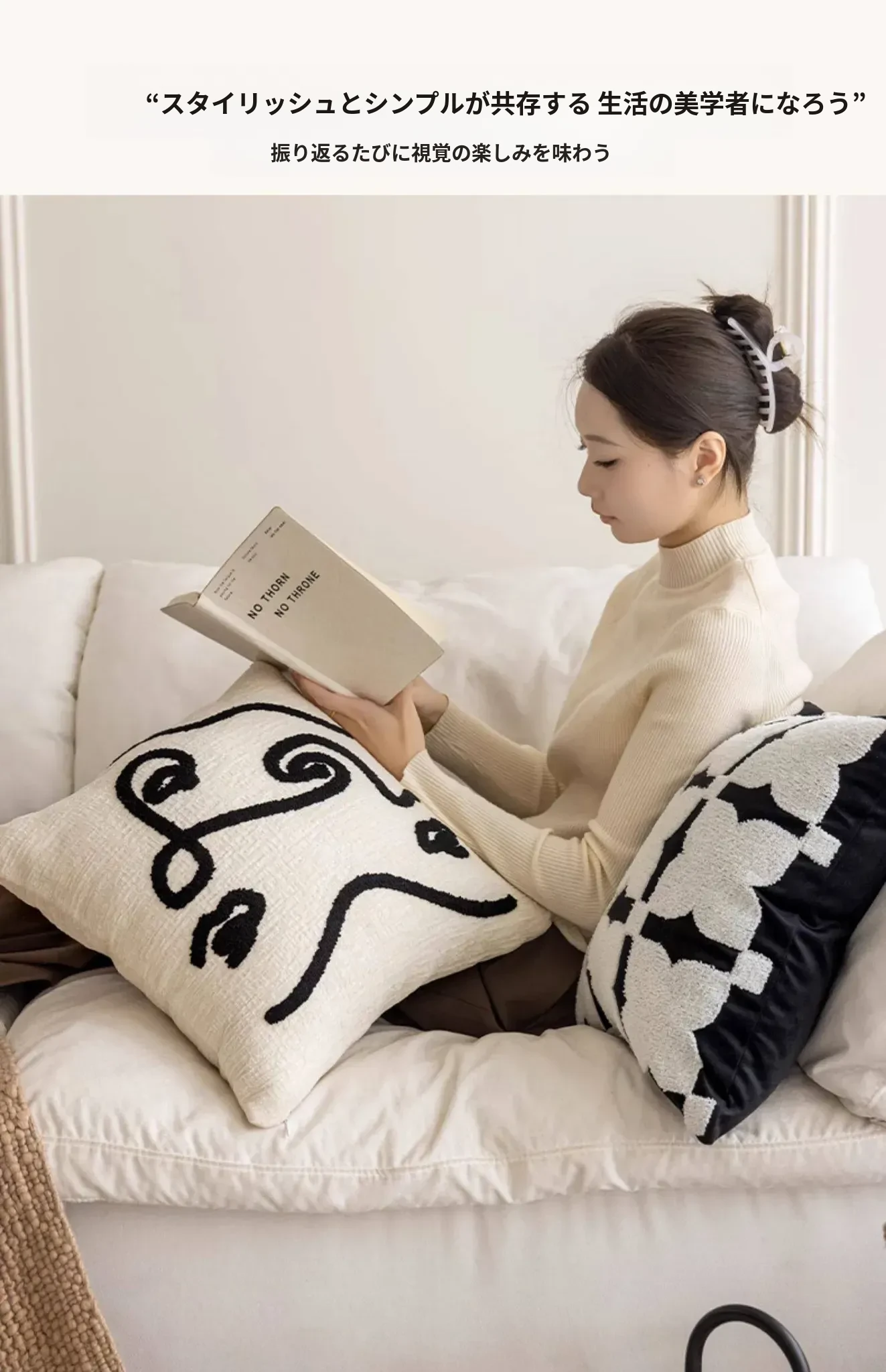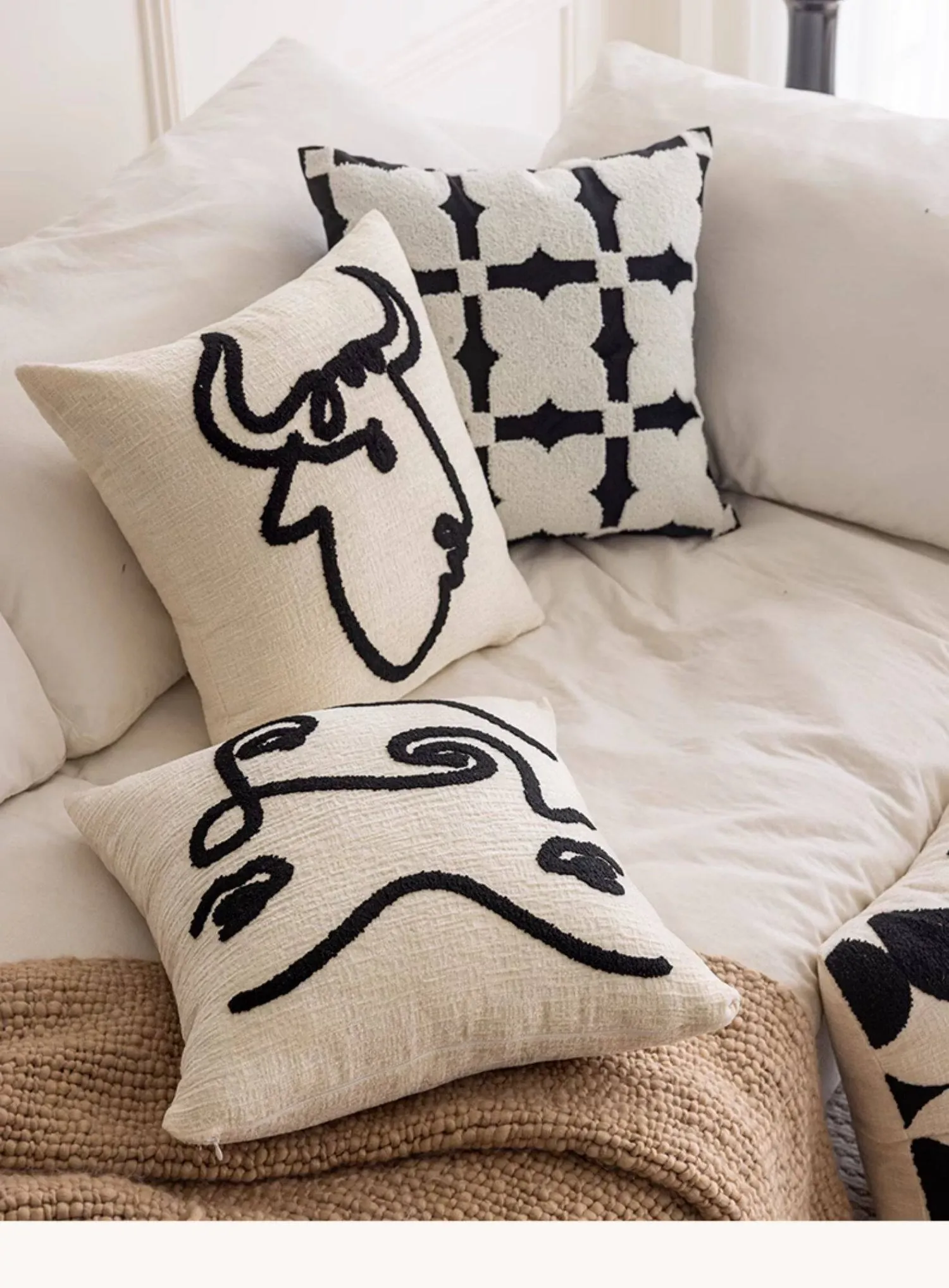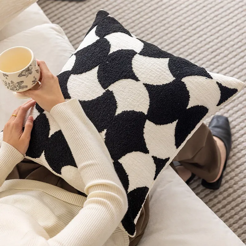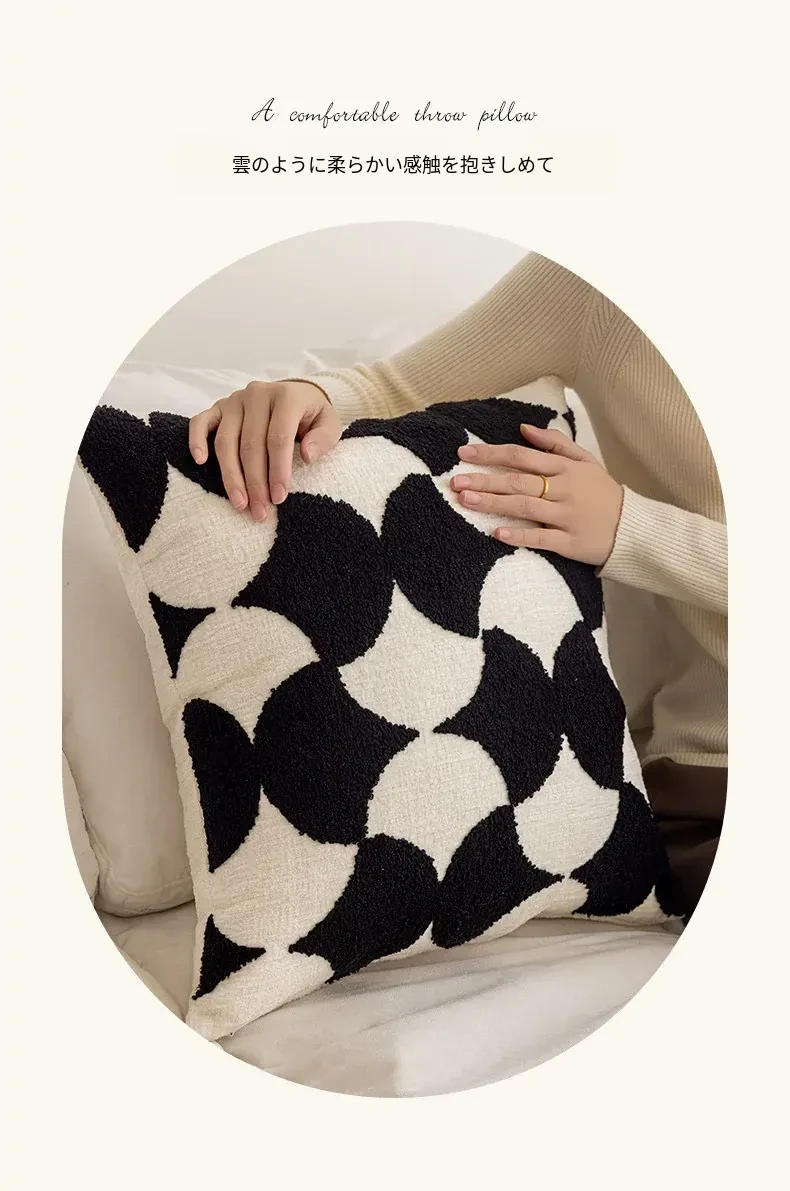 シンプルなフレンチスタイルのブラック&ホワイト、北欧風の軽やかでラグジュアリーなクッションカバー。リビングルームやソファにぴったり、ライン刺繍デザインのホテル仕様のクッション。おしゃれな空間を演出します!