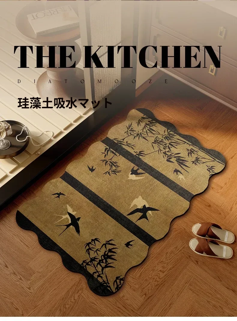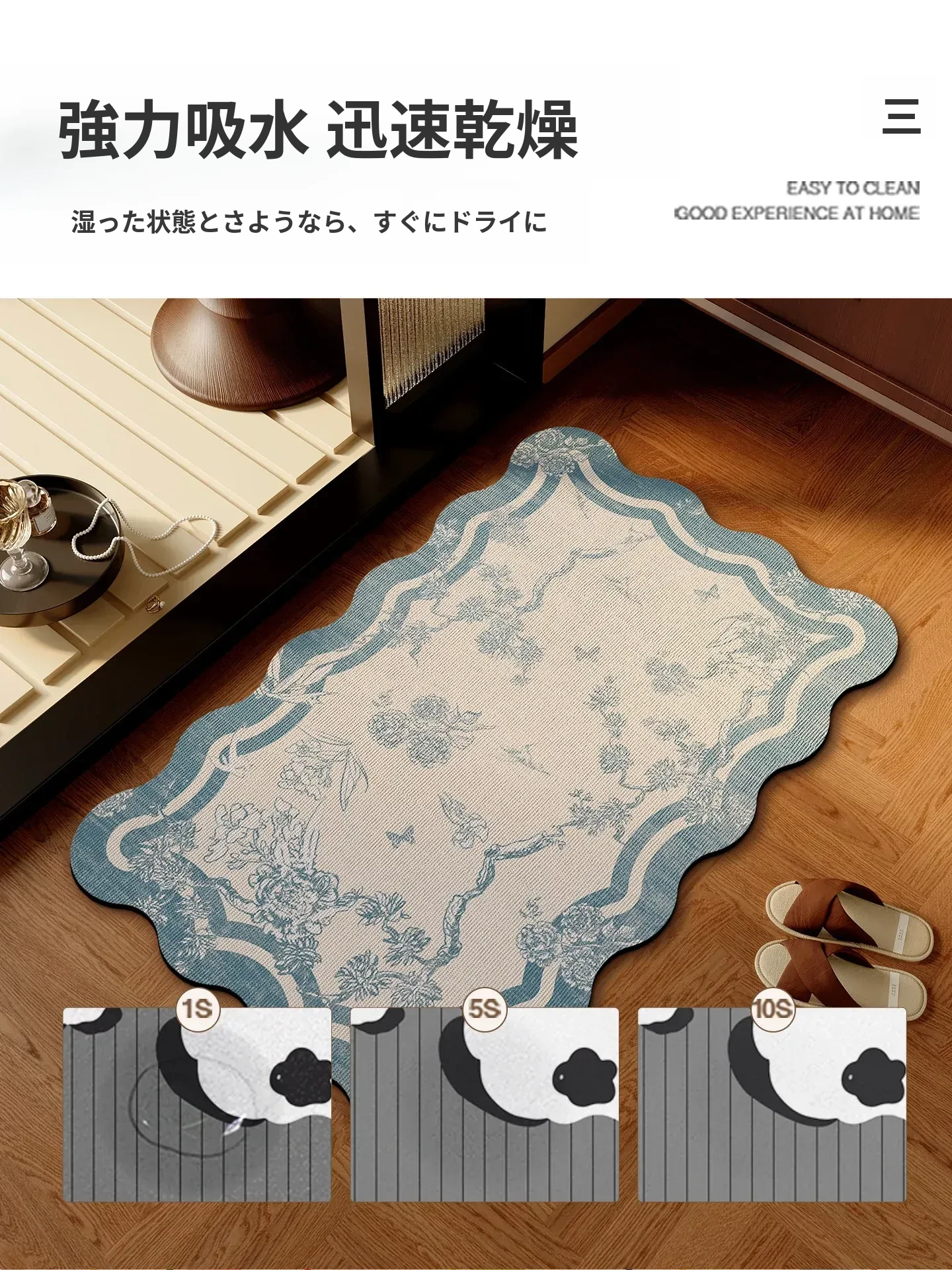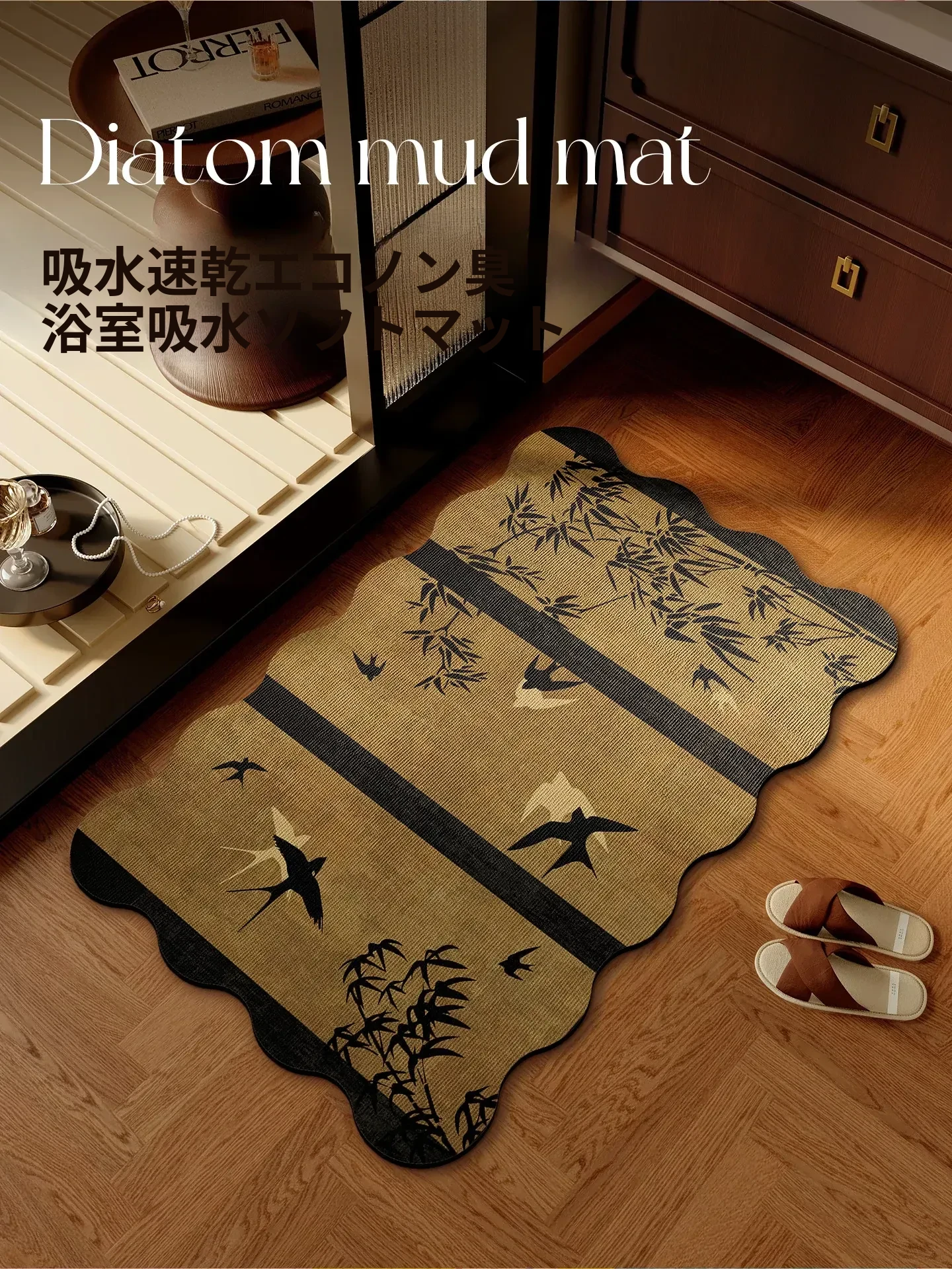 新中式デザインの防滑速乾バスルームマット - トイレの入り口にぴったり!湿気を気にせず、スタイリッシュで安全な空間を実現。おしゃれな乾湿分離カーペットで、快適なバスタイムをお楽しみください!