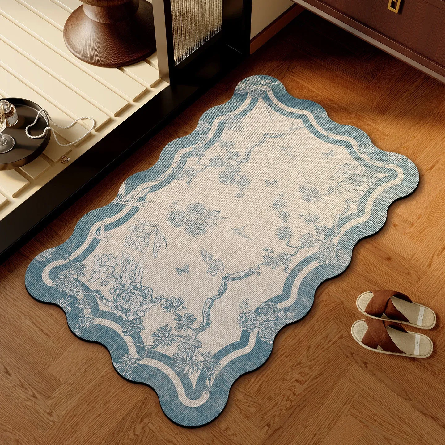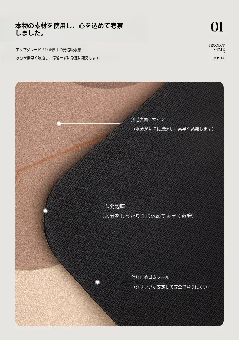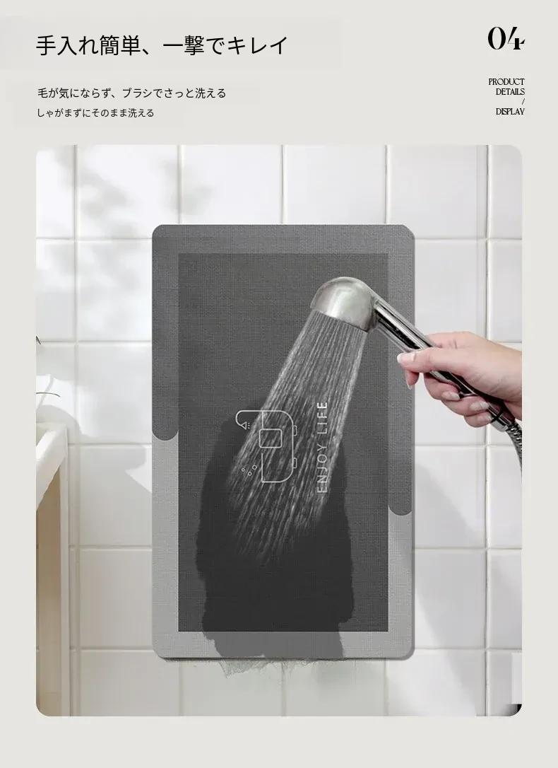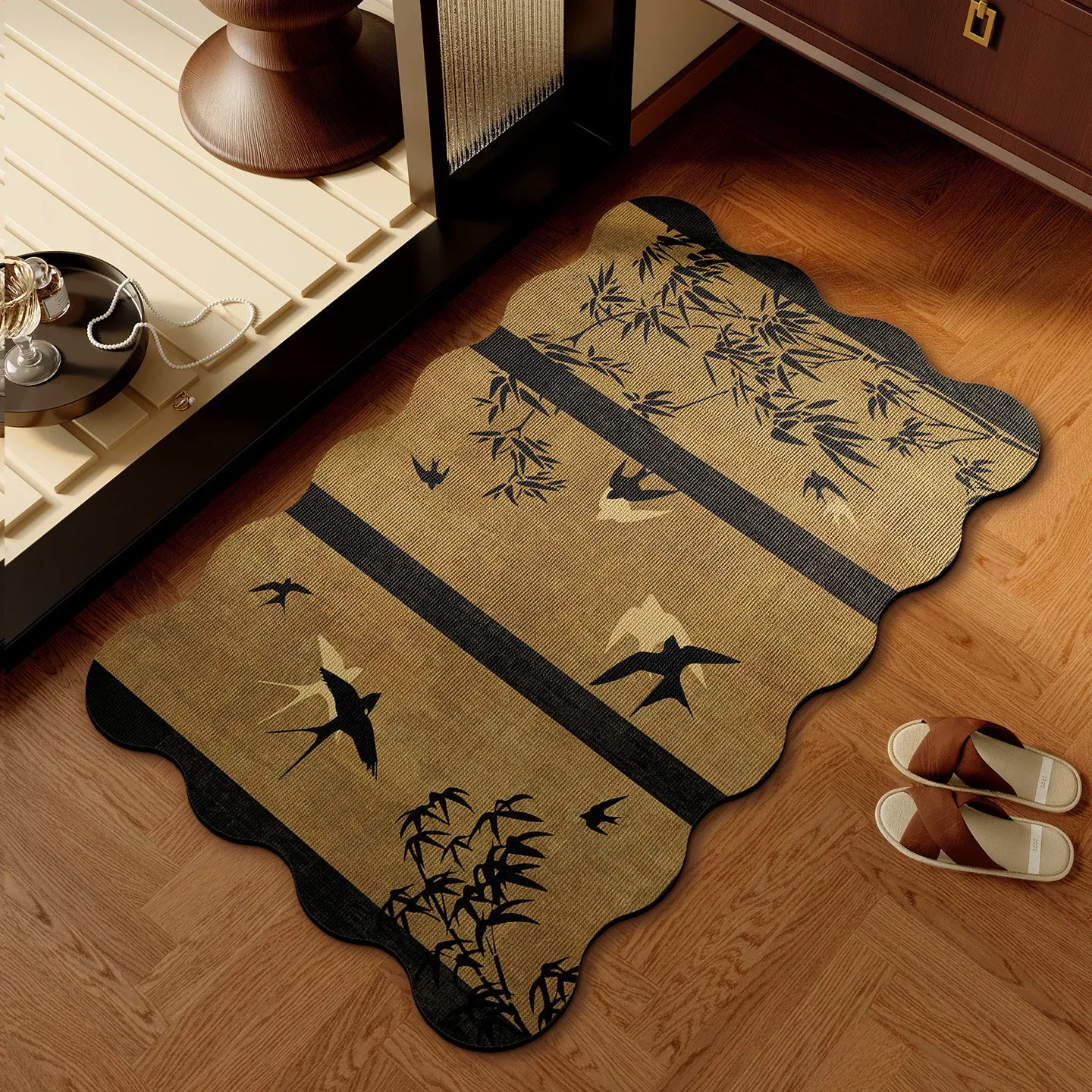 新中式デザインの防滑速乾バスルームマット - トイレの入り口にぴったり!湿気を気にせず、スタイリッシュで安全な空間を実現。おしゃれな乾湿分離カーペットで、快適なバスタイムをお楽しみください!