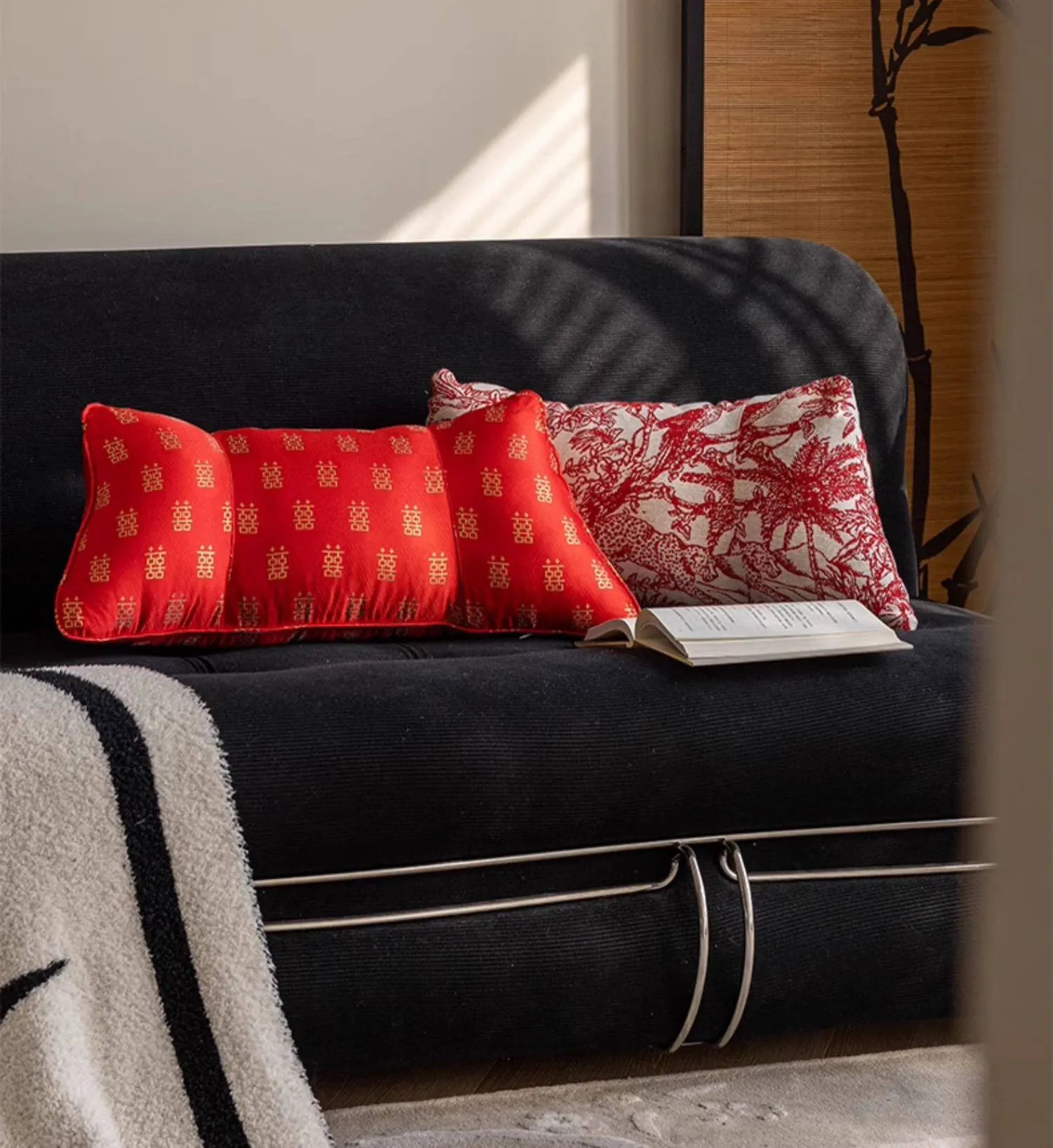 新中式デザインのソファベッド用腰枕 - オフィスや自宅での長時間座り作業に最適!腰をしっかりサポートし、快適な座り心地を実現。スタイリッシュなインテリアにもぴったりなクッションです。