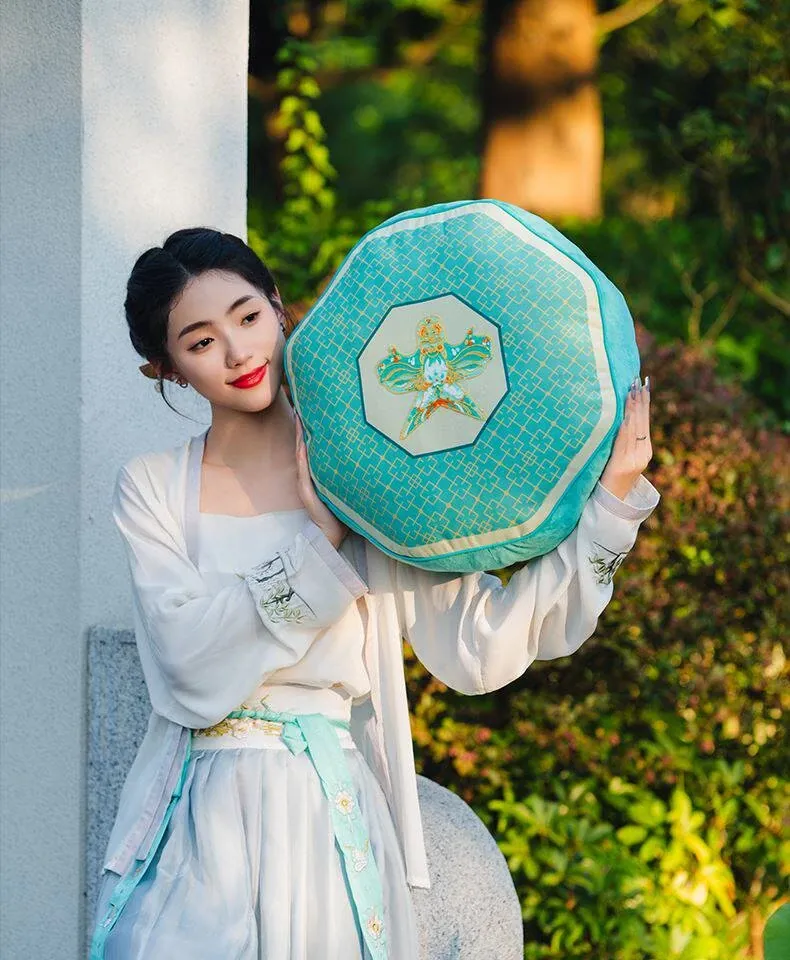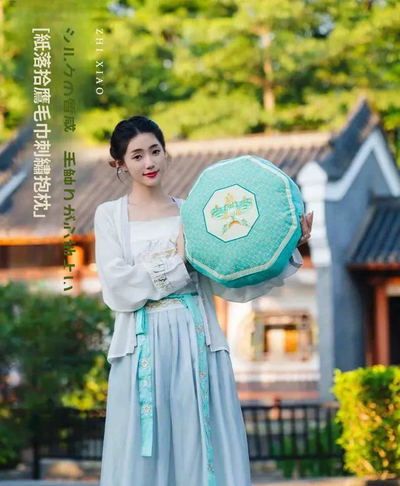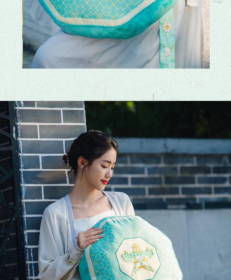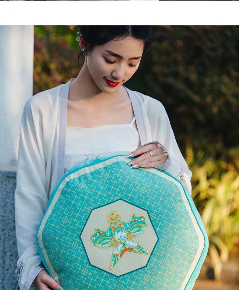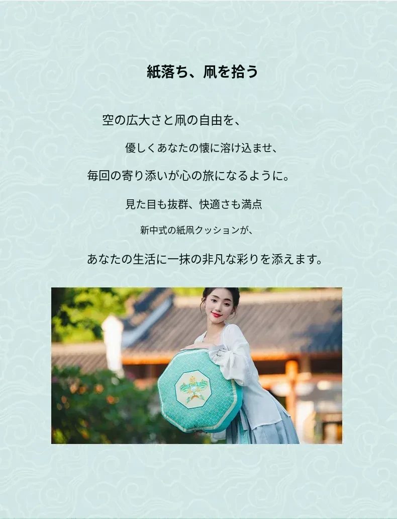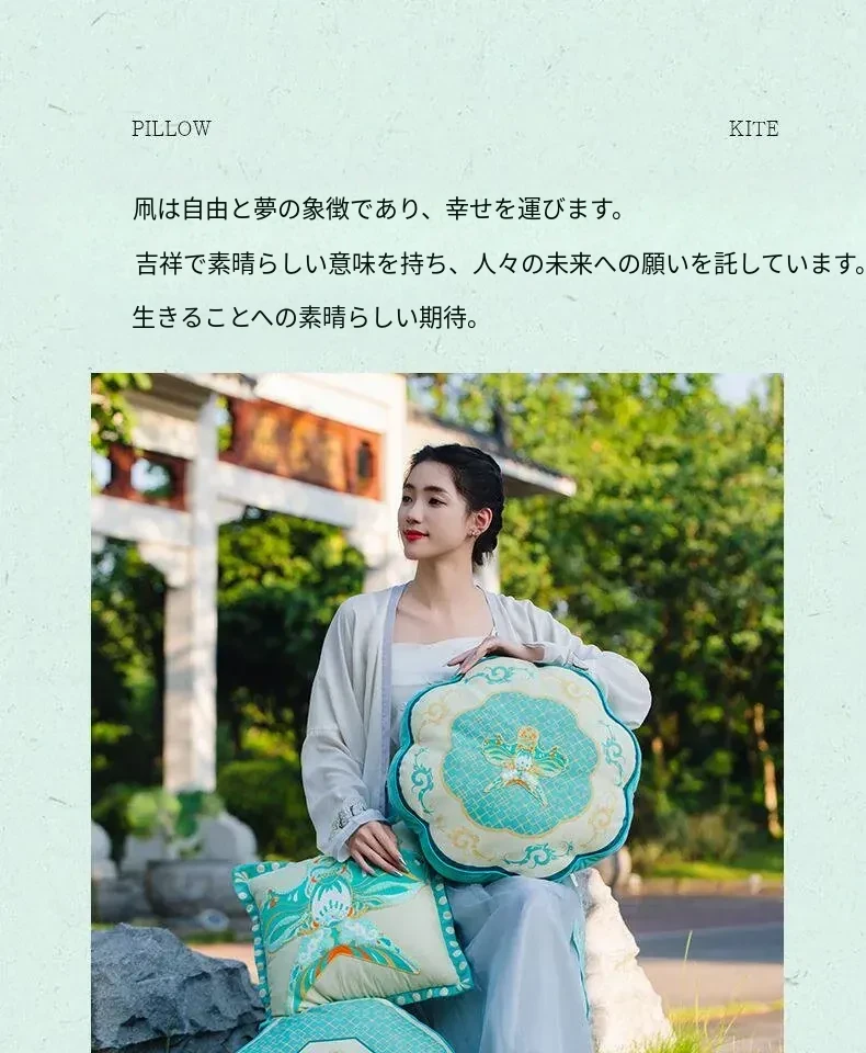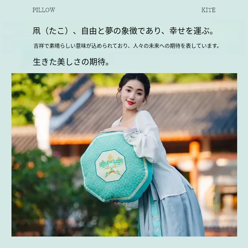 新中式中国風の紙凧デザインクッション|リビングや寝室にぴったりの爽やかなグリーン|ソファやベッドの背もたれに最適な腰枕で、心地よいひとときをお届けします。