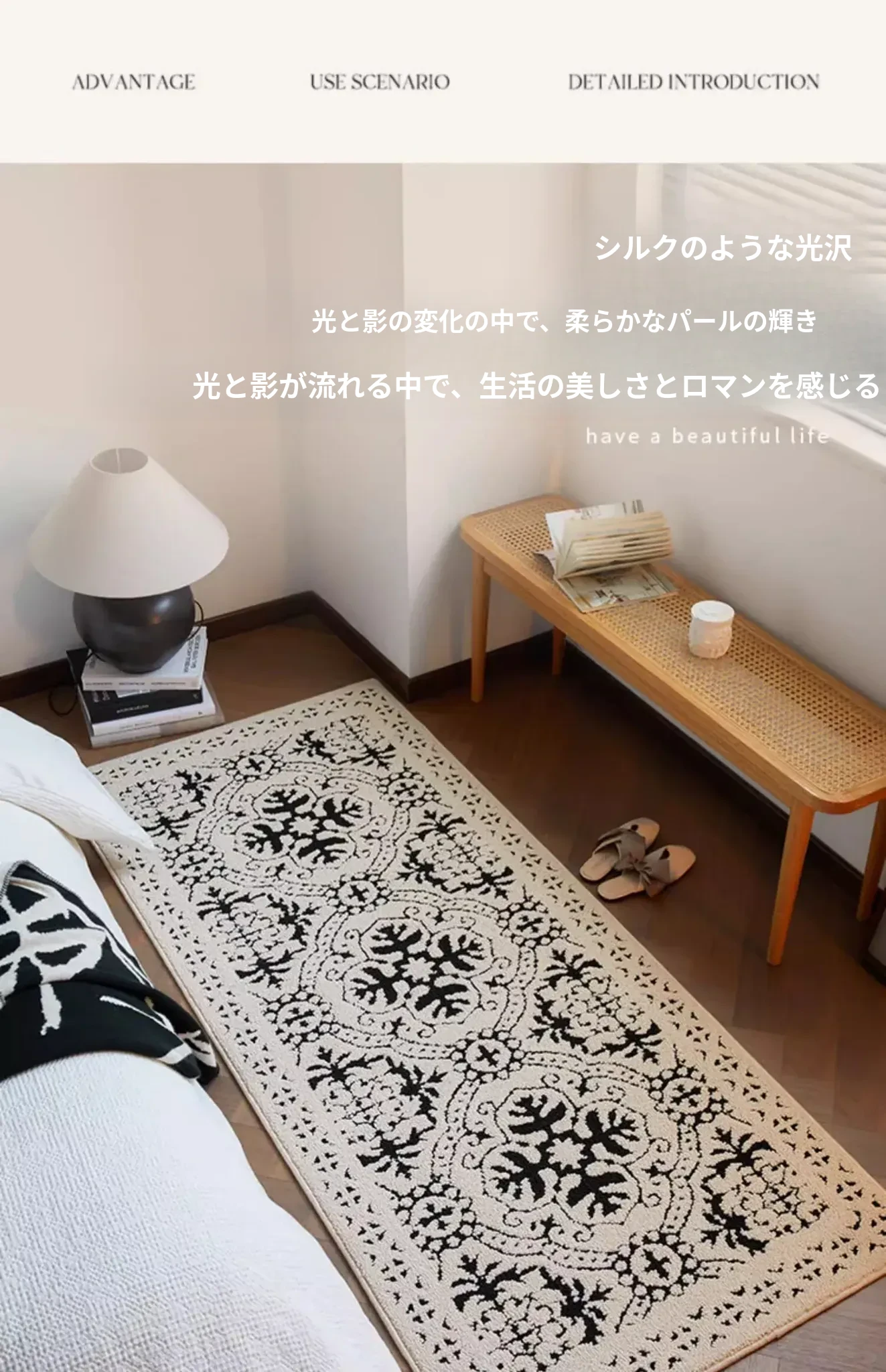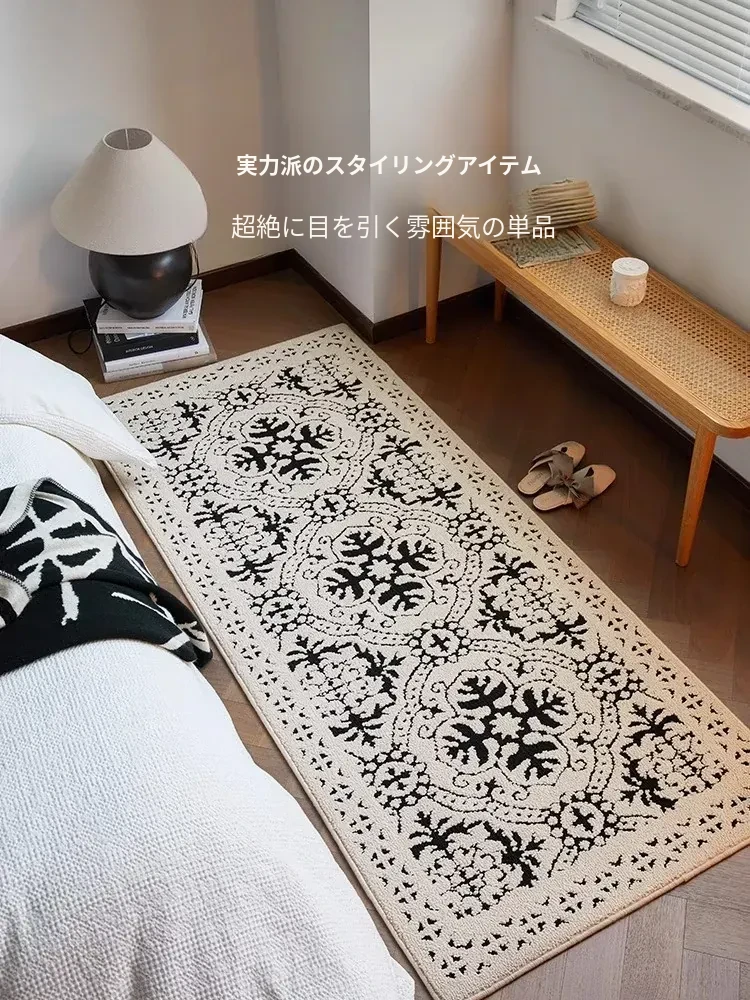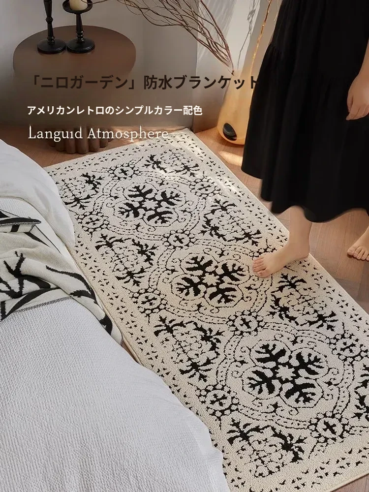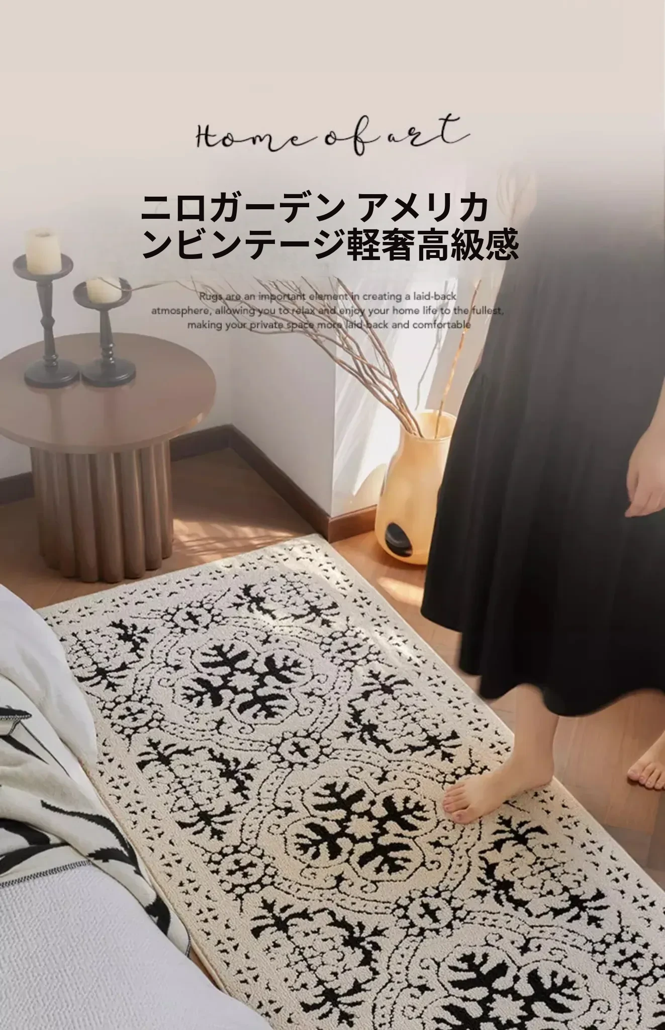 新作!防水・抗汚れベッドサイドマット - アメリカンヴィンテージスタイルの主寝室用ベッドエンドカーペット。洗える&汚れに強い地毯で、お部屋をスタイリッシュに演出!