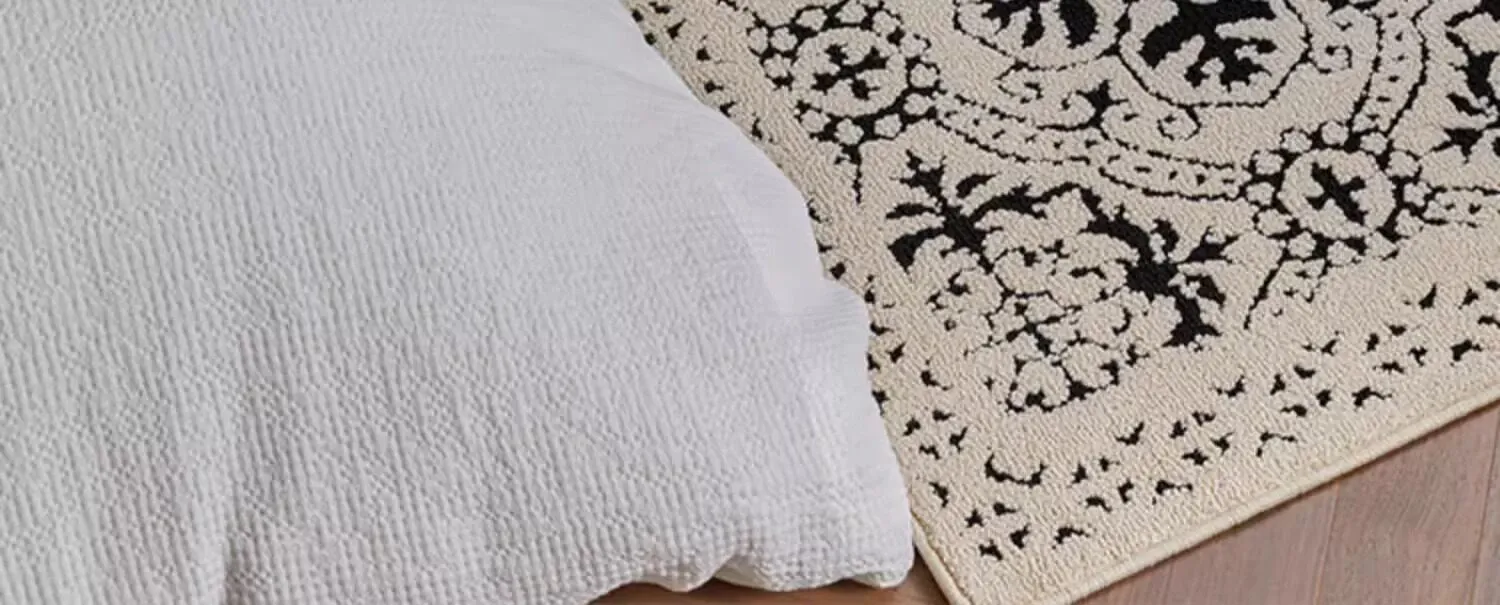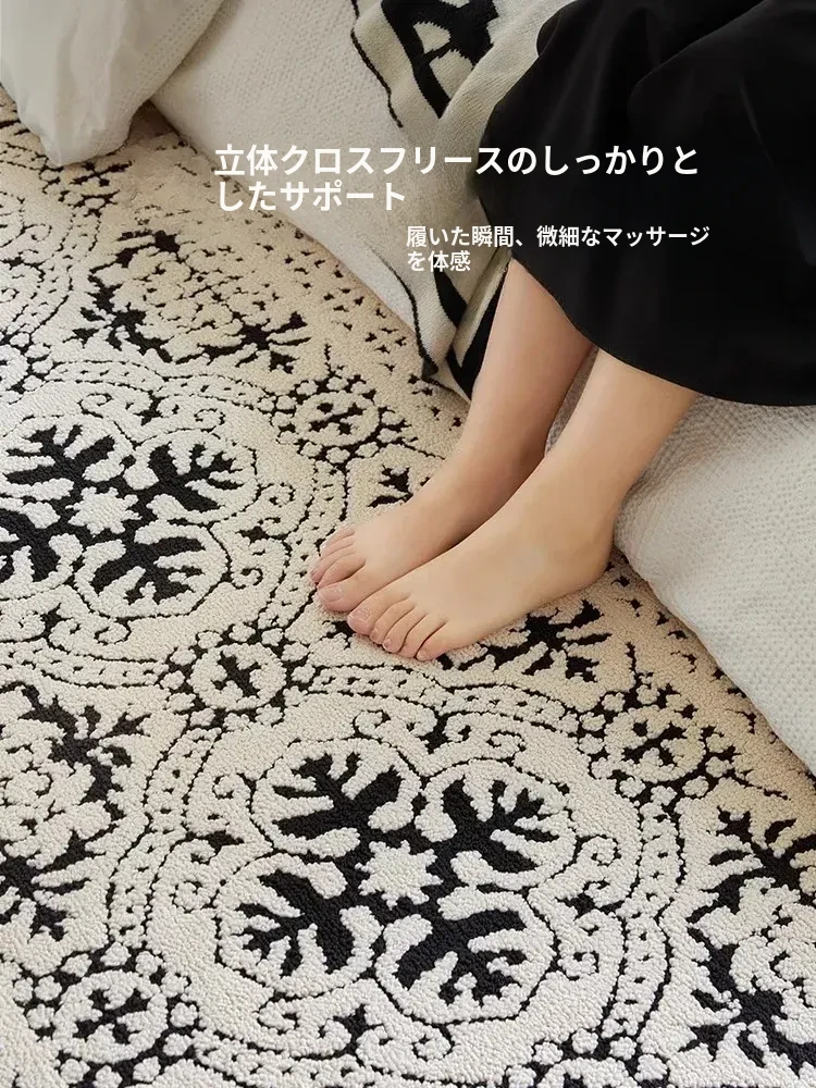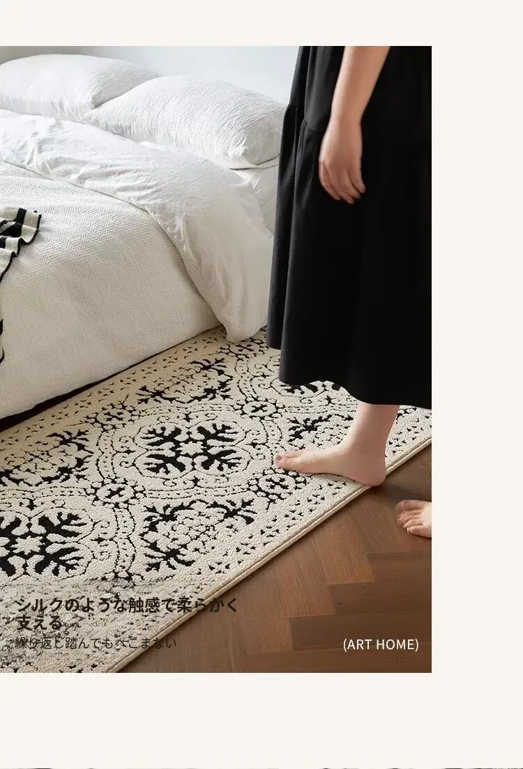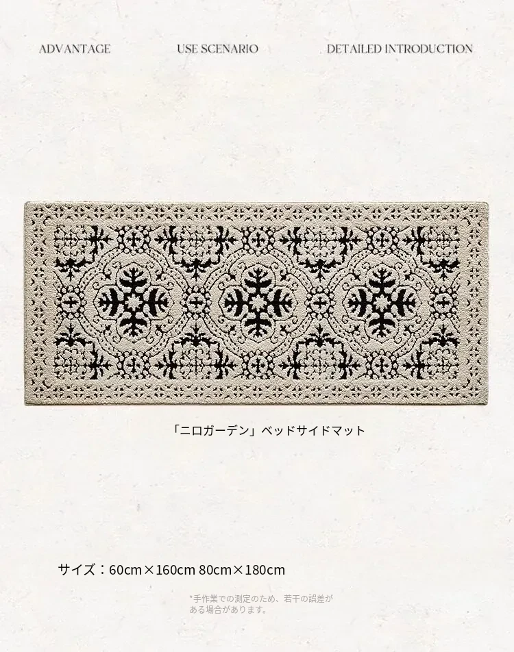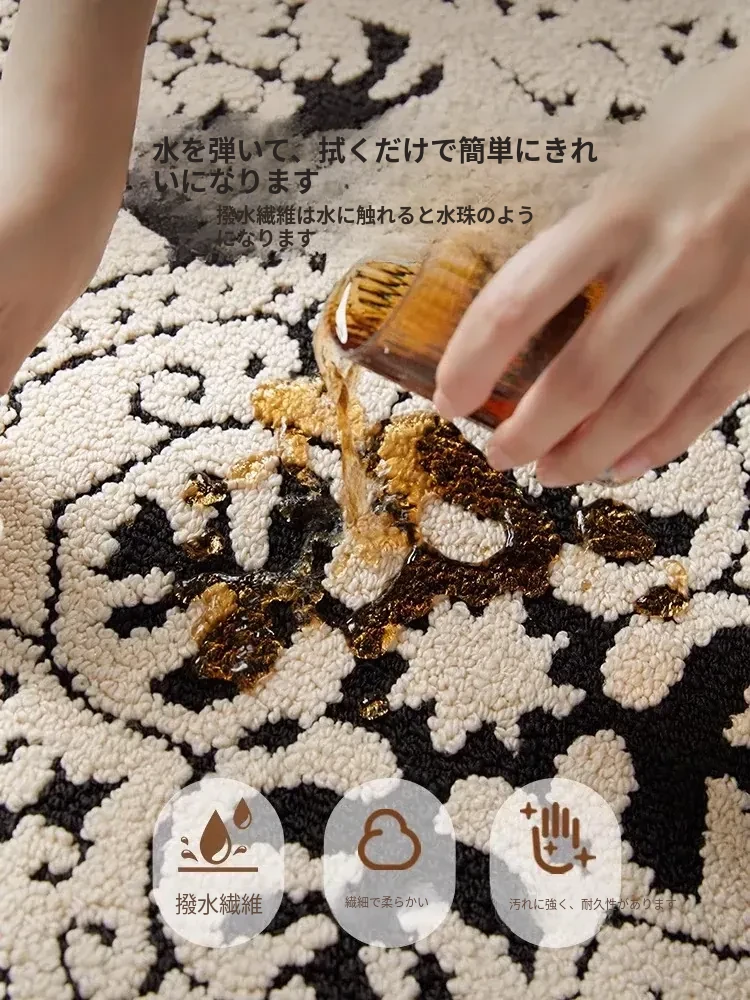 新作!防水・抗汚れベッドサイドマット - アメリカンヴィンテージスタイルの主寝室用ベッドエンドカーペット。洗える&汚れに強い地毯で、お部屋をスタイリッシュに演出!