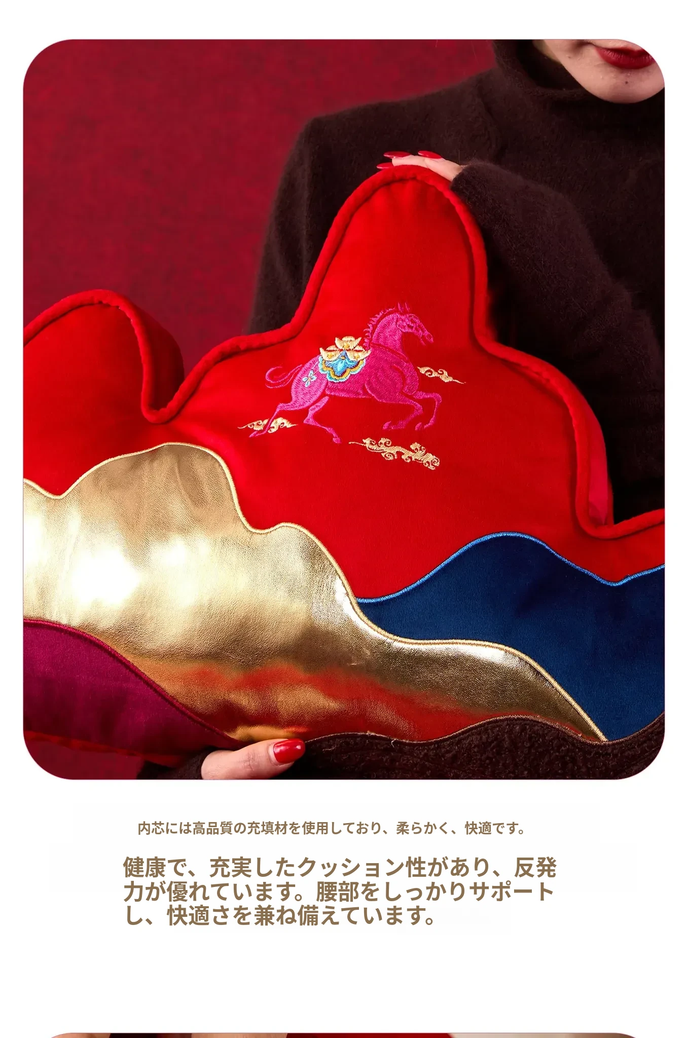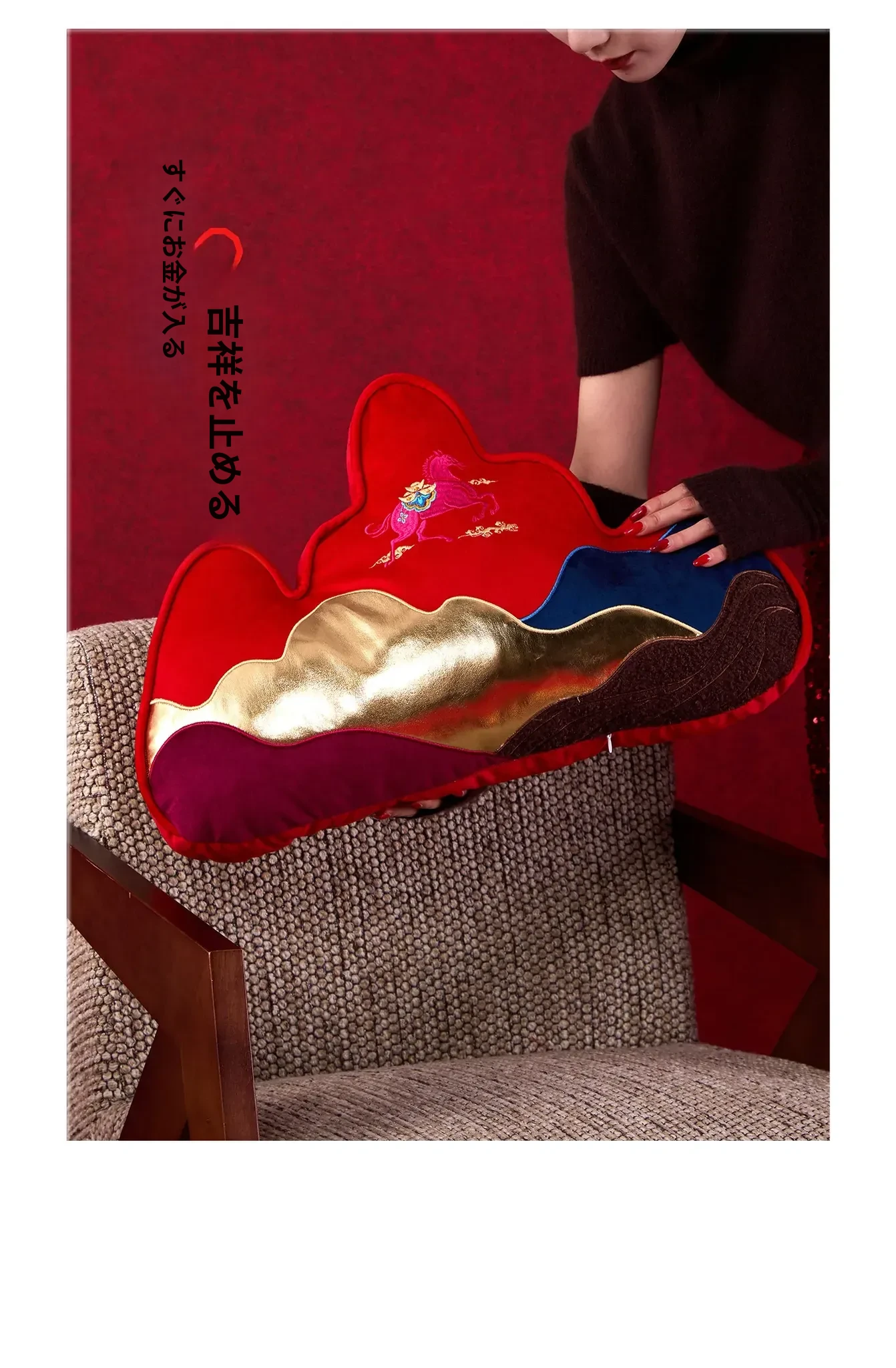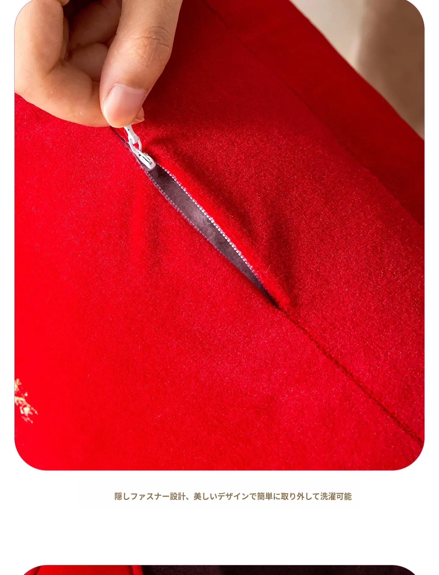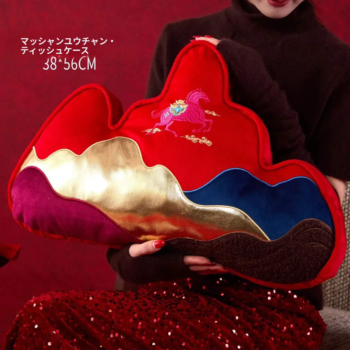 2026年の馬年にぴったり!新年を祝う華やかな赤い刺繍クッションカバー。新中式デザインのユニークな形状で、高級感溢れる腰枕。お部屋を彩り、心地よいひとときを提供します。