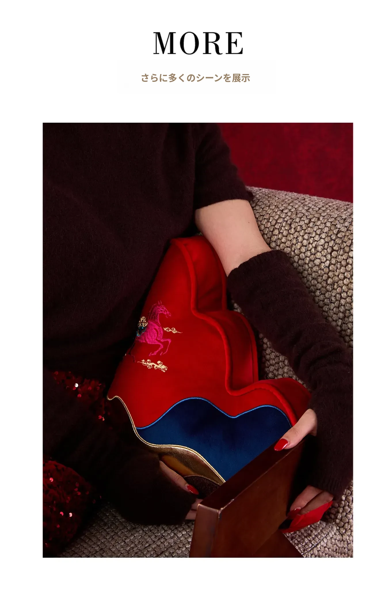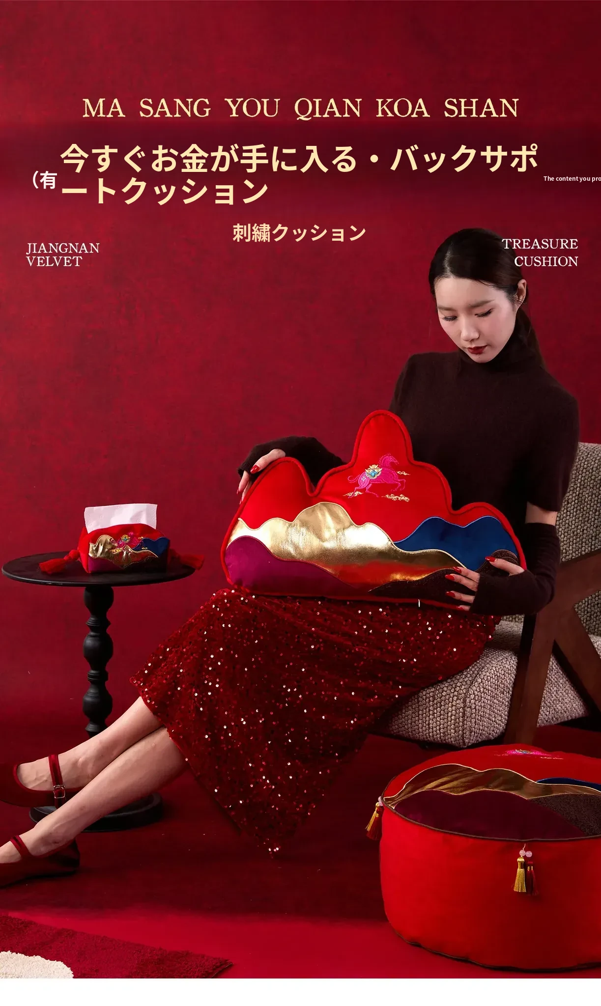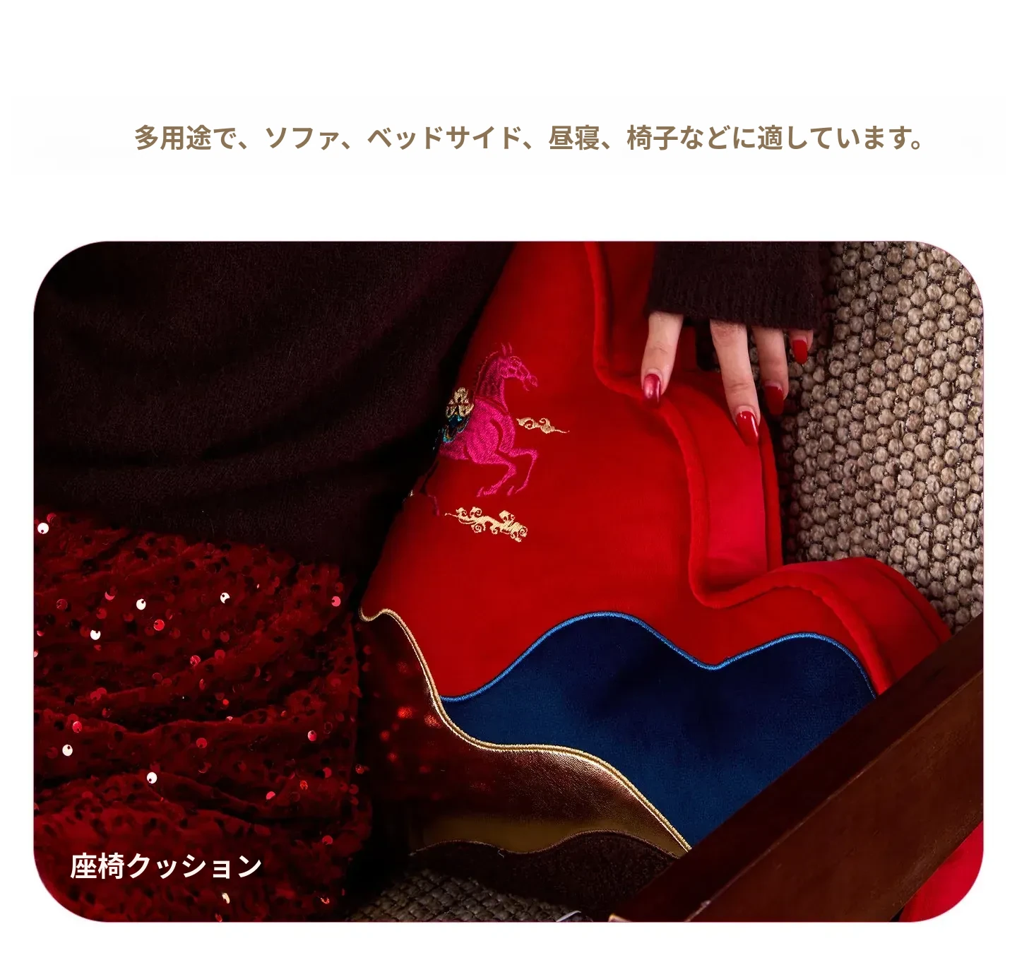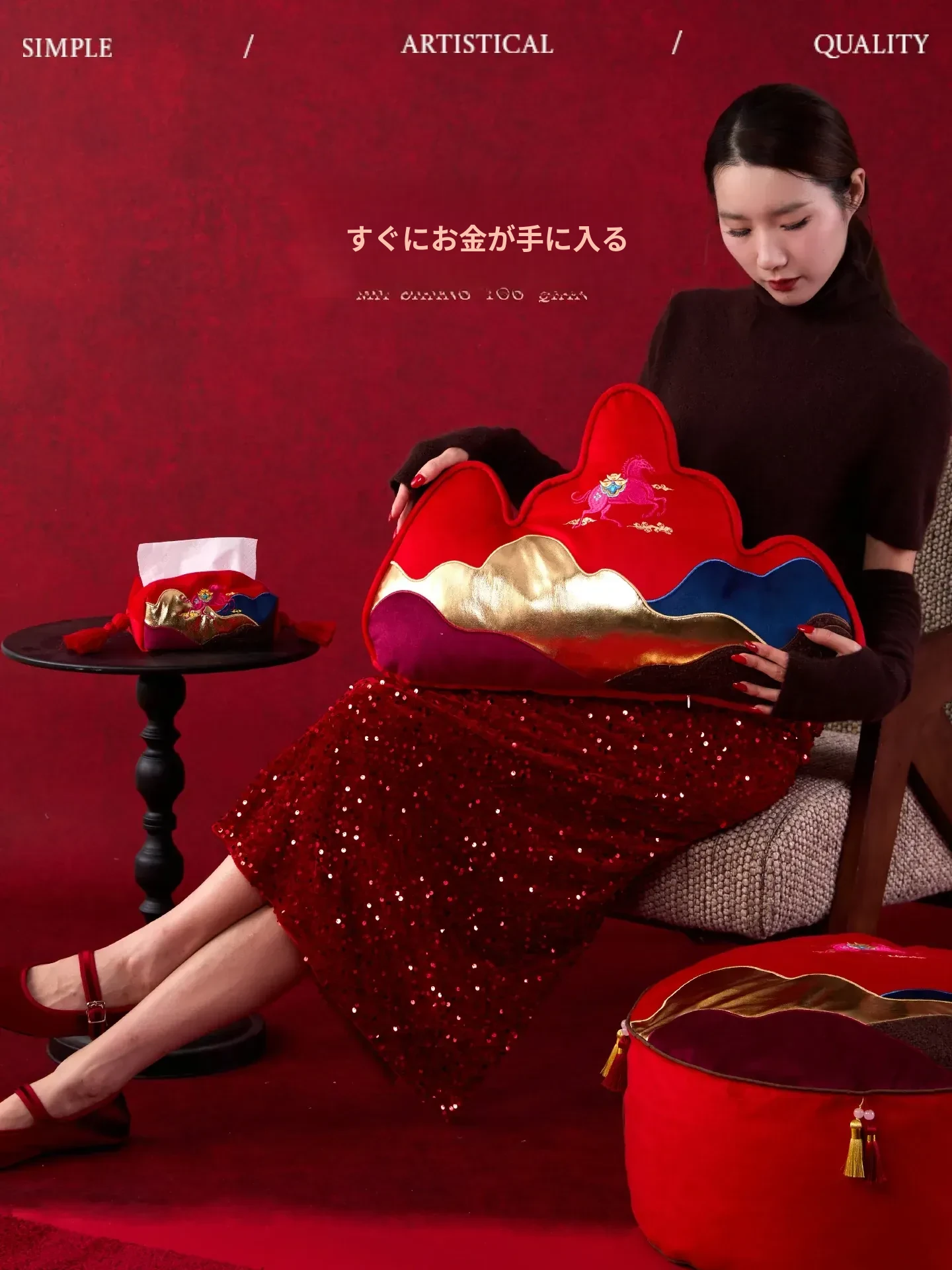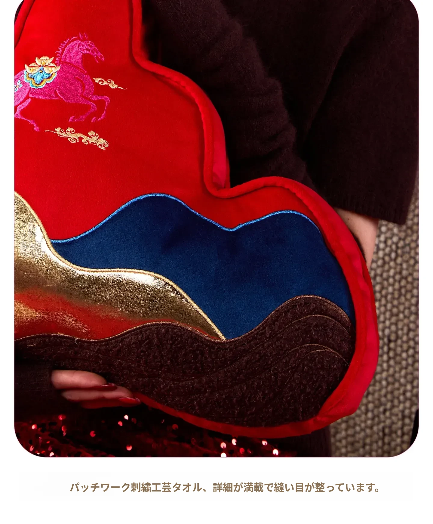 2026年の馬年にぴったり!新年を祝う華やかな赤い刺繍クッションカバー。新中式デザインのユニークな形状で、高級感溢れる腰枕。お部屋を彩り、心地よいひとときを提供します。