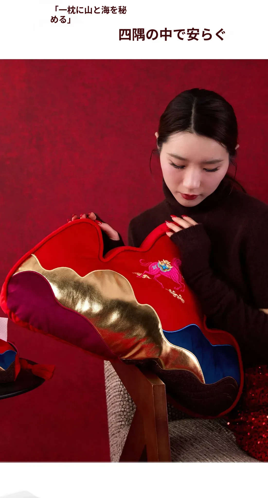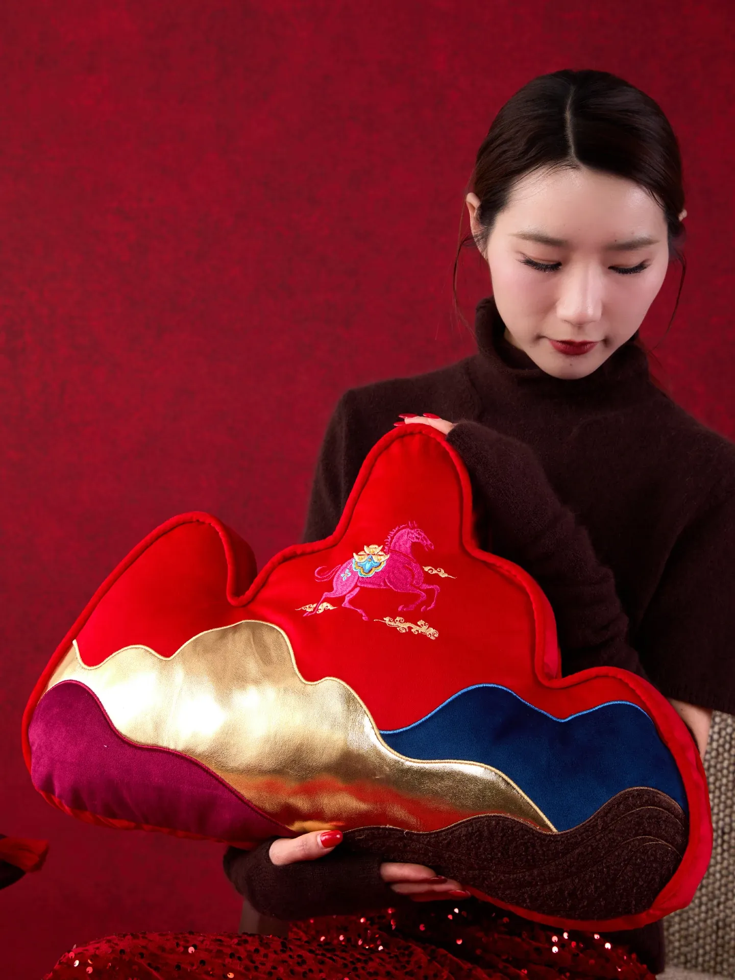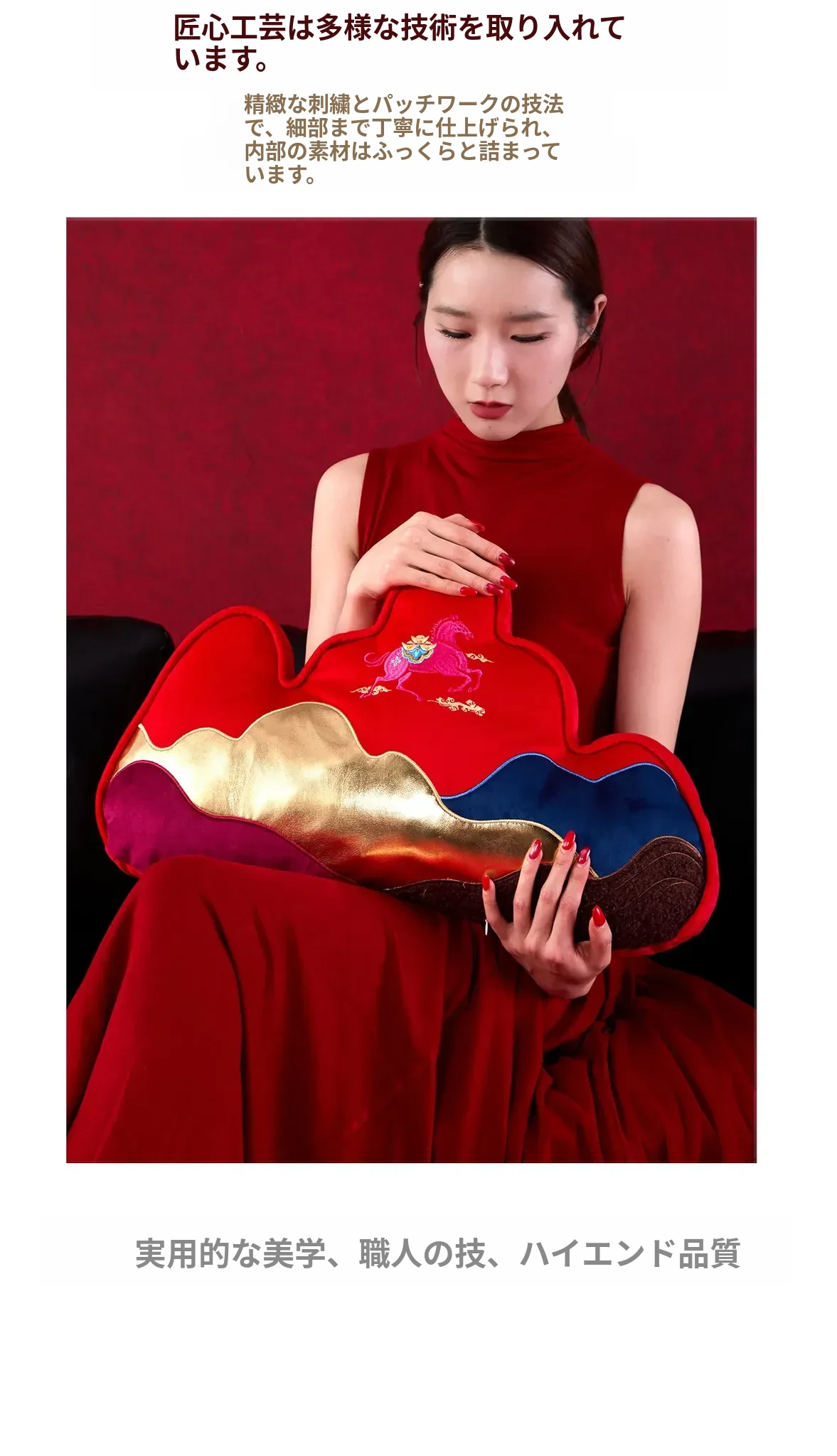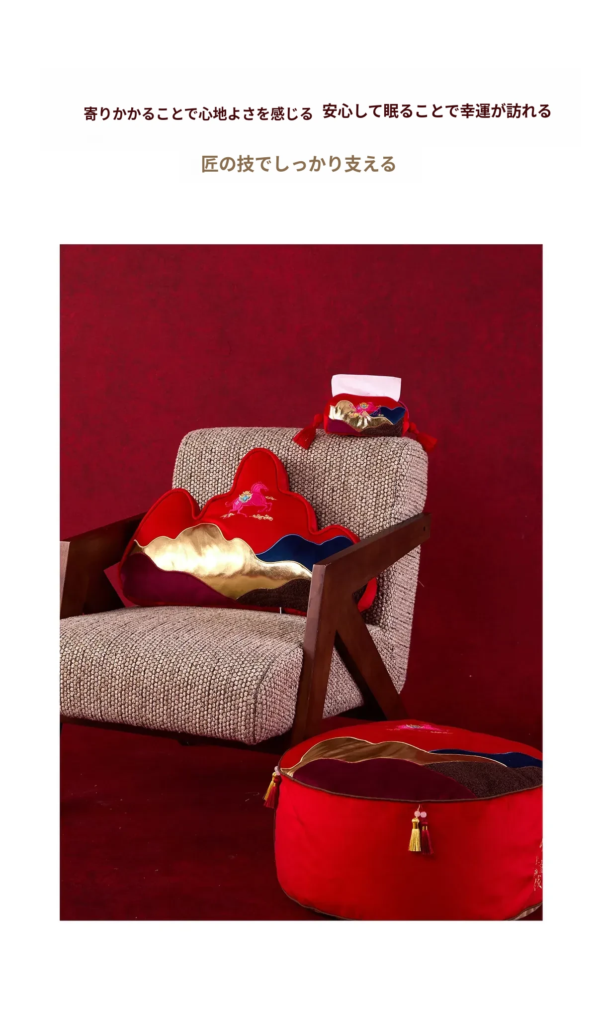 2026年の馬年にぴったり!新年を祝う華やかな赤い刺繍クッションカバー。新中式デザインのユニークな形状で、高級感溢れる腰枕。お部屋を彩り、心地よいひとときを提供します。