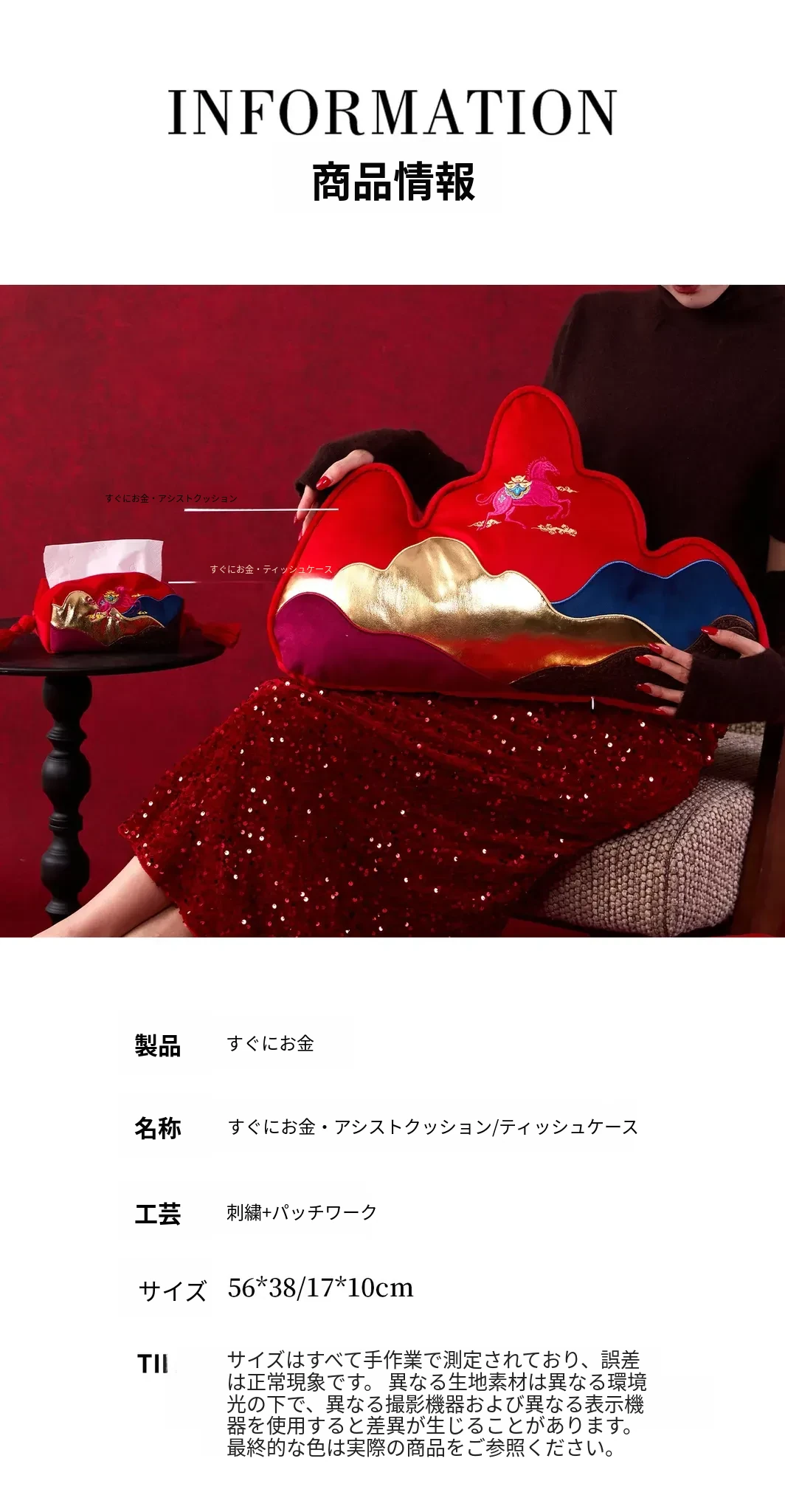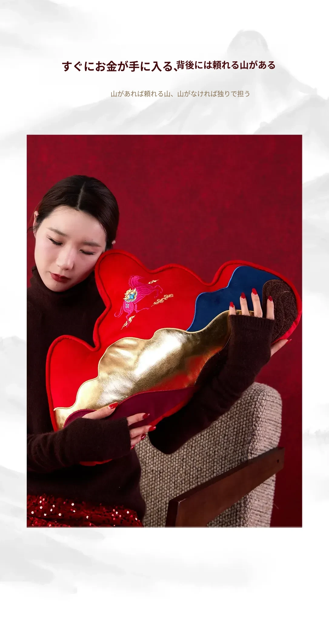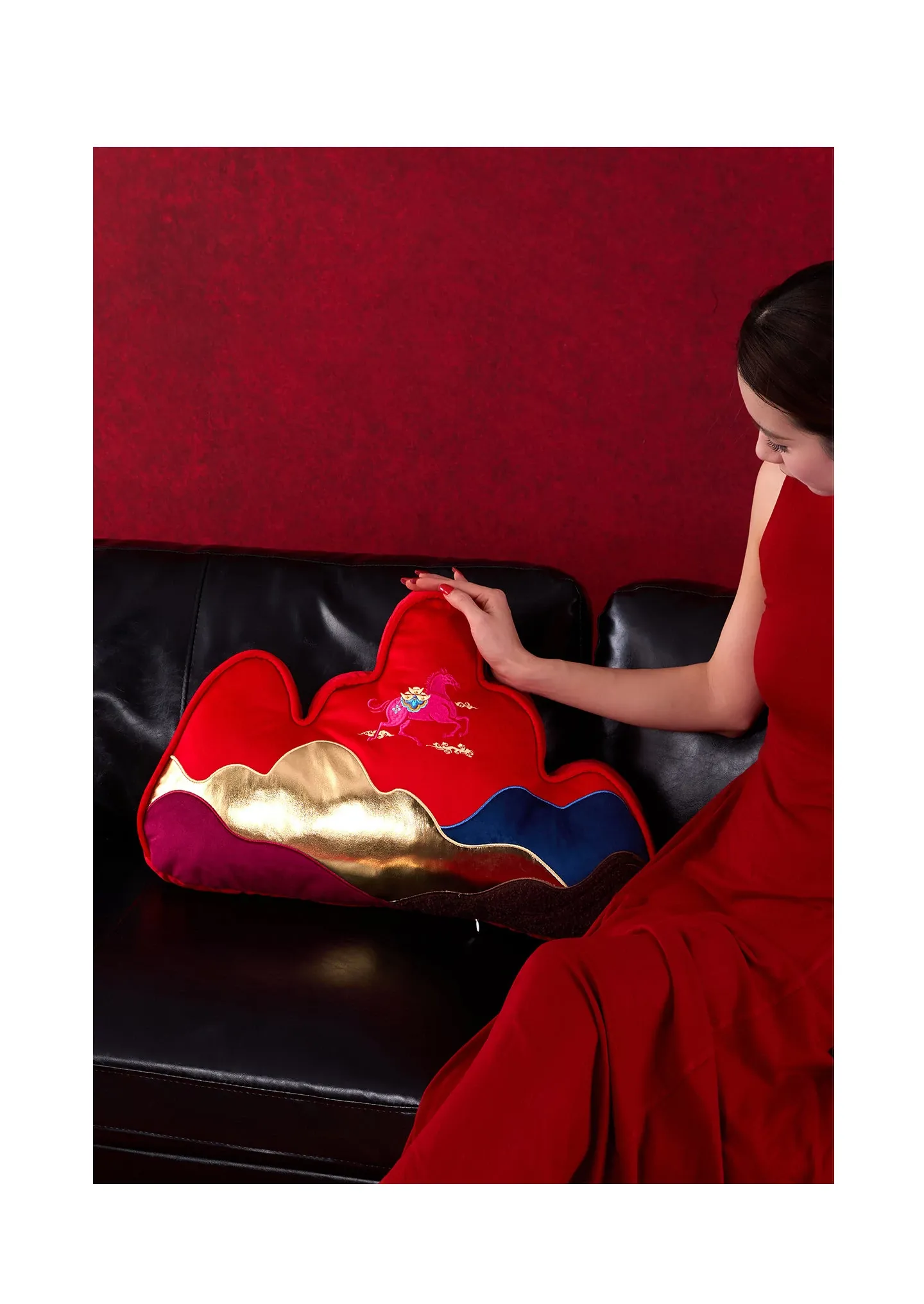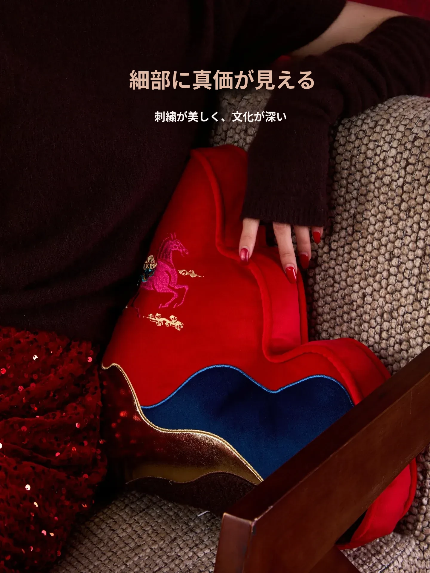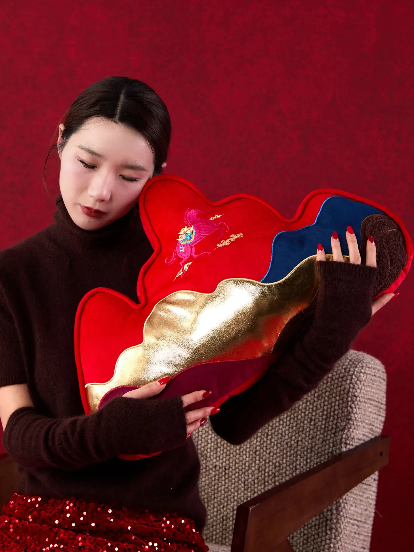 2026年の馬年にぴったり!新年を祝う華やかな赤い刺繍クッションカバー。新中式デザインのユニークな形状で、高級感溢れる腰枕。お部屋を彩り、心地よいひとときを提供します。