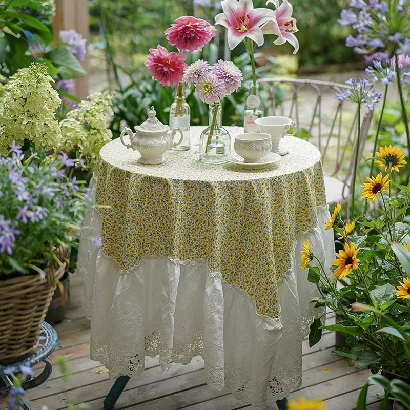 アメリカンカントリー風アウトドアバルコニー小丸テーブル用高級感あふれるテーブルクロス - リビングのコーヒーテーブルや庭のダイニングテーブルにぴったり!おしゃれで快適な空間を演出します。