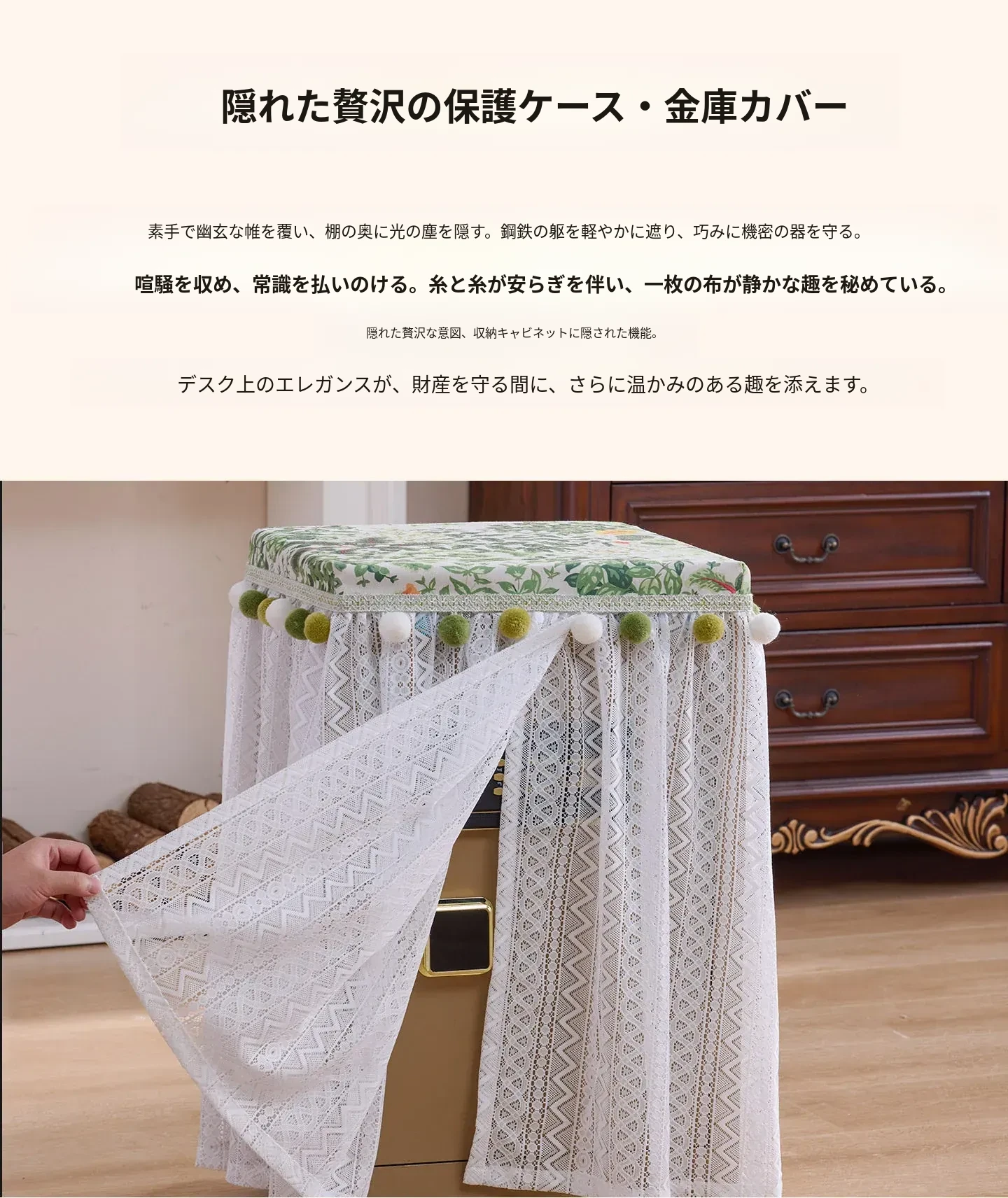 高級感あふれる家用保険箱カバー - 埃を防ぎ、スタイリッシュに保護!収納棚や書棚、スピーカーにも最適な防塵布。あなたの大切なアイテムを優雅に守ります。