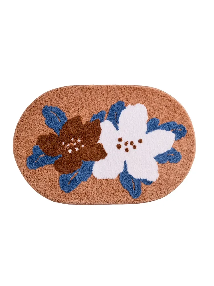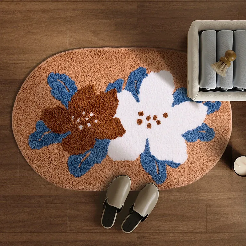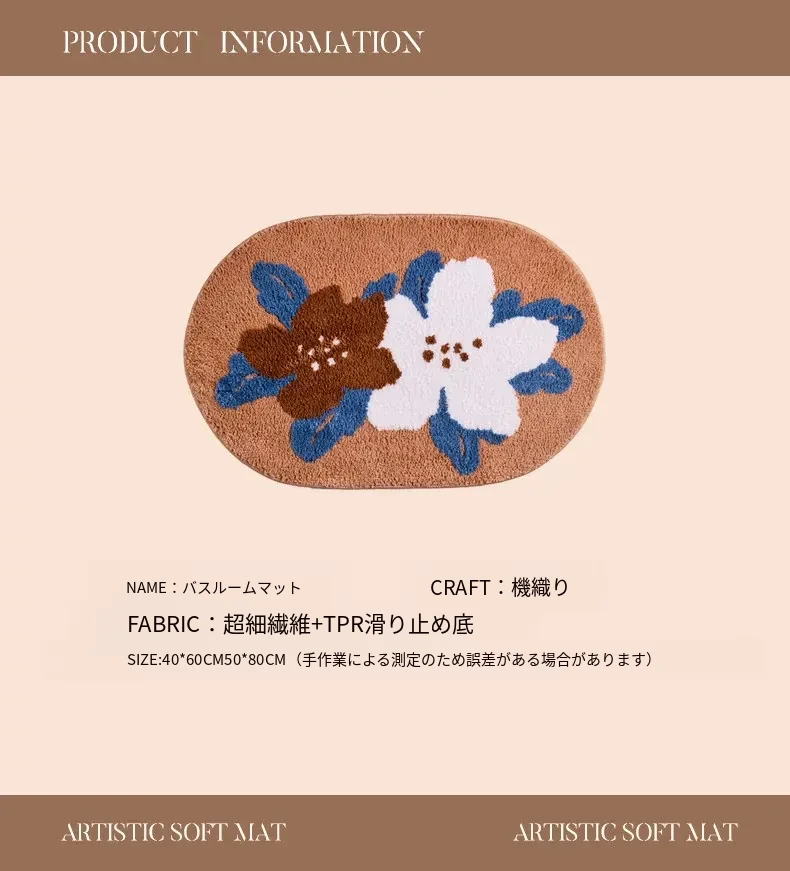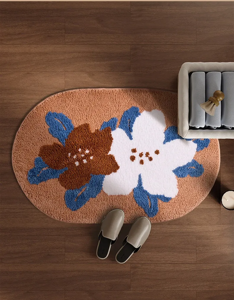 柔らかな光の花柄 - シングルニードル洗面所マット