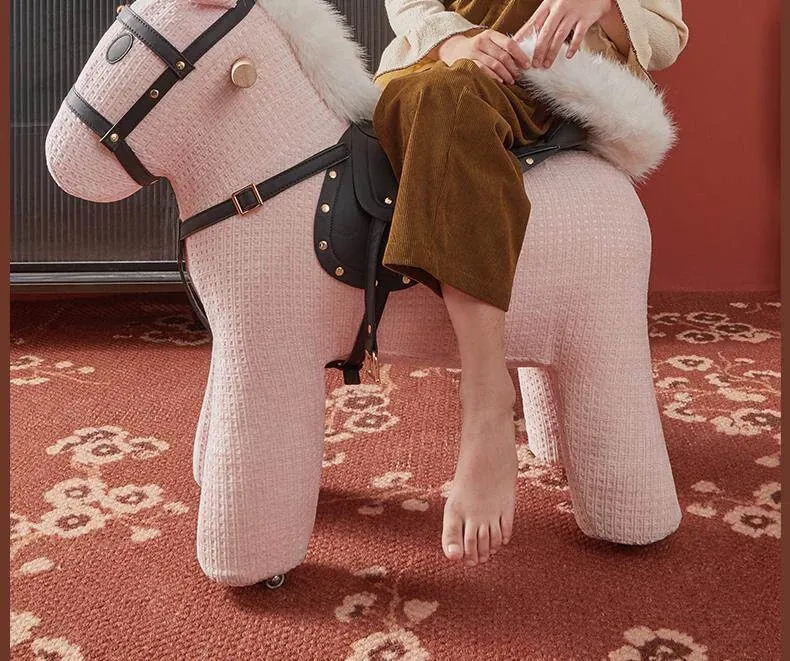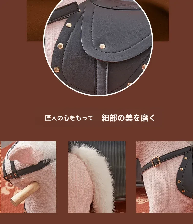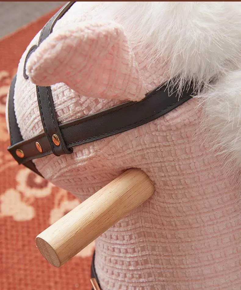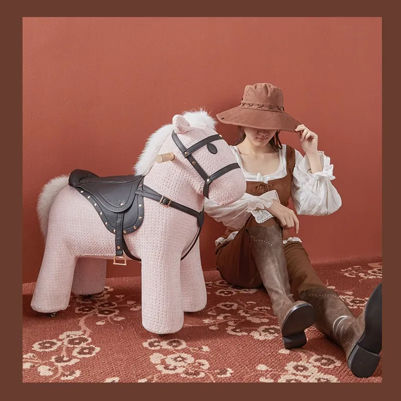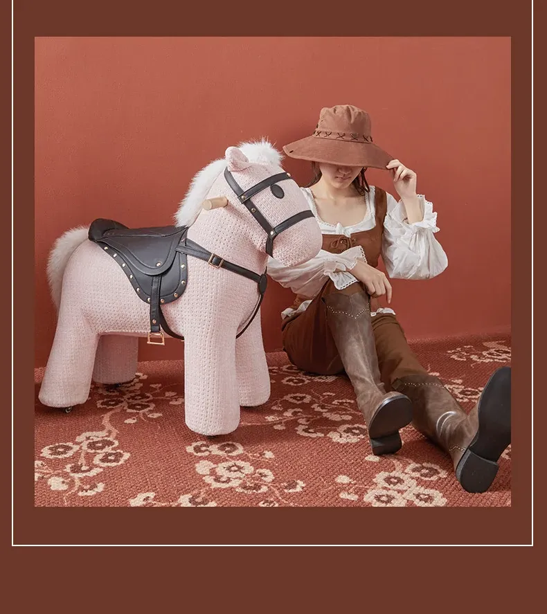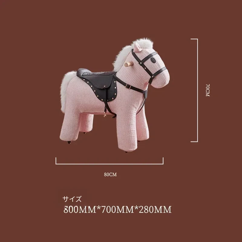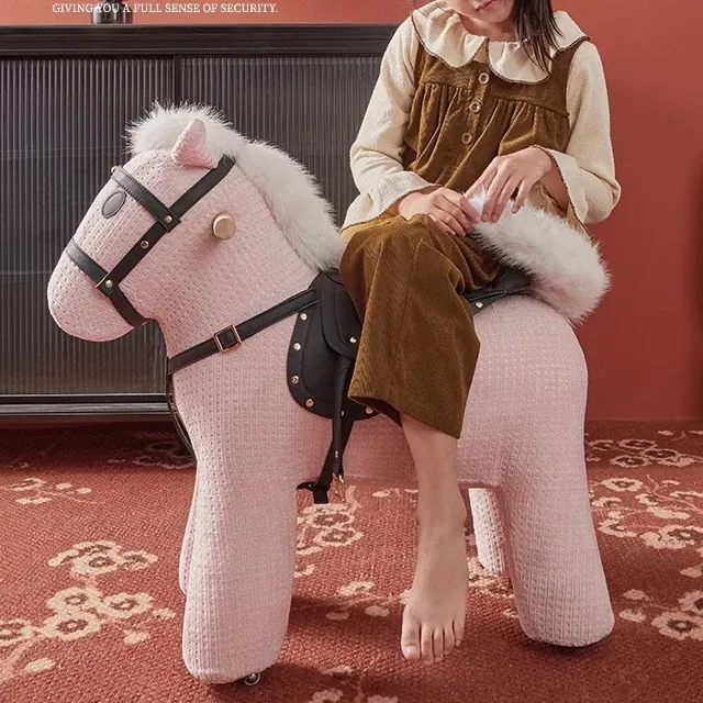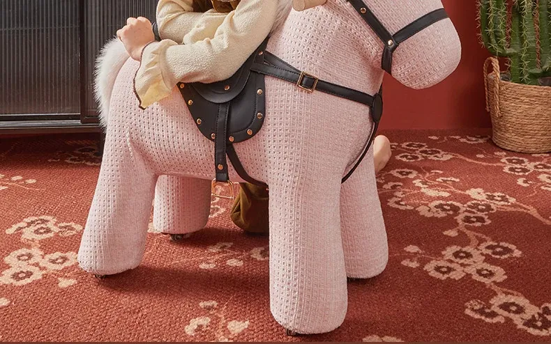 乗れるカートゥーンポニー椅子、ホイール付きのウール製ロッキングホース!インスタ映えする創造的な子供向けおもちゃ、滑りやすい動物座席で楽しく遊ぼう!