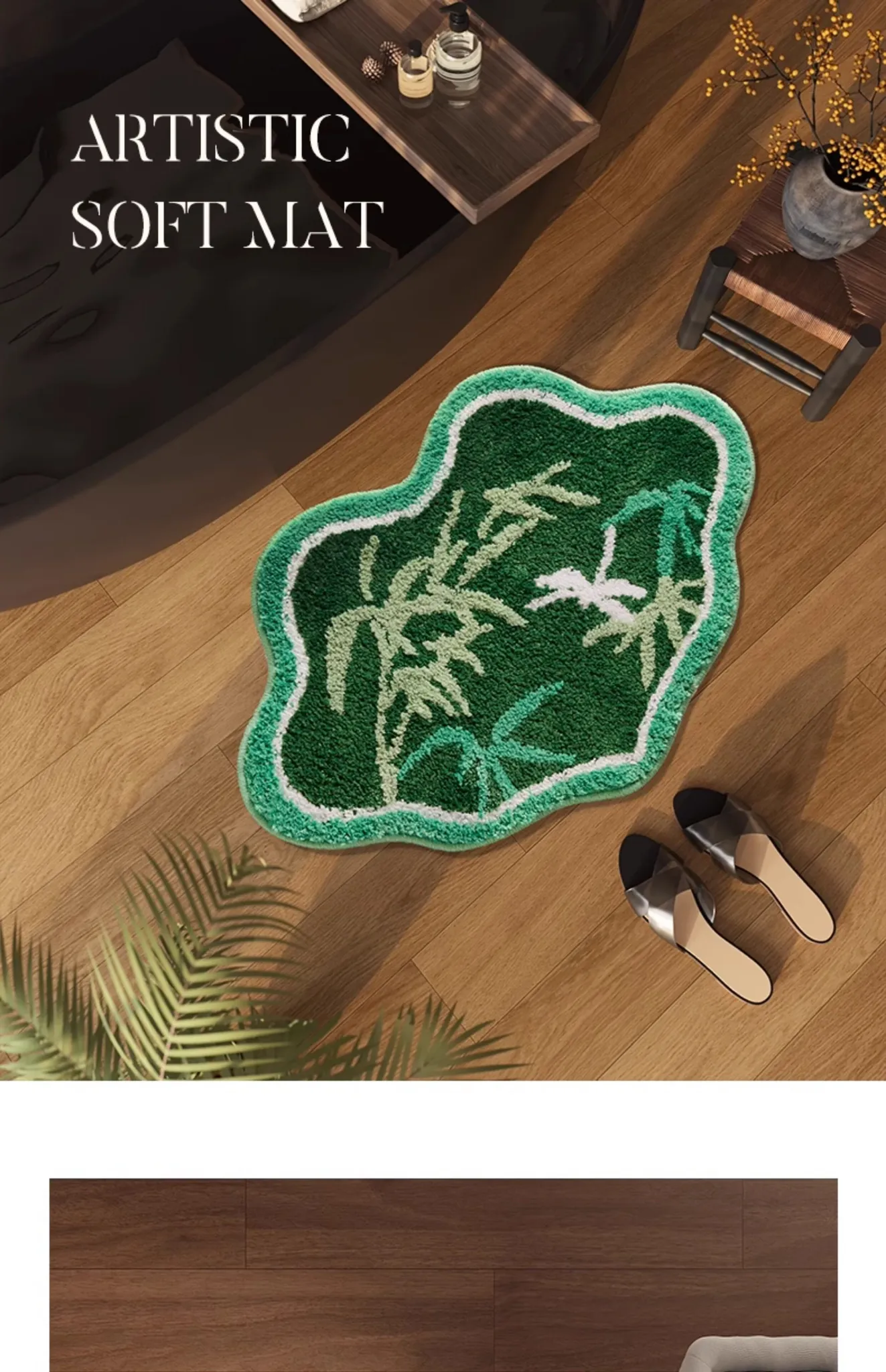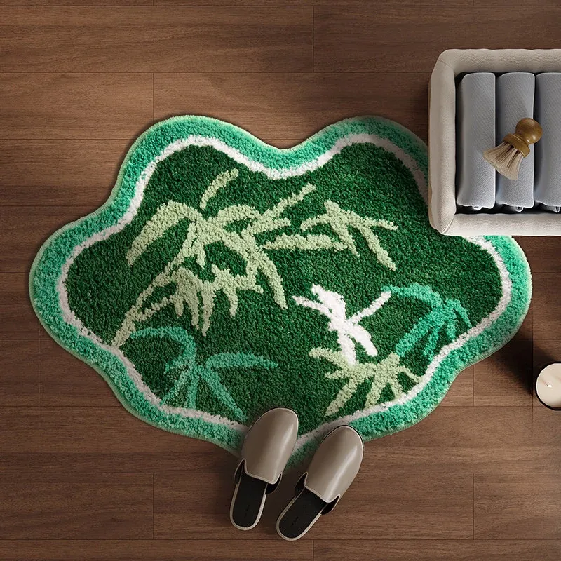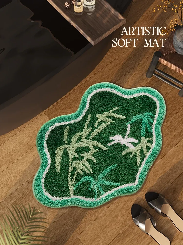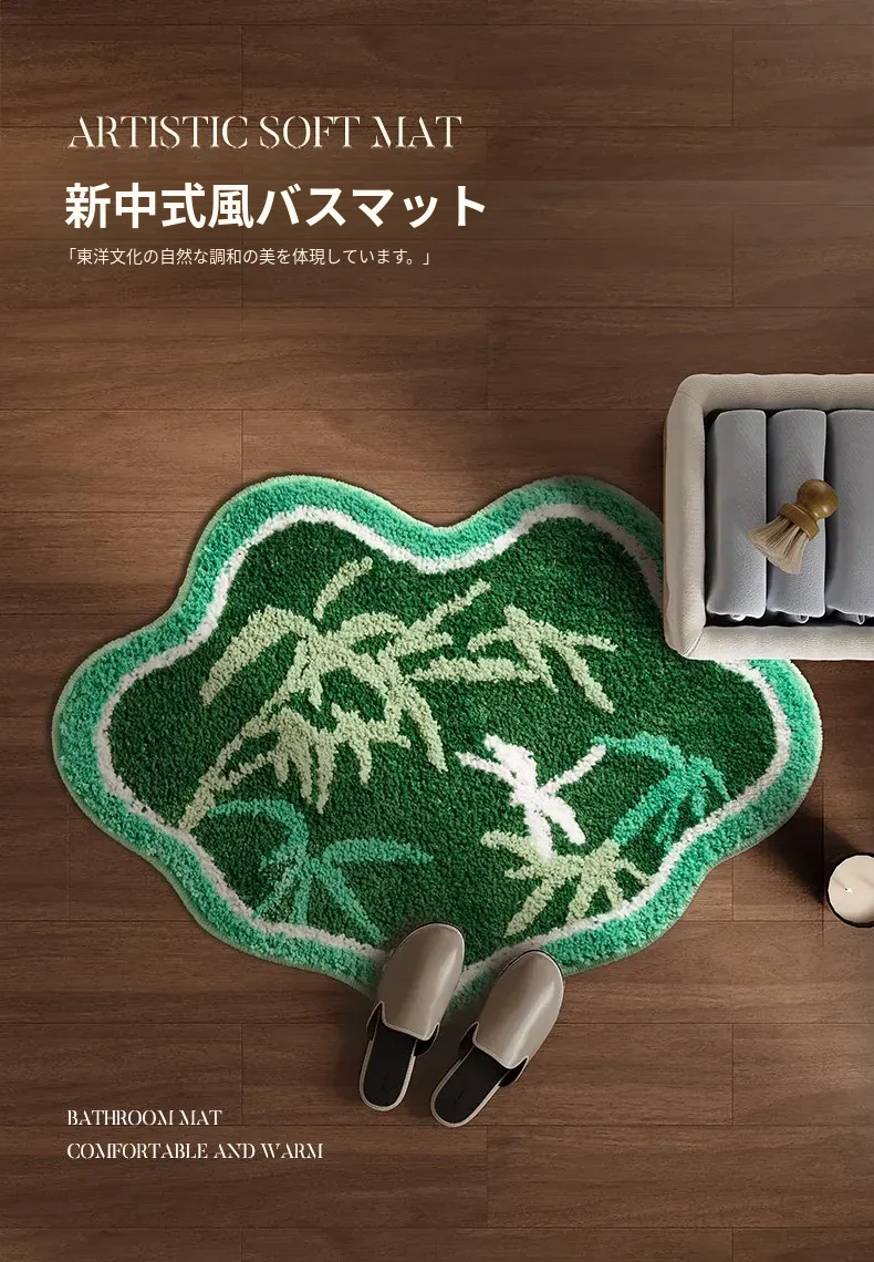ユニークな形状のバスルーム用吸水マット - 滑り止め機能付き!厚手で安心のトイレ・洗面所用フロアマット。足元をしっかりサポートし、快適なバスタイムを提供します。おしゃれで実用的なデザインで、あなたのバスルームを彩ります!