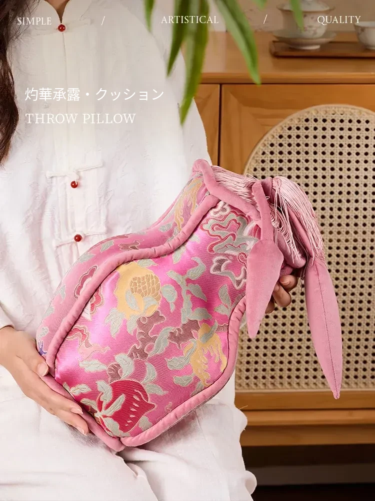 新中式デザインのアート花瓶型クッション、創造的な刺繍でソファを華やかに演出!2026年新作、上質感あふれるライトラグジュアリーなインテリアアイテム。