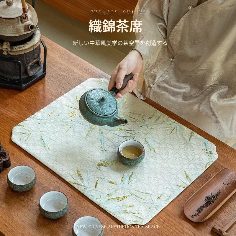 新中式織り込み茶席の禅の雰囲気を持つ防水茶卓マット、軽やかで高級感溢れる国風デザインのテーブルランナー。おしゃれで実用的な茶の時間を演出します!