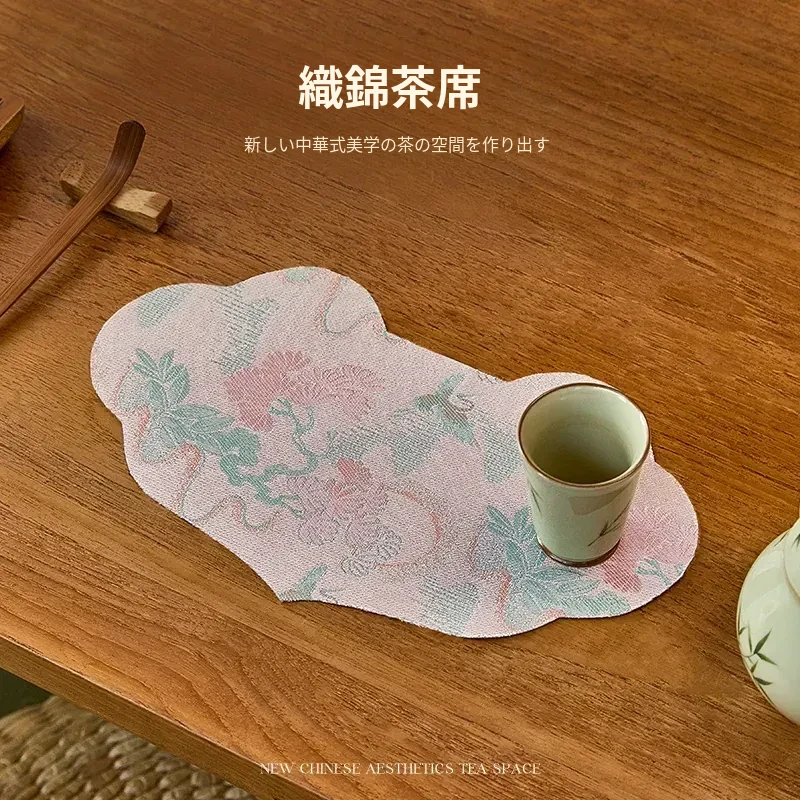 新中式禅スタイルの防水ティーセッティングマット - コンパクトサイズのピンク色、茶道にぴったりなティーカップマット!あなたの茶席を一層美しく演出します。