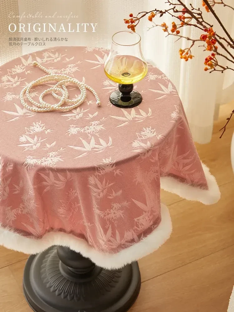 新中式雰囲気のあるフレンチピンクのテーブルクロス - 高級感あふれるプリンセススタイルの茶卓布で、あなたの空間を優雅に演出!