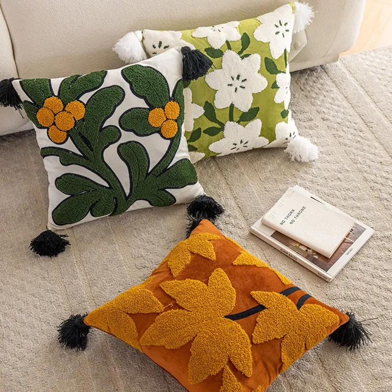 アメリカンスタイルのラグジュアリー感漂うリビングソファ用クッションカバー、フレンチカントリー風デザイン、45x45cmサイズ、洗濯可能でお手入れ簡単!お部屋の雰囲気を一層引き立てる上質なアイテムです。