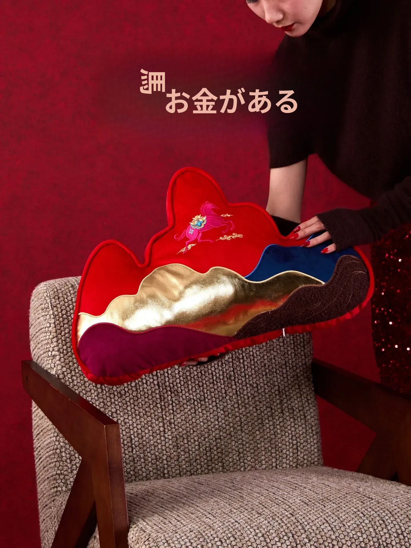 2026年の馬年にぴったり!新年を祝う華やかな赤い刺繍クッションカバー。新中式デザインのユニークな形状で、高級感溢れる腰枕。お部屋を彩り、心地よいひとときを提供します。