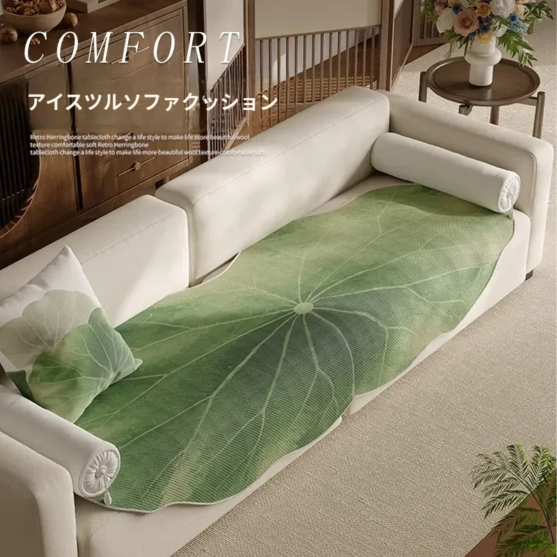 中式スタイルの蓮の葉デザイン、涼感を感じるアイスシルクソファクッション!夏にぴったりの滑り止め付き、軽やかで高級感溢れる異形デザインのアイスリードマット。快適さとスタイルを両立させた一品です!