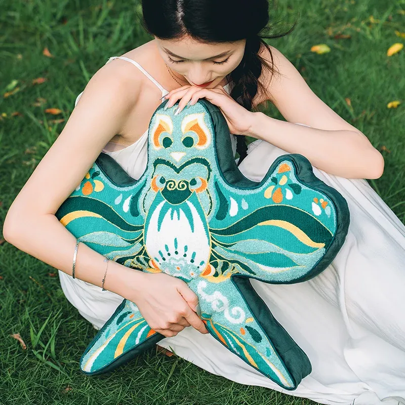 新中式デザインの紙凧クッション - 刺繍入りソファ用抱き枕、中国風のクリエイティブな腰枕、個性的な背もたれクッションでお部屋を華やかに演出!