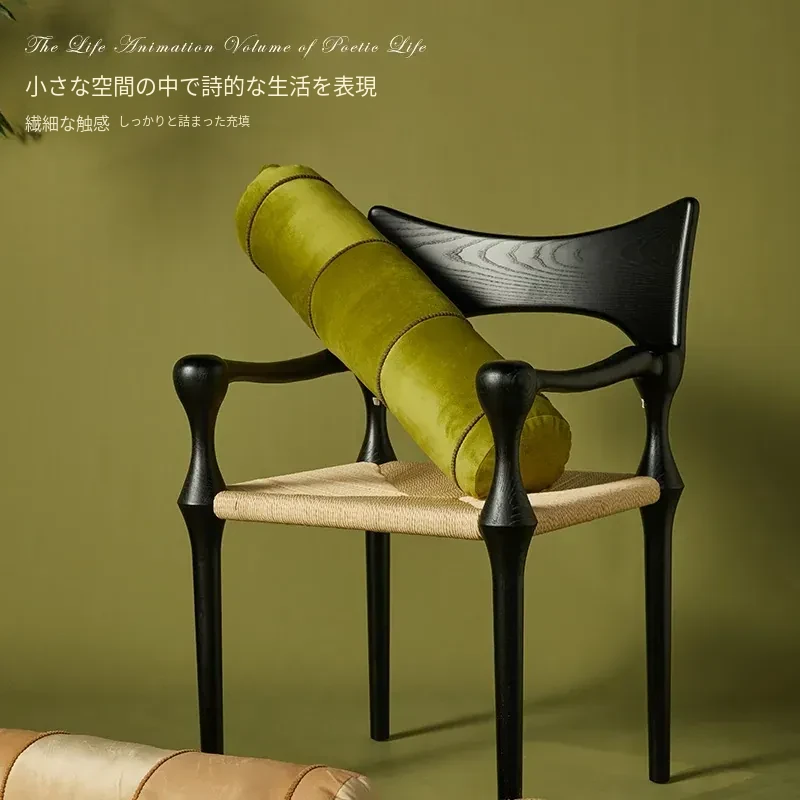 新中式デザインの円形ロングクッション - 家庭用グリーンカラー、中国風ベッドサイドバックサポート、リビングルームのソファ用クッション、アームレスト用枕で快適さとスタイルを両立!