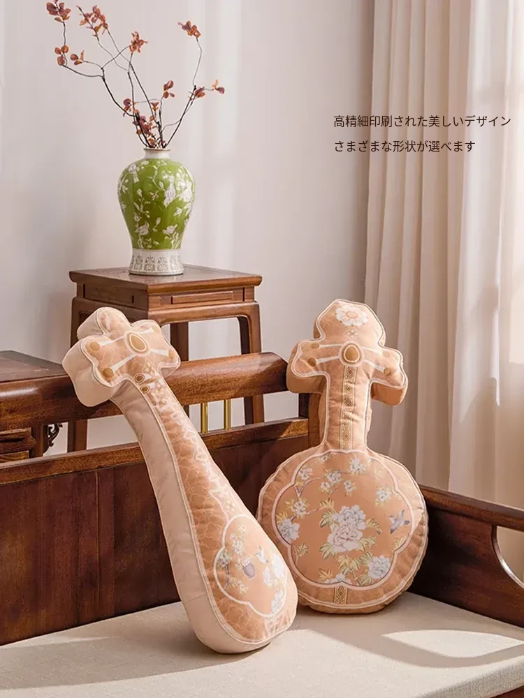 新中式デザインのユニークなリビングソファクッション!国風レトロな琵琶モチーフ、創造的なギフトに最適。寝室やベッド上の背もたれとしてもお使いいただけます。快適さとスタイルを兼ね備えたアイテムです!