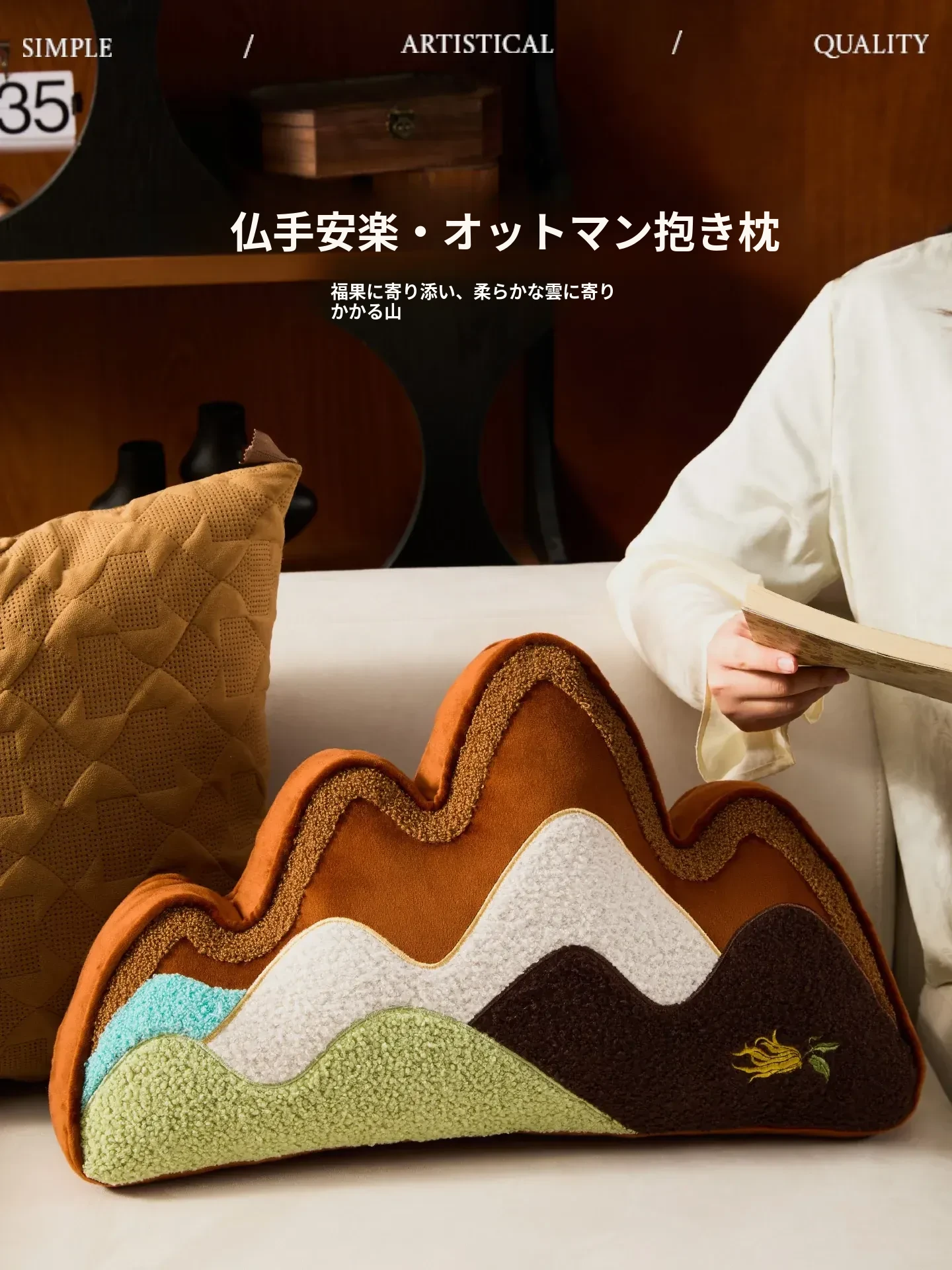 新中式デザインのリビングソファ用背当てクッション|オフィスや車内にも最適!山形刺繍が施された抱き枕で、快適なサポートを提供します。スタイリッシュで実用的なアイテムをお見逃しなく!