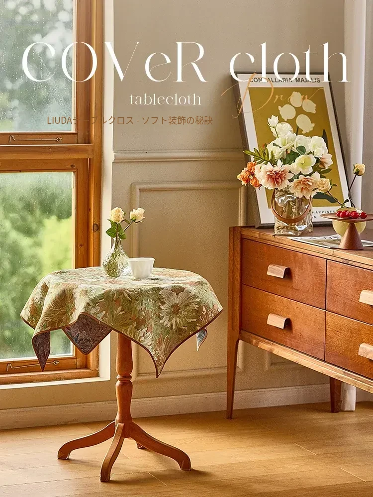 アメリカンレトロスタイルのティーテーブル&ダイニングテーブルカバー - おしゃれな小さなラウンドテーブル用、2026年新作!リビングにぴったりな高級感あふれるテーブルマットで、インテリアを引き立てます。