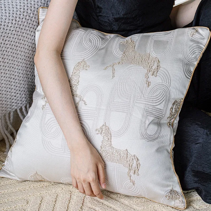 中式刺繍クッションカバー|フランス風の軽やかな高級感|洗えるデザイン|おしゃれなリビングソファにぴったりな華やかさを演出!