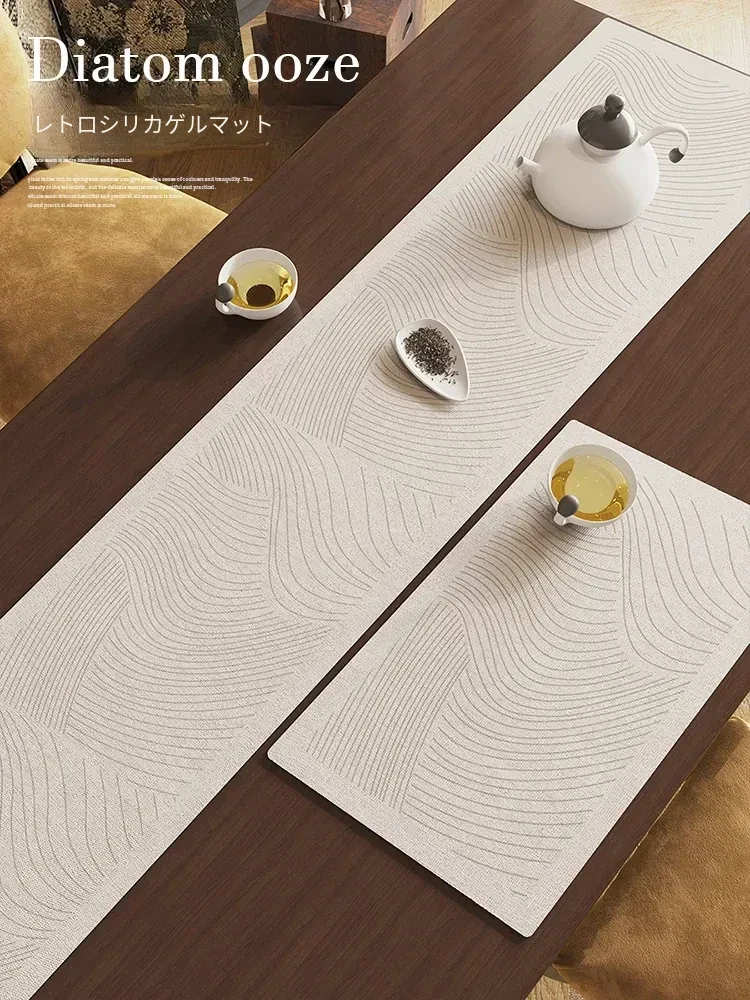 侘寂スタイルのテーブルランナー - 吸水・防油機能付き!高級感あふれる防水仕様の茶卓マットで、あなたのティータイムを一層特別に。洗練されたデザインで、どんなインテリアにもマッチします!