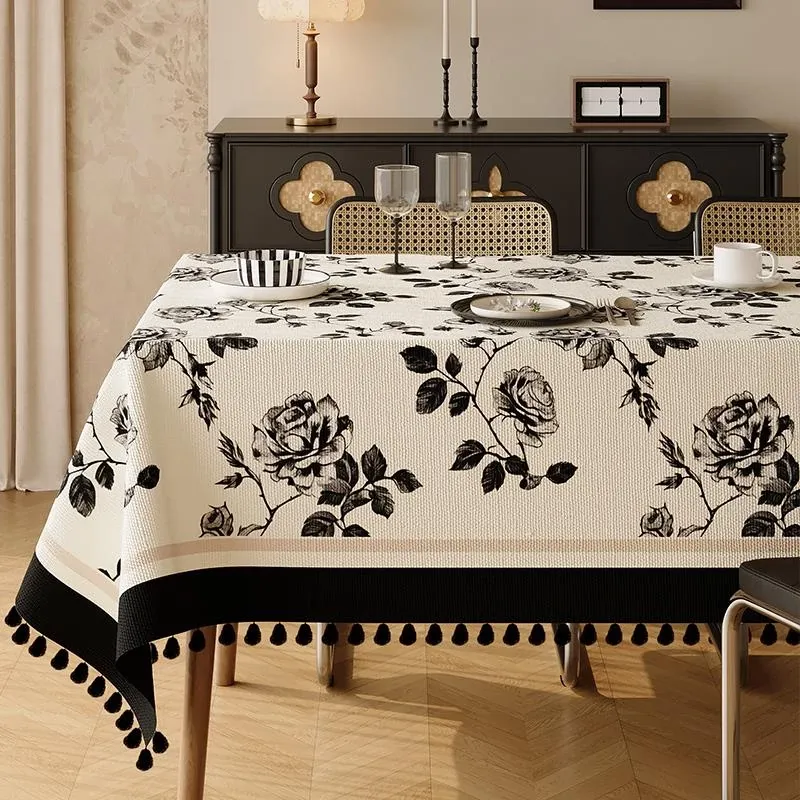 フランス風テーブルクロス|アメリカンラグジュアリーの高級感|長方形・フリンジ付き|ダスト防止・美しさを隠す|雰囲気を演出するカフェテーブル布